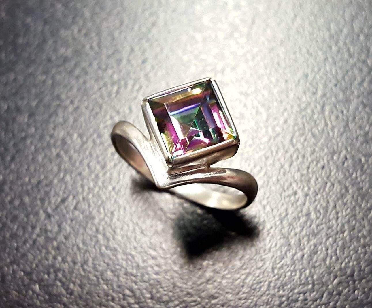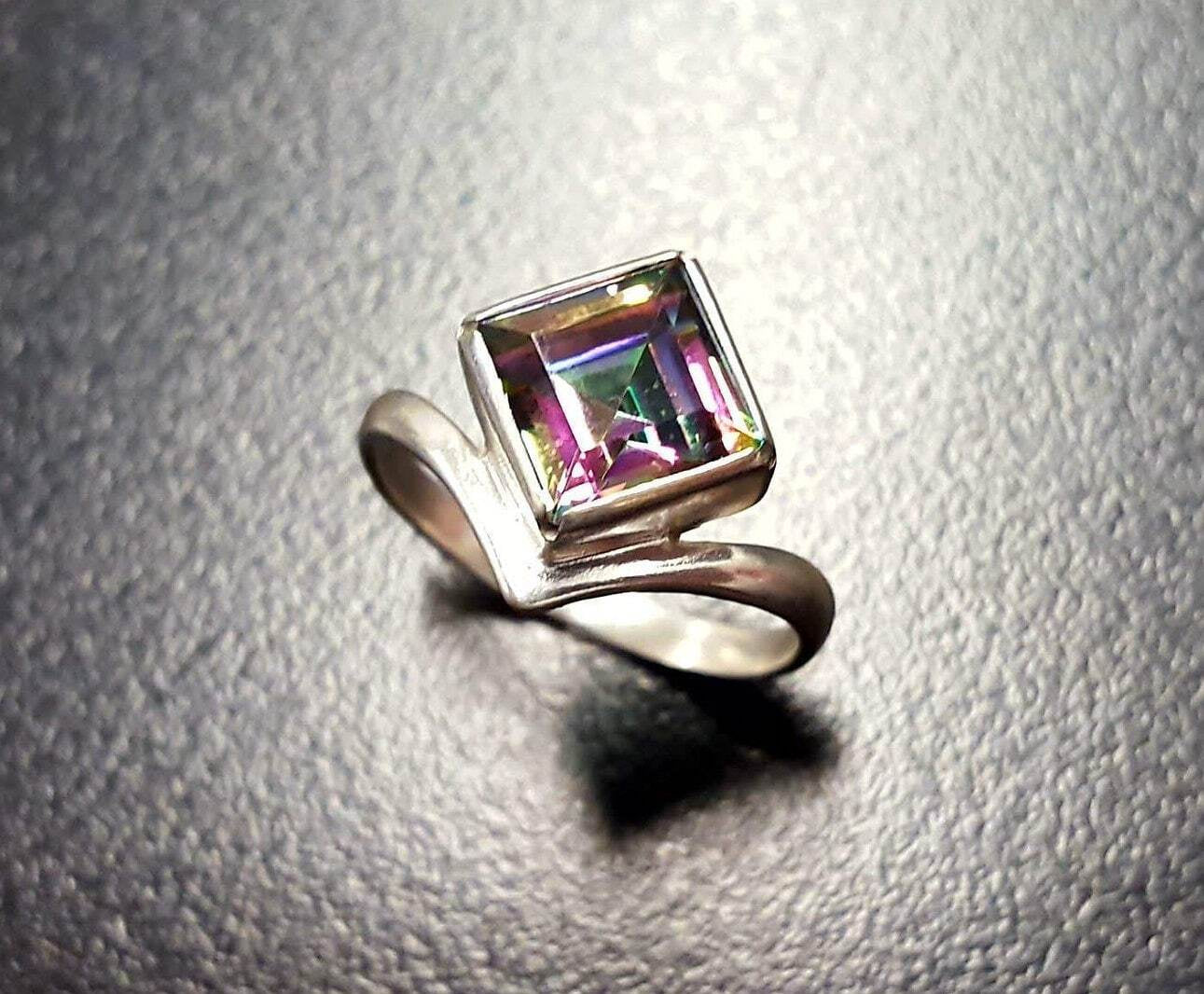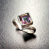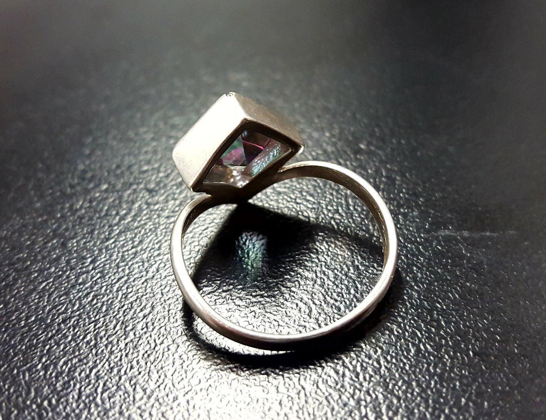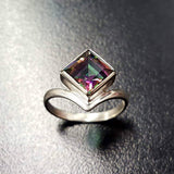Mystic Topaz Ring, Natural Mystic Topaz, December Ring, Silver Square Ring, Topaz Ring, Purple Diamond Ring, Vintage Ring, Solid Silver Ring(1)