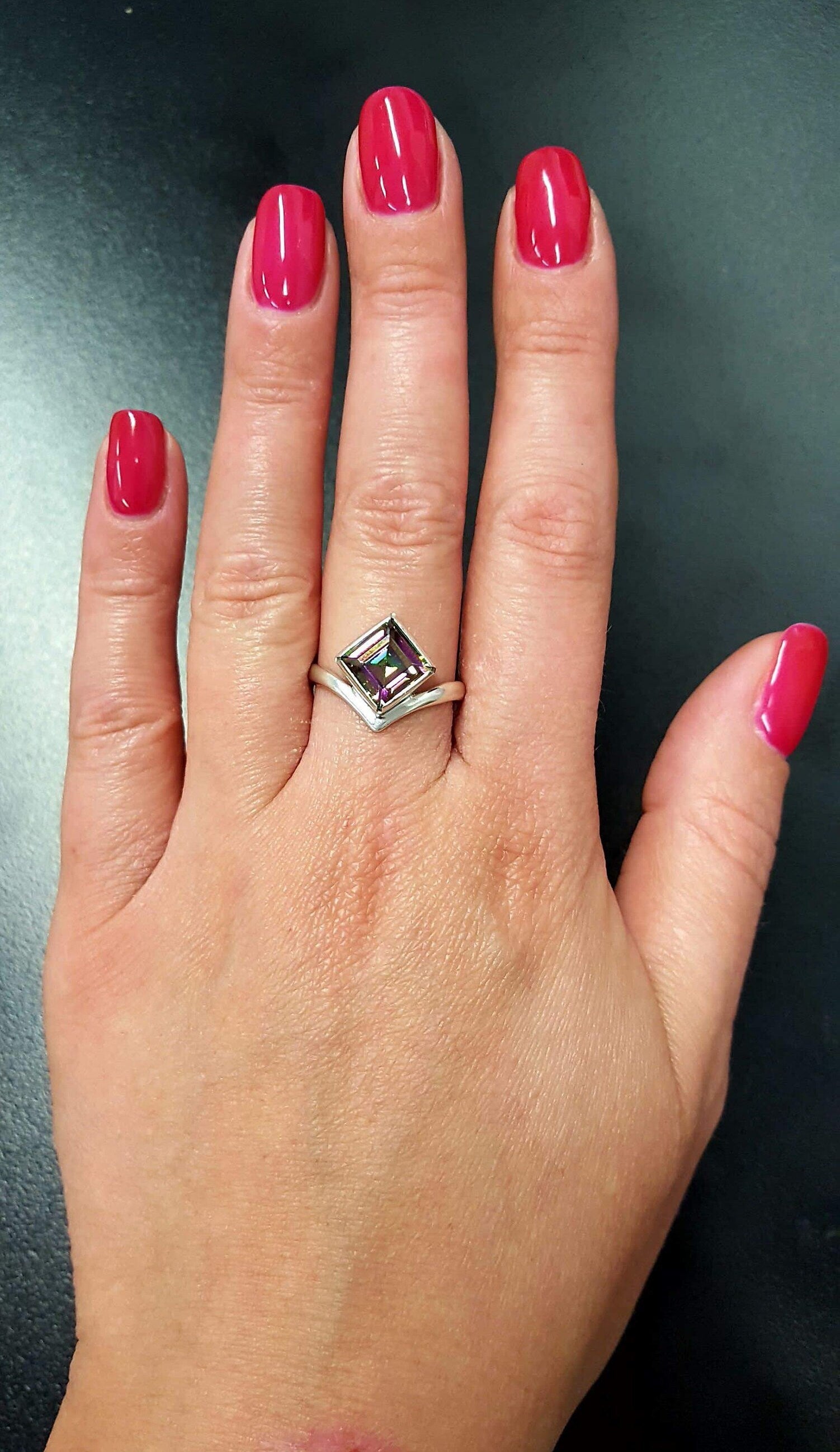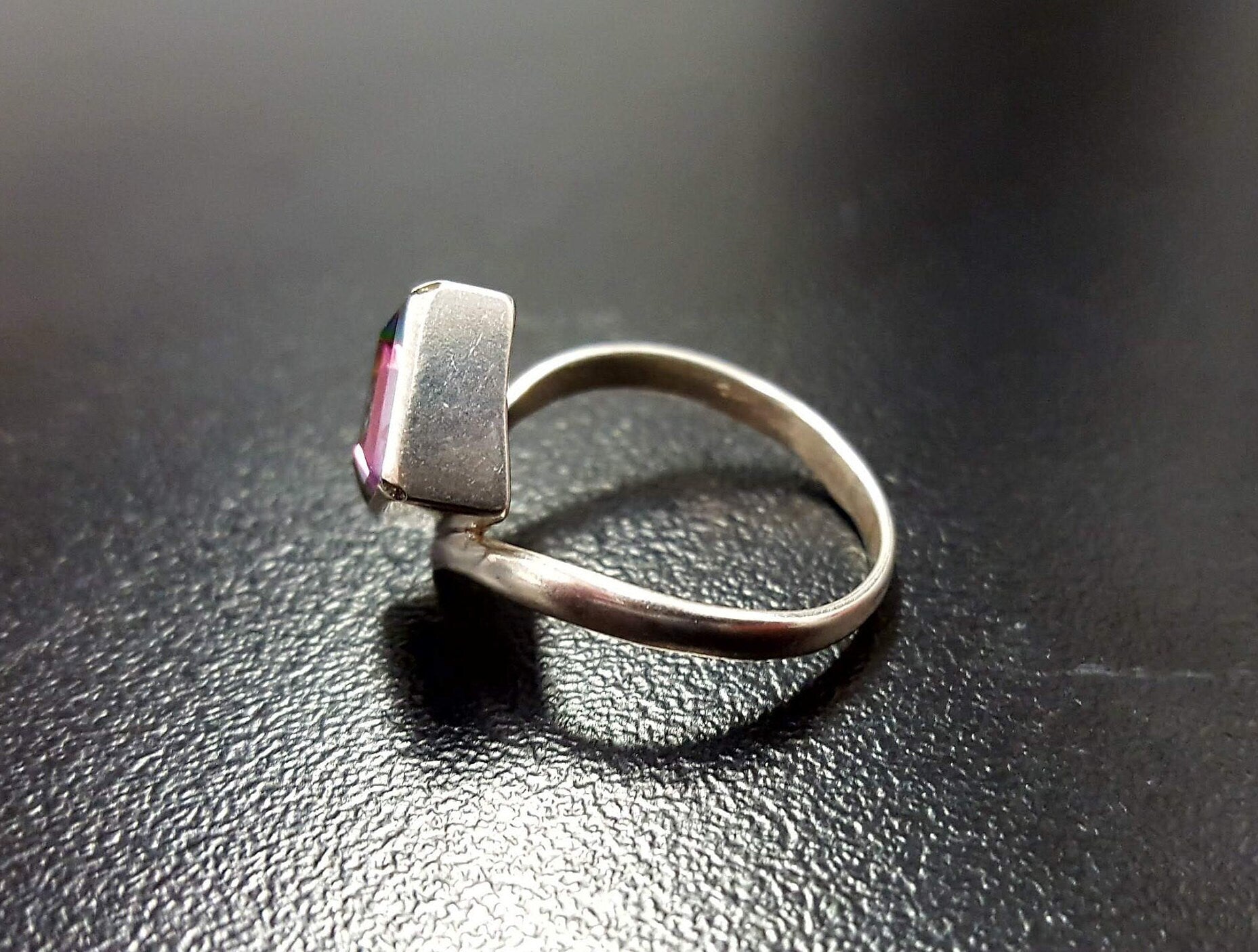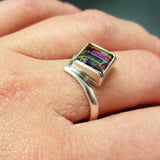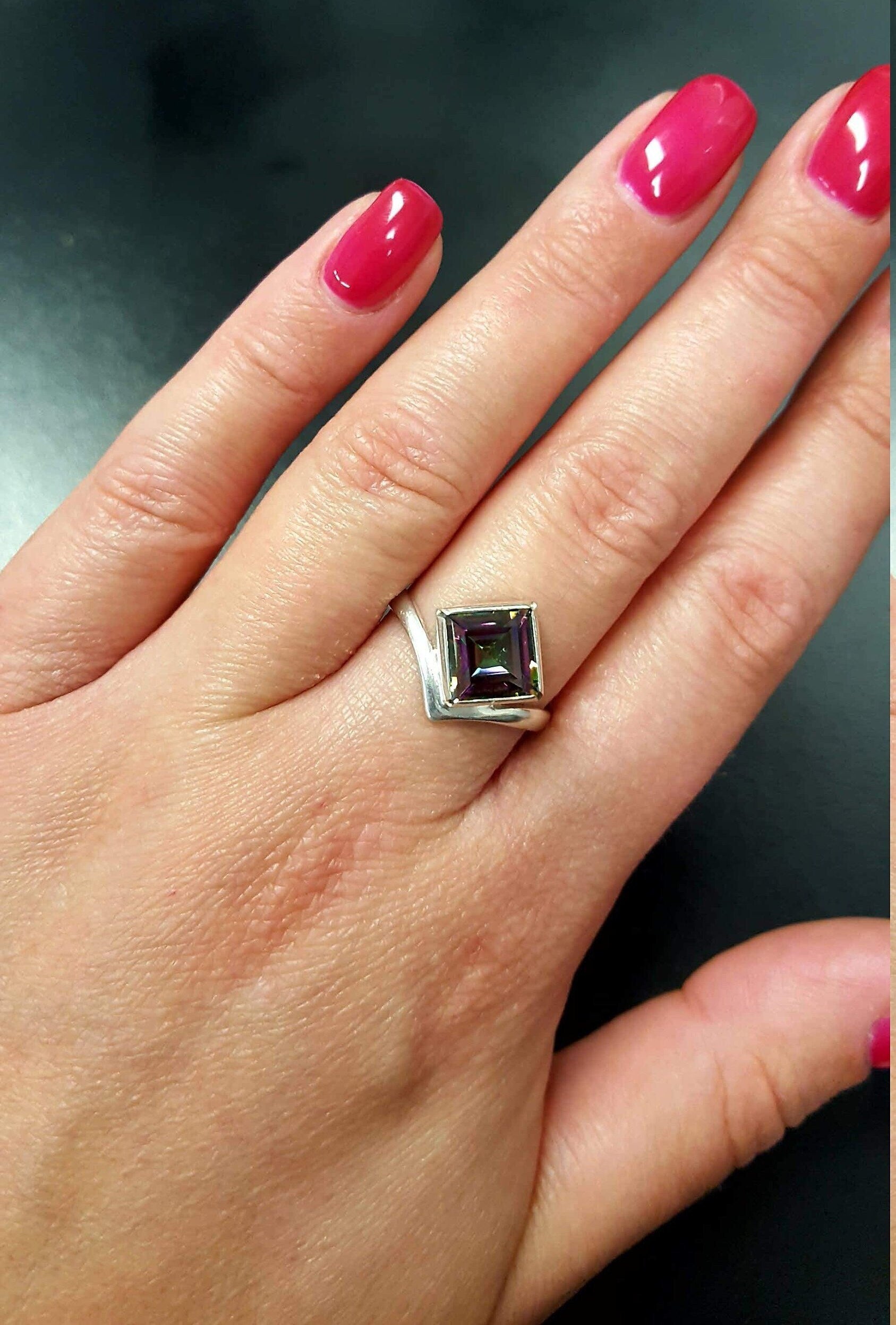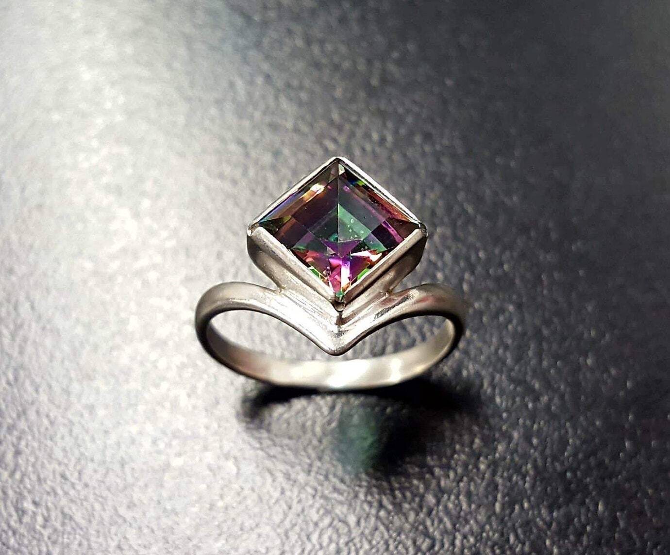 Mystic Topaz Ring, Natural Mystic Topaz, December Ring, Silver Square Ring, Topaz Ring, Purple Diamond Ring, Vintage Ring, Solid Silver Ring(1)