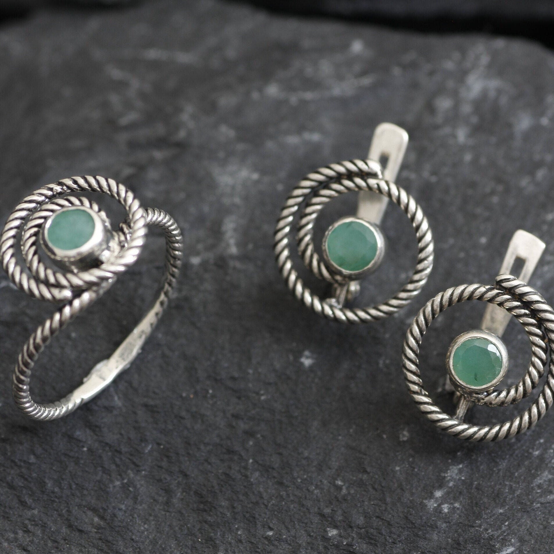 Swirl Emerald Ring - Natural Emerald Ring, Green Spiral Ring