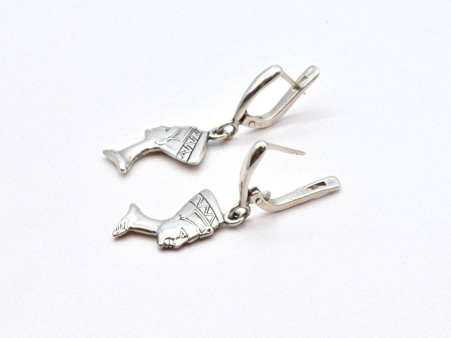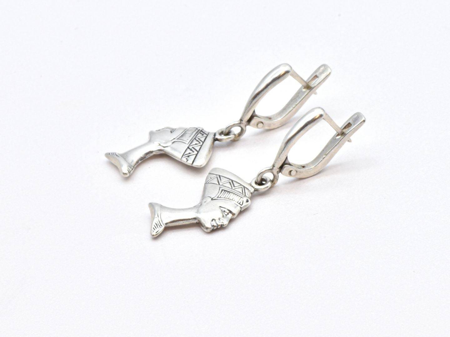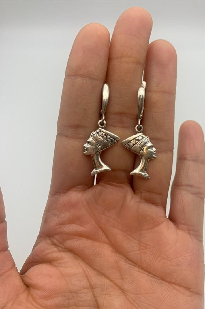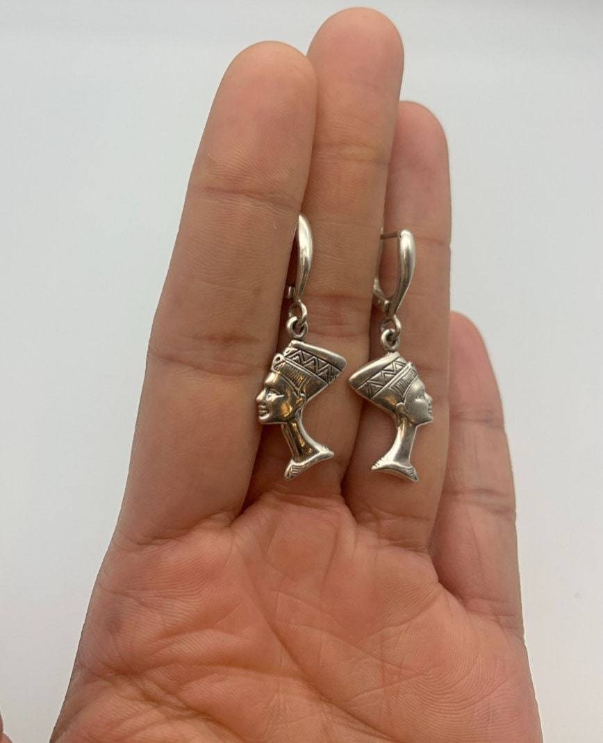 Nefertiti Earrings - Egyptian Silver Earrings - Vintage Egyptian Earrings