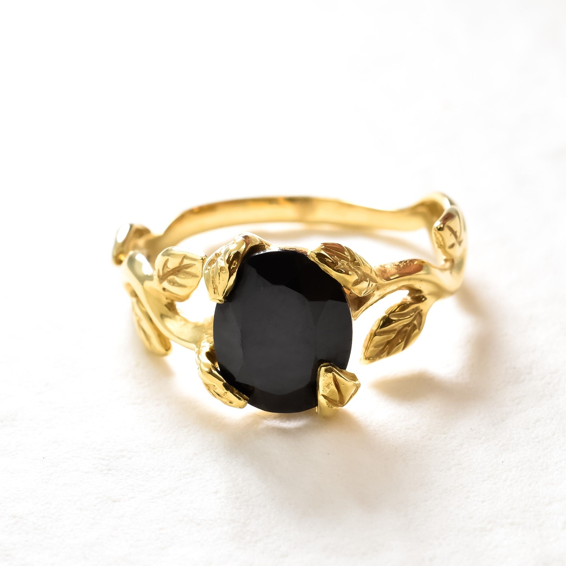 Black Onyx Ring - Silver Leaves Ring - Vintage Branch Ring