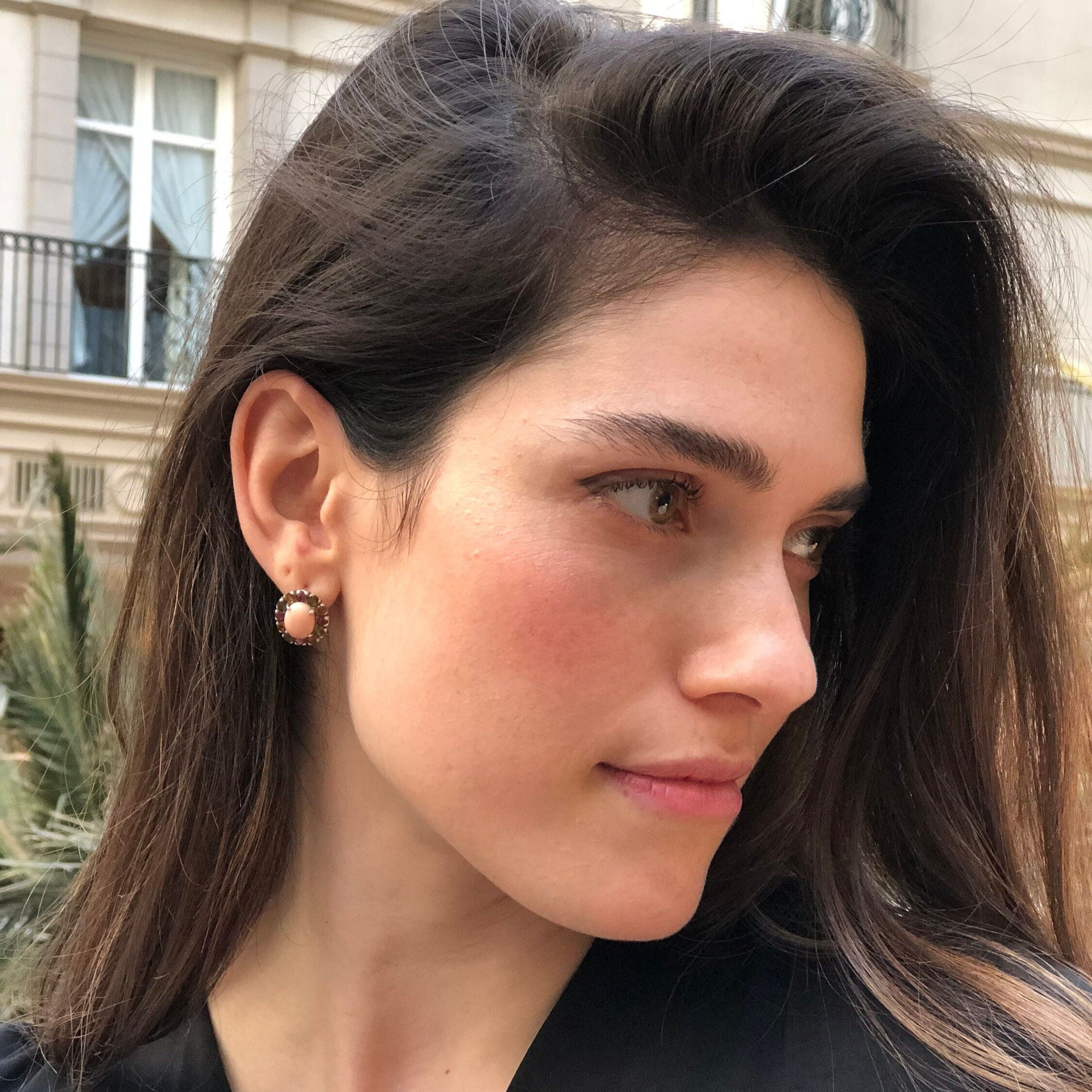 Flower Opal Earrings - Real Opal Victorian Earrings - Vintage Studs