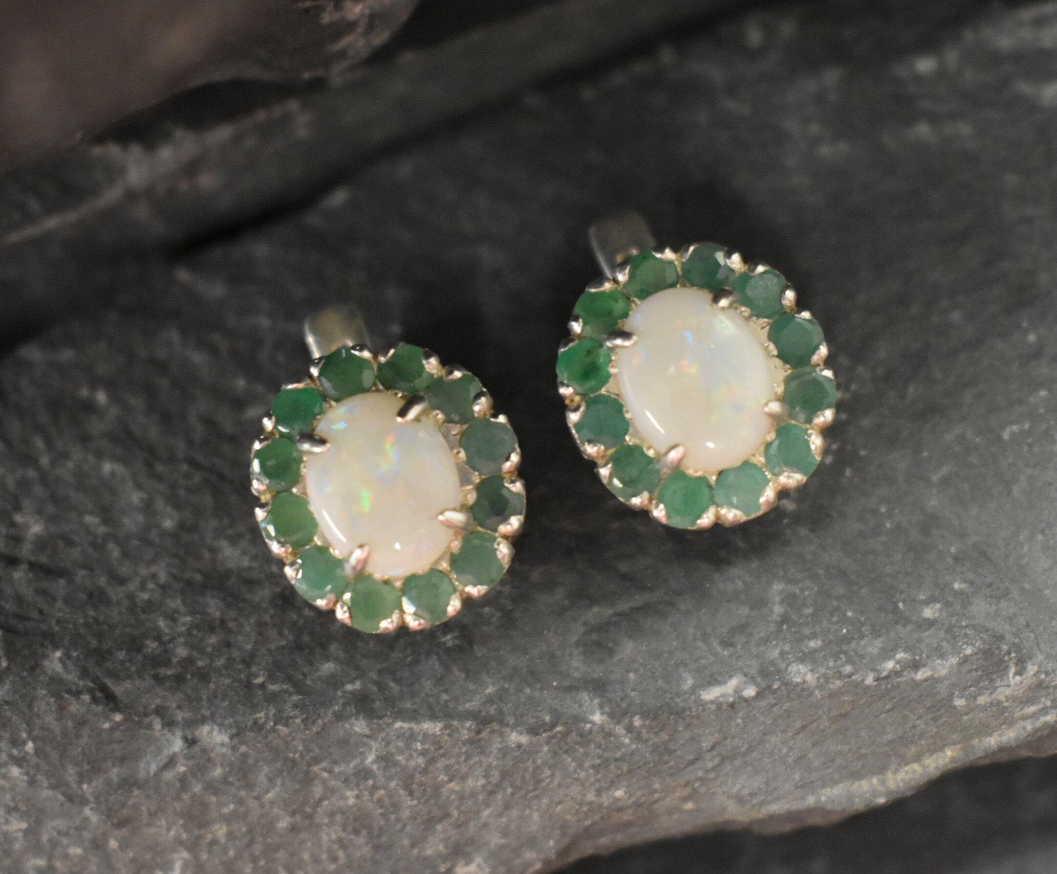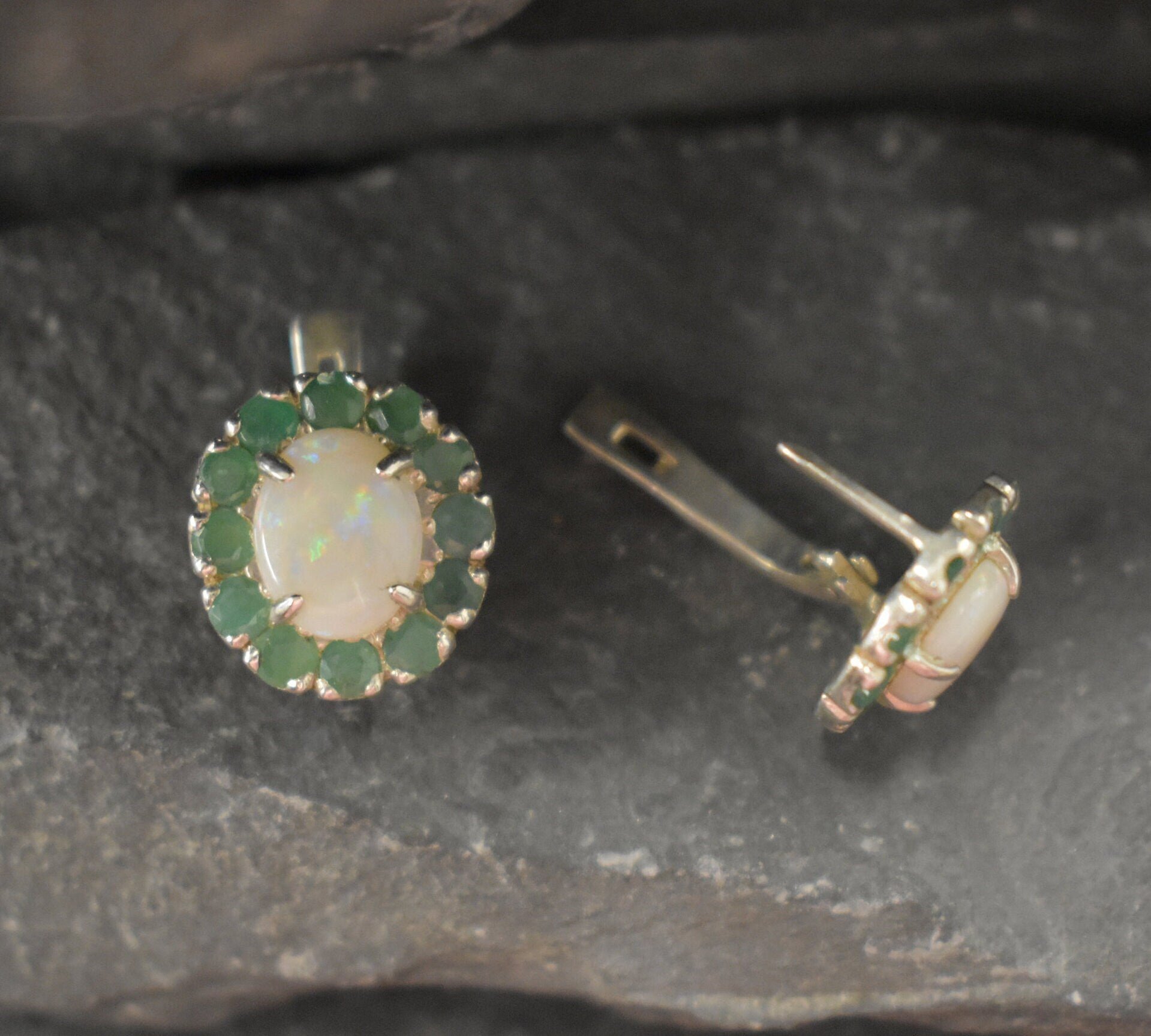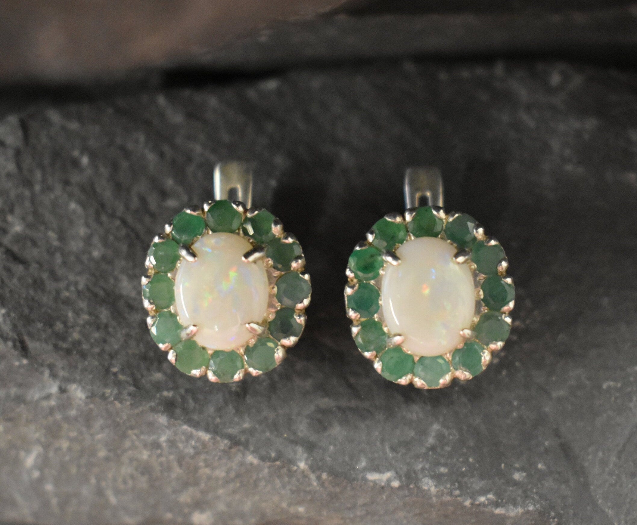 Opal Earrings, Natural Opal Earrings, Emerald Earrings, Australian Opal, Victorian Earrings, October Birthstone, 925 Silver Earrings, Opal