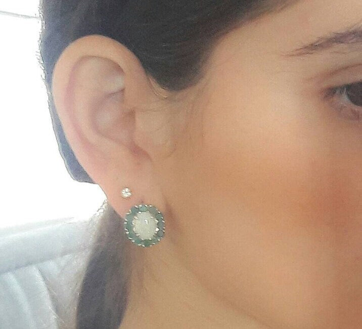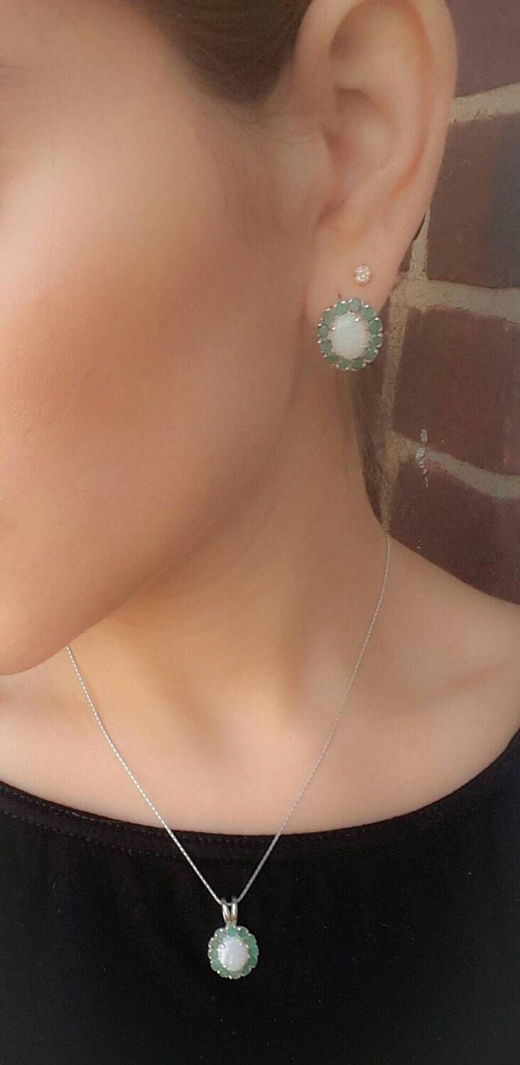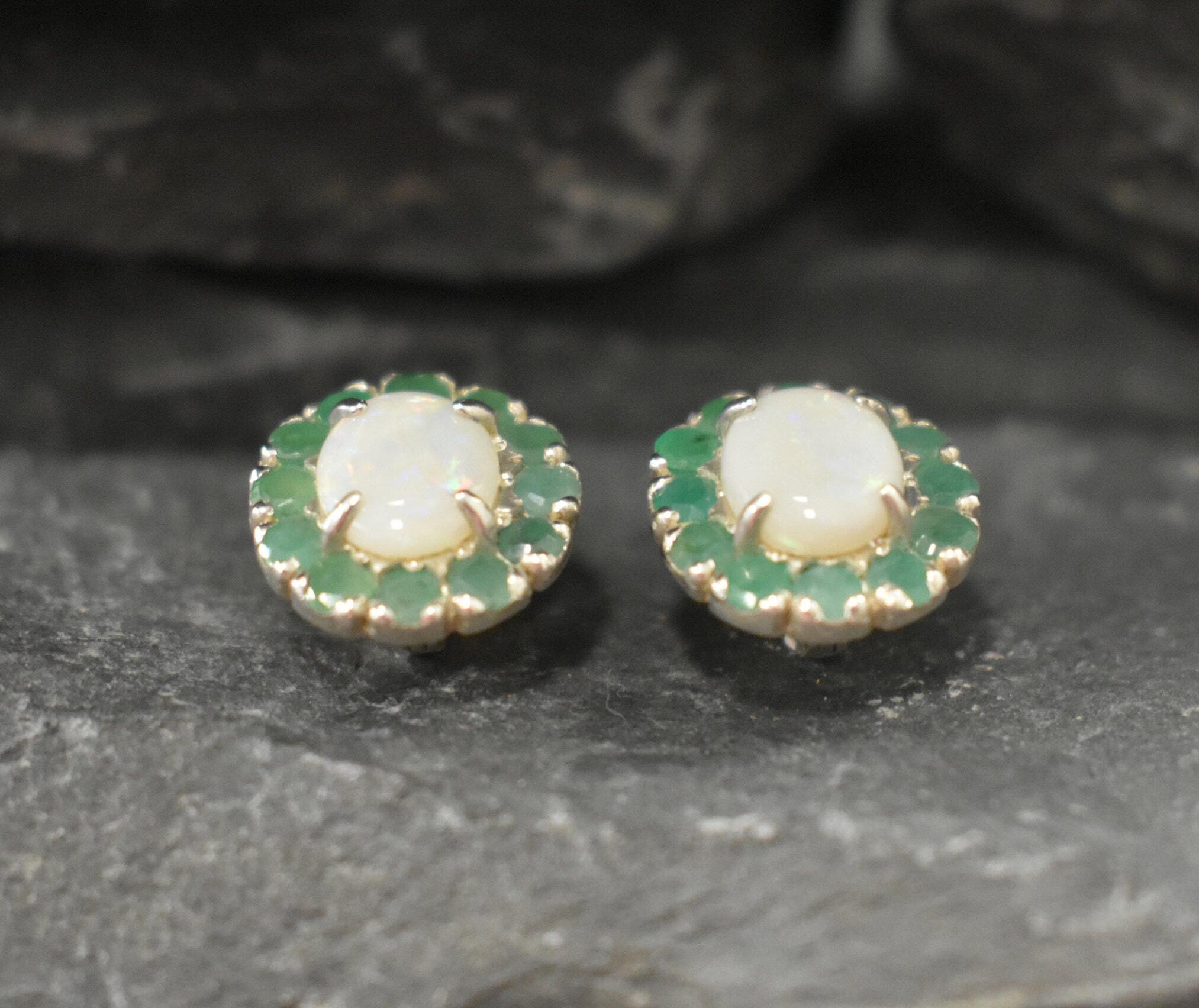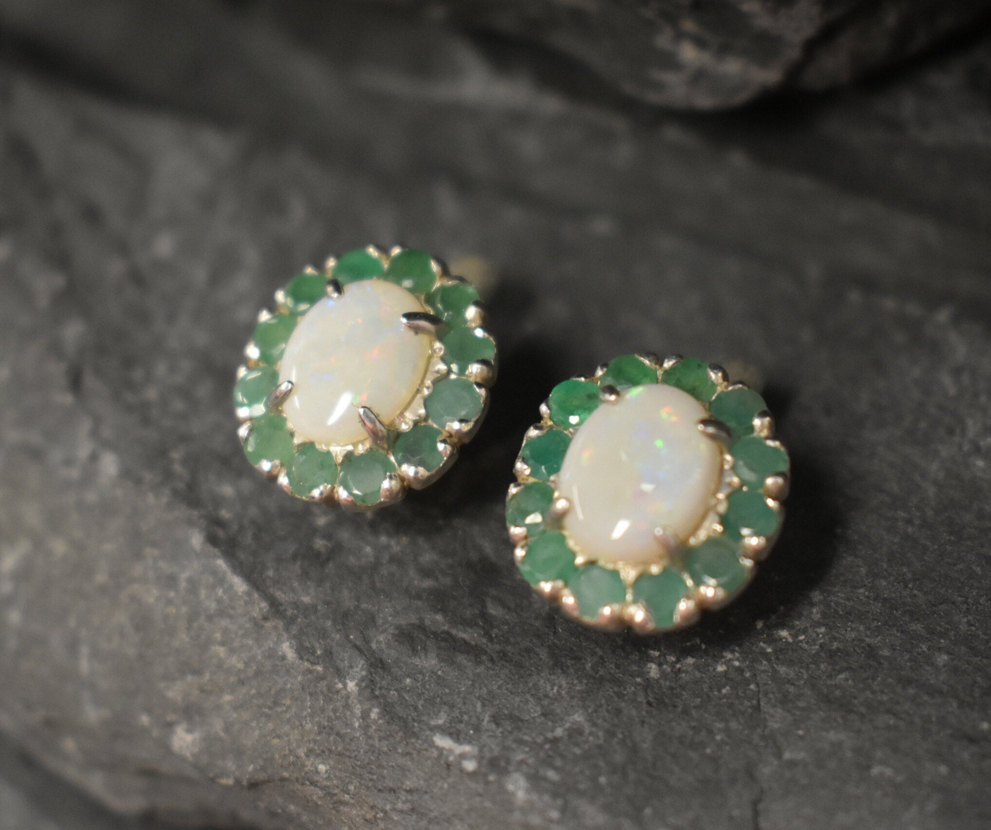 Opal Earrings, Natural Opal Earrings, Emerald Earrings, Australian Opal, Victorian Earrings, October Birthstone, 925 Silver Earrings, Opal