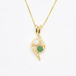 Emerald Bypass Necklace - Two Stone Pendant - Opal Vintage Necklace