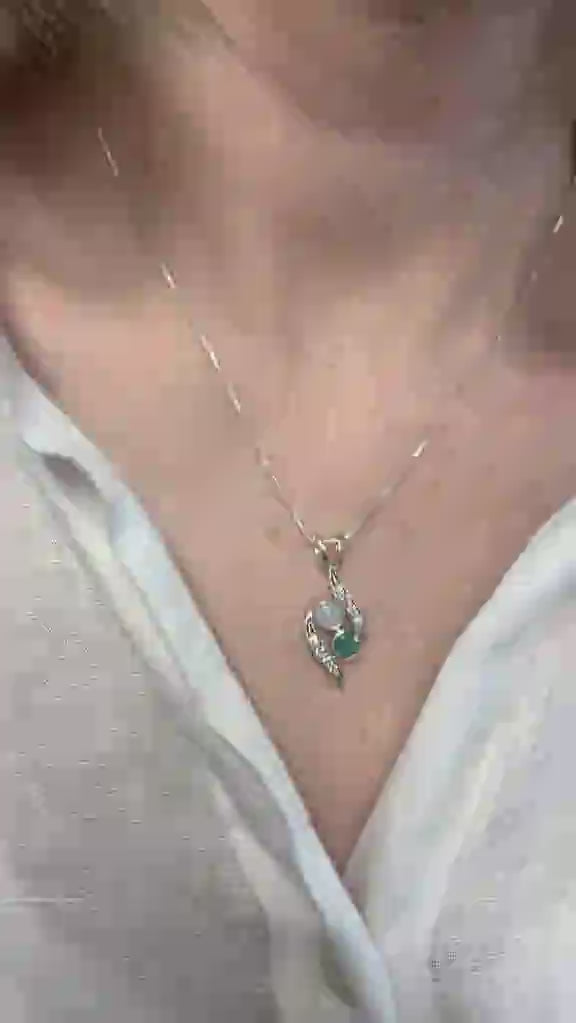 Opal Emerald Pendant, Natural Emerald, Natural Opal, Vintage Necklace, Two Stone Pendant, Bypass Pendant, Yin Yang Pendant, Sterling Silver(1)