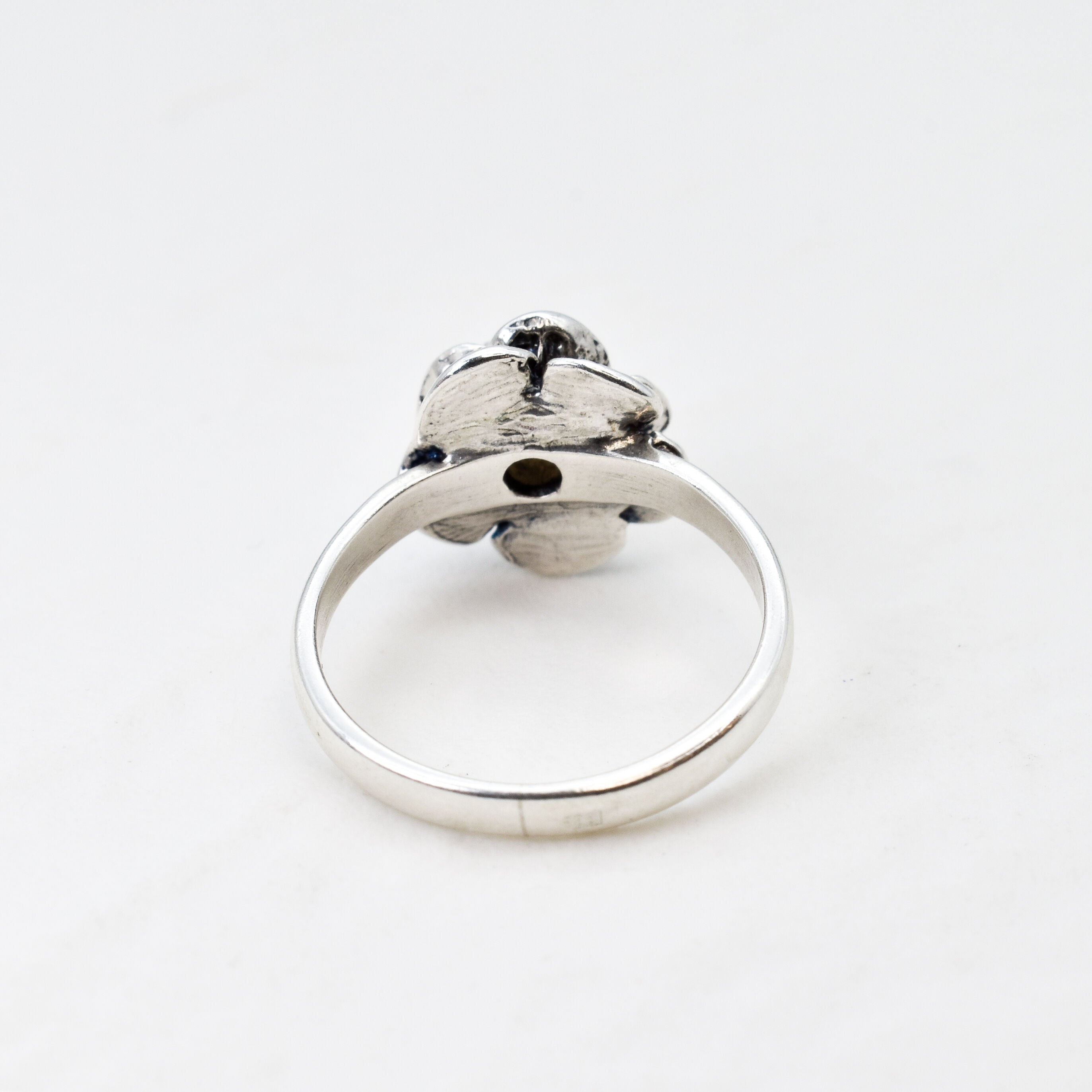 Natural Opal Flower design set in sterling silver ring offering timeless elegance and calming energy perfect as an October birthstone gift for birthdays anniversaries or romantic proposals.