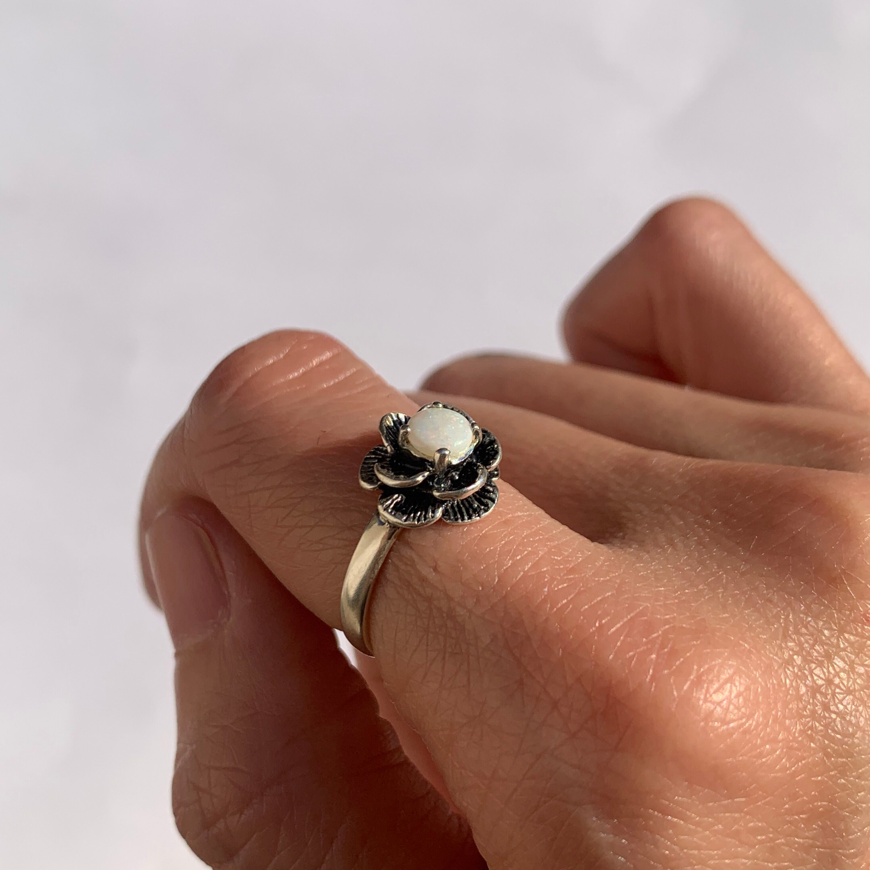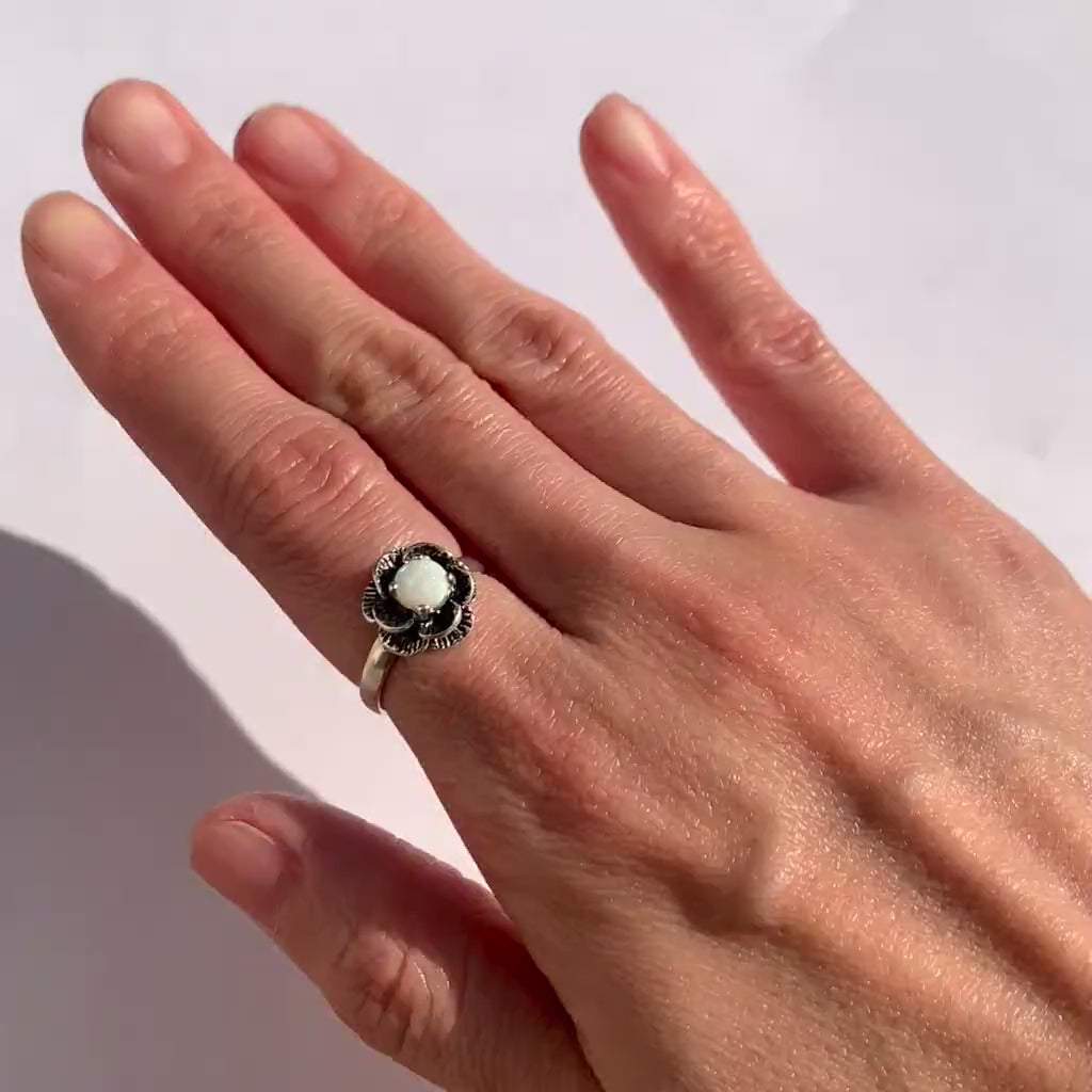 Opal Flower Ring, Natural Opal, Flower Ring, October Birthstone, White Rose Ring, Australian Opal, Genuine Opal Ring, Solid Silver Ring