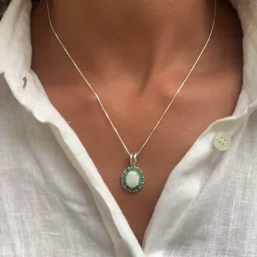 Flower Opal Necklace - Victorian Opal Necklace - Genuine Emerald Pendant