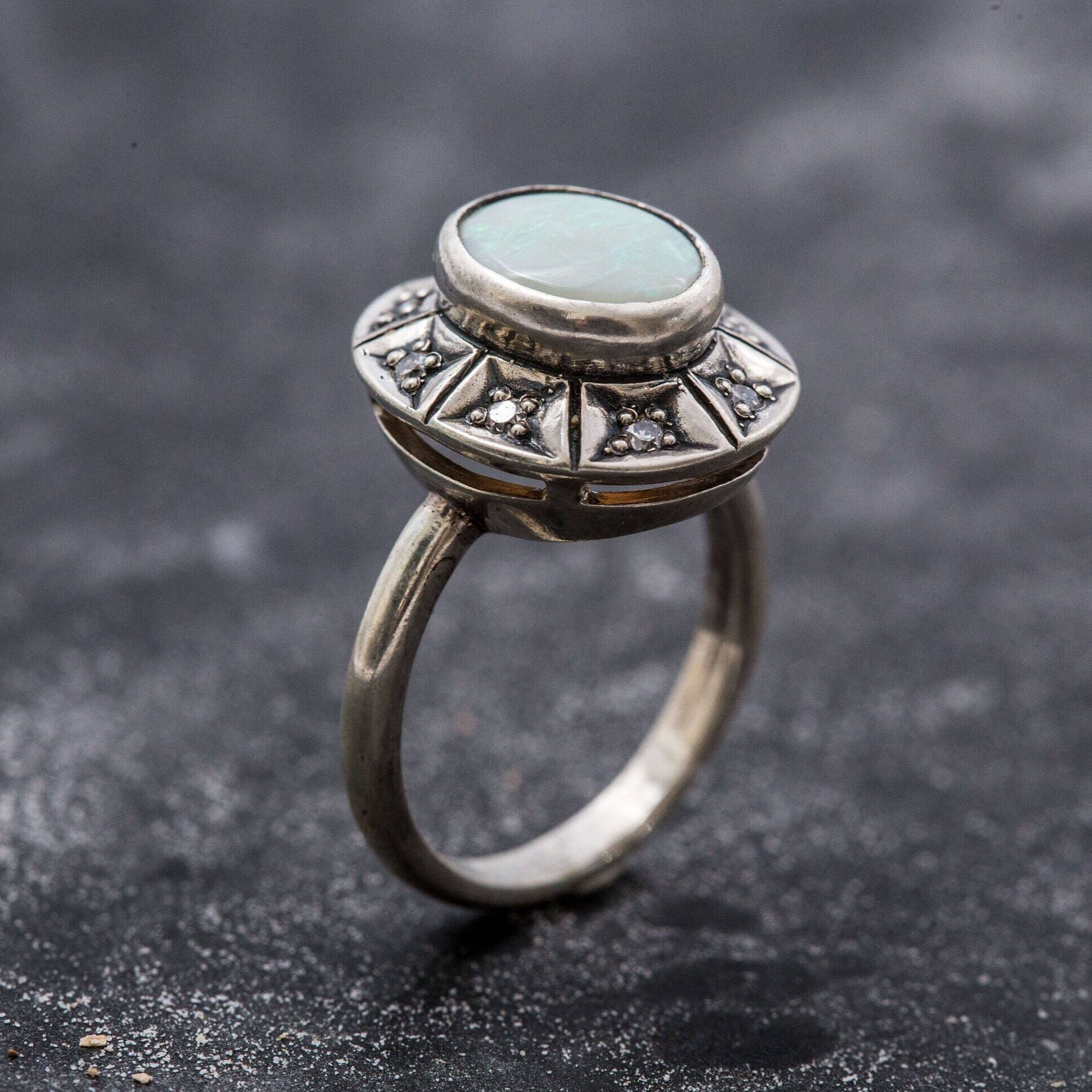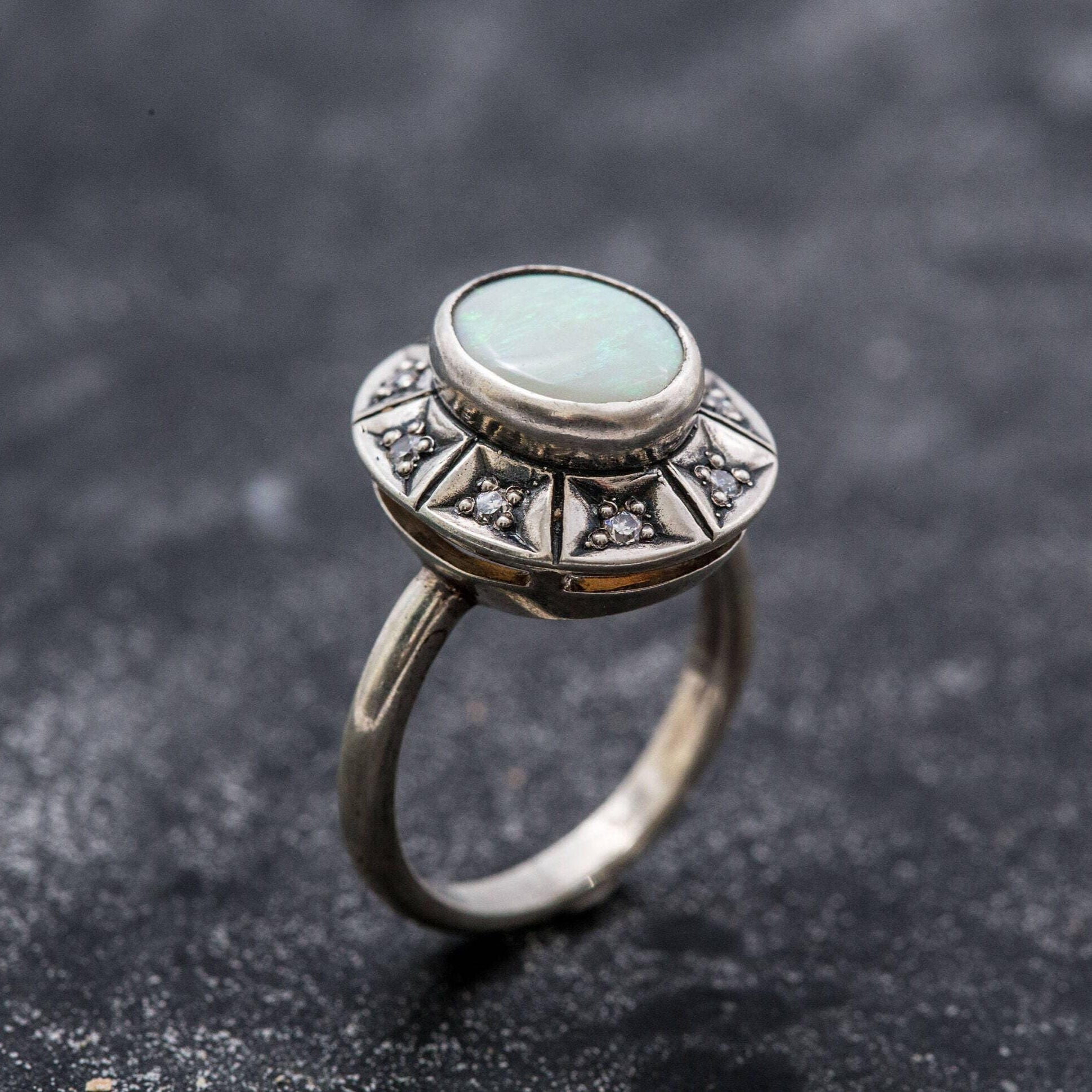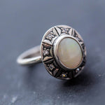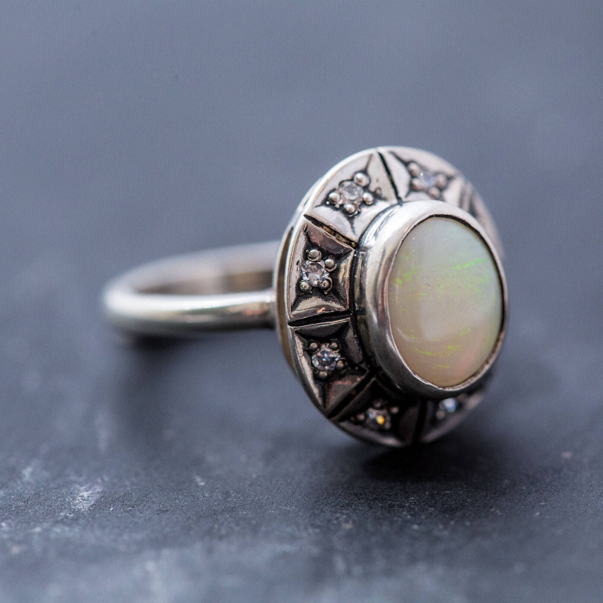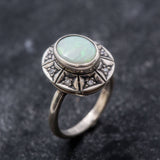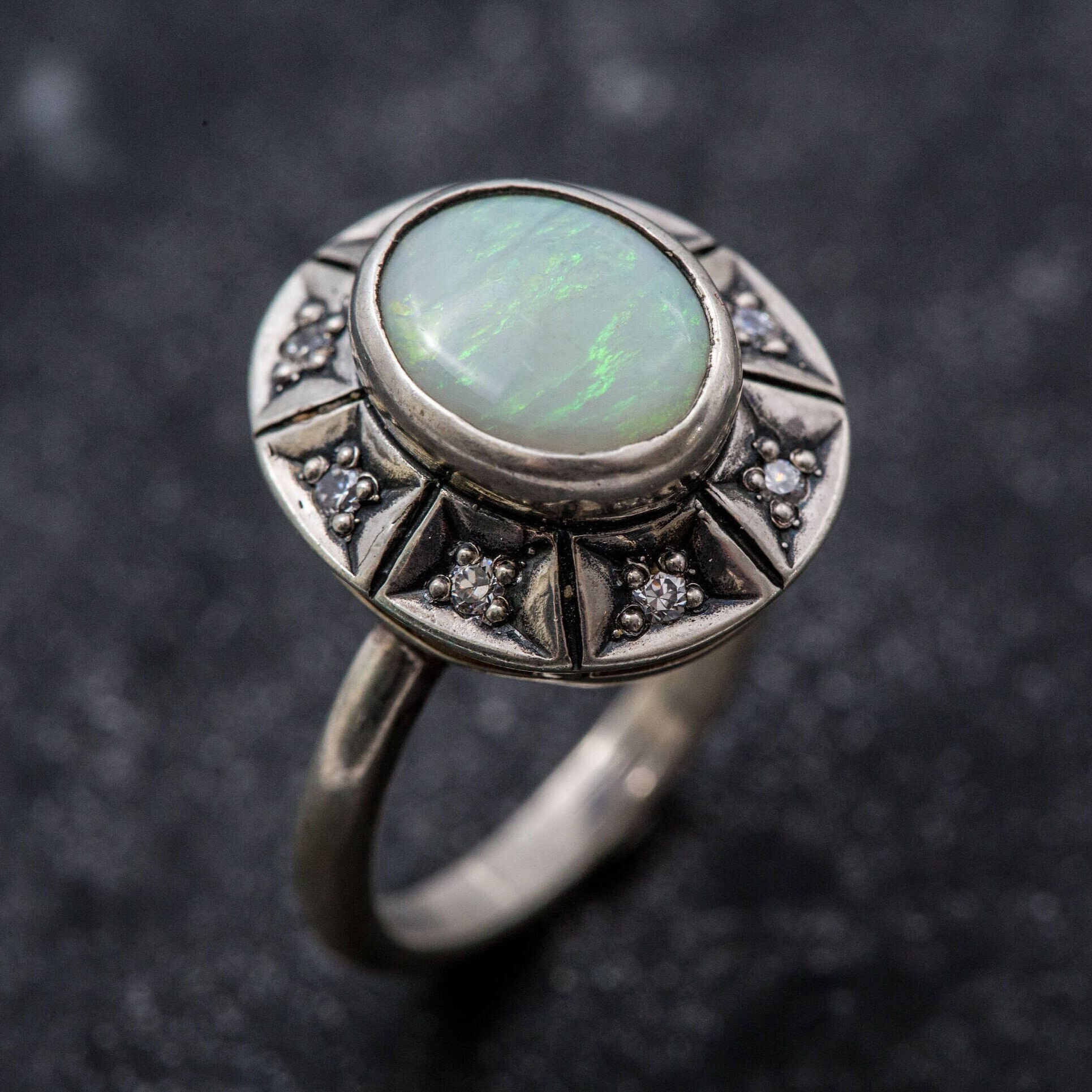 Antique Opal Ring, Natural Australian Opal, Bohemian Ring, October Birthstone, Vintage Rings, Fire Opal, White Oval Ring, Solid Silver Ring