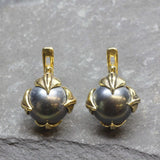 Rose Gold Pearl Earrings - Real Pearl Leaf Earrings - Vintage Black Pearl Studs