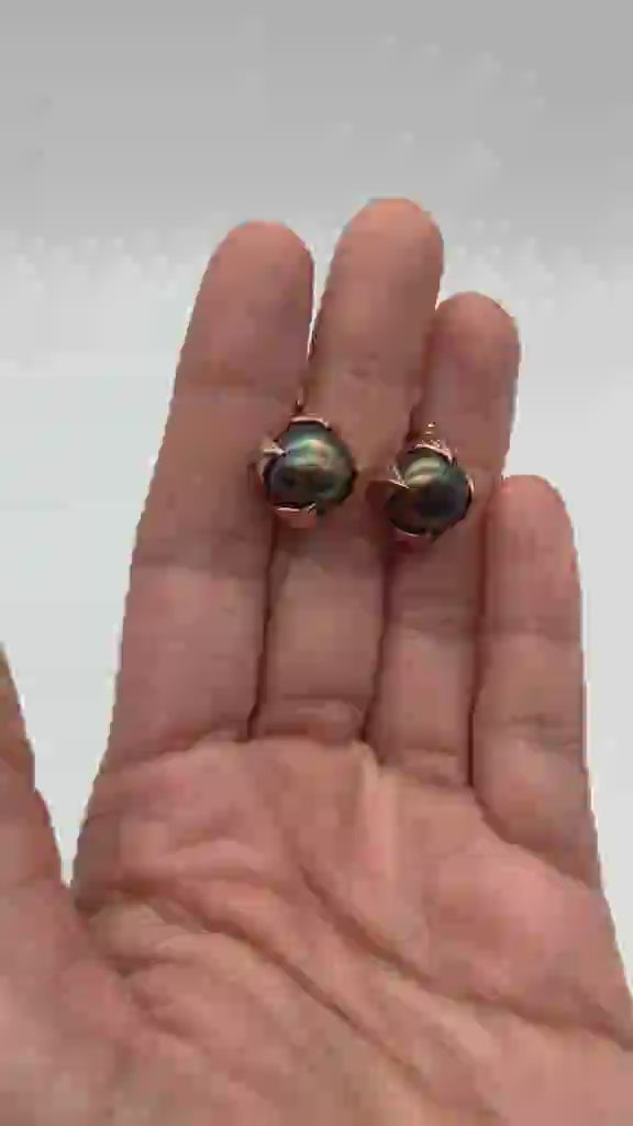 Rose Gold Pearl Earrings set with Natural Black Pearl in a top grade & black color, at 12mm each 9AAA Grade) from Japan.