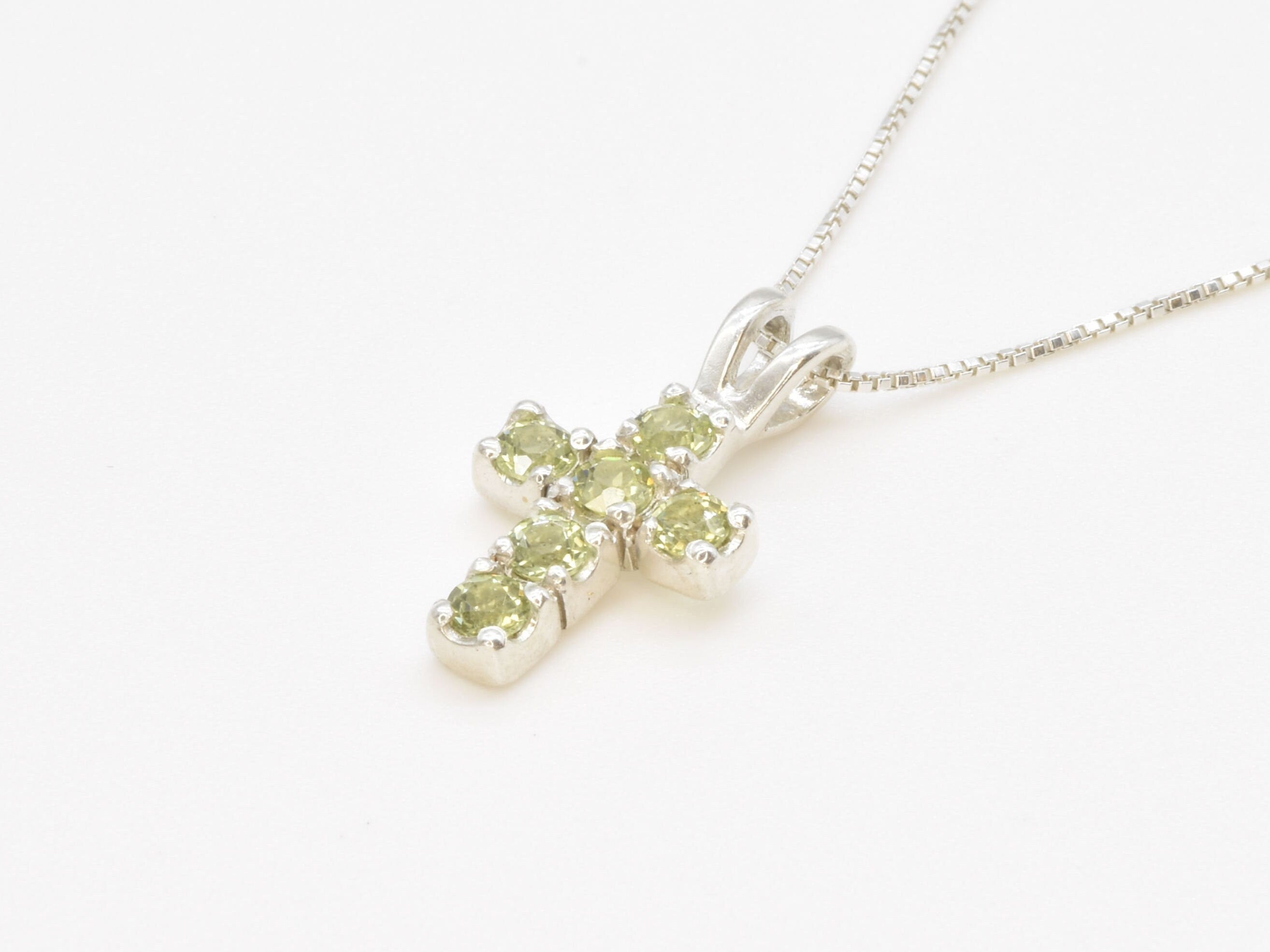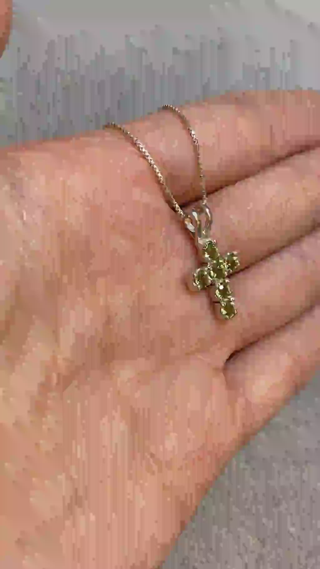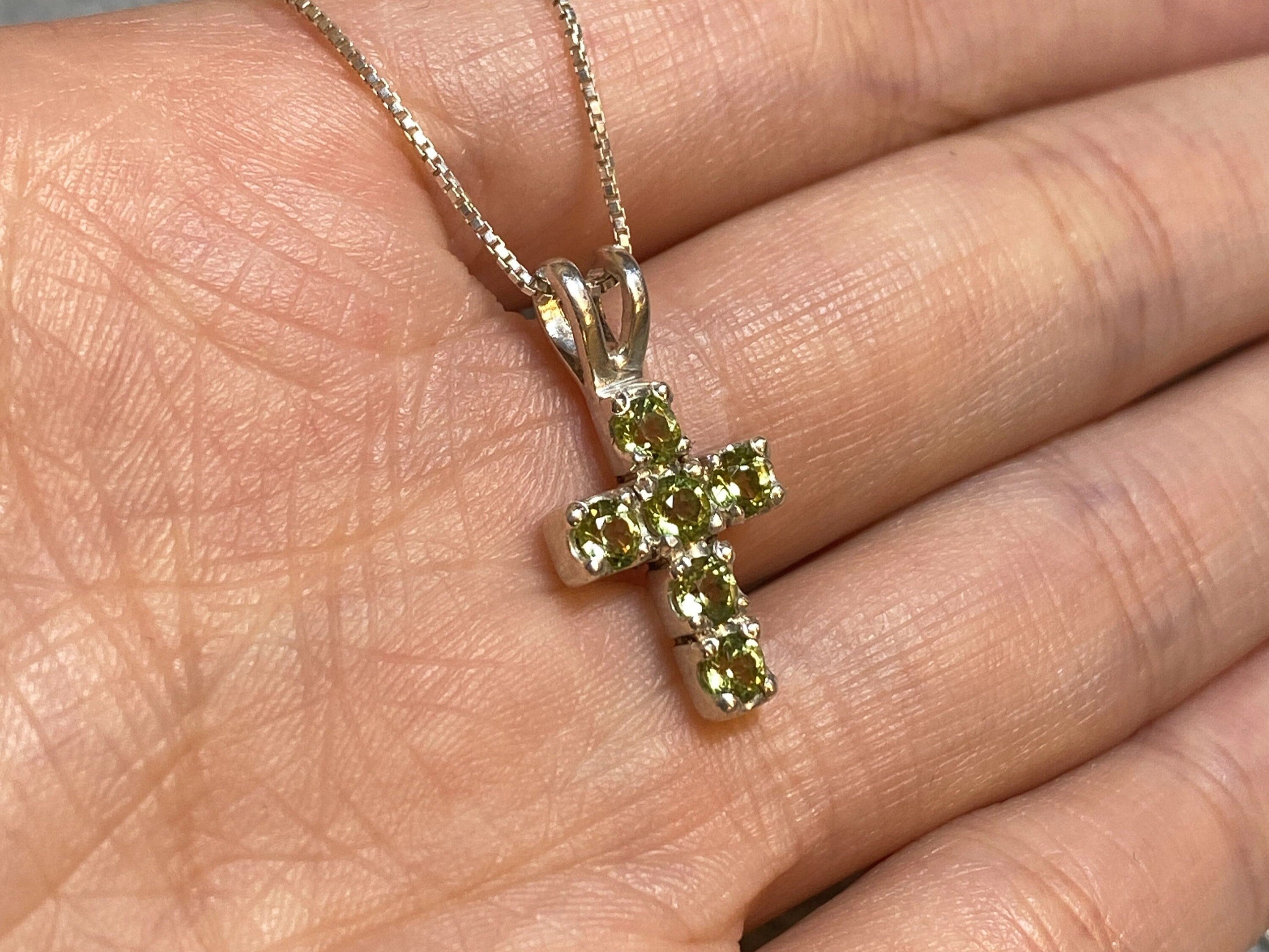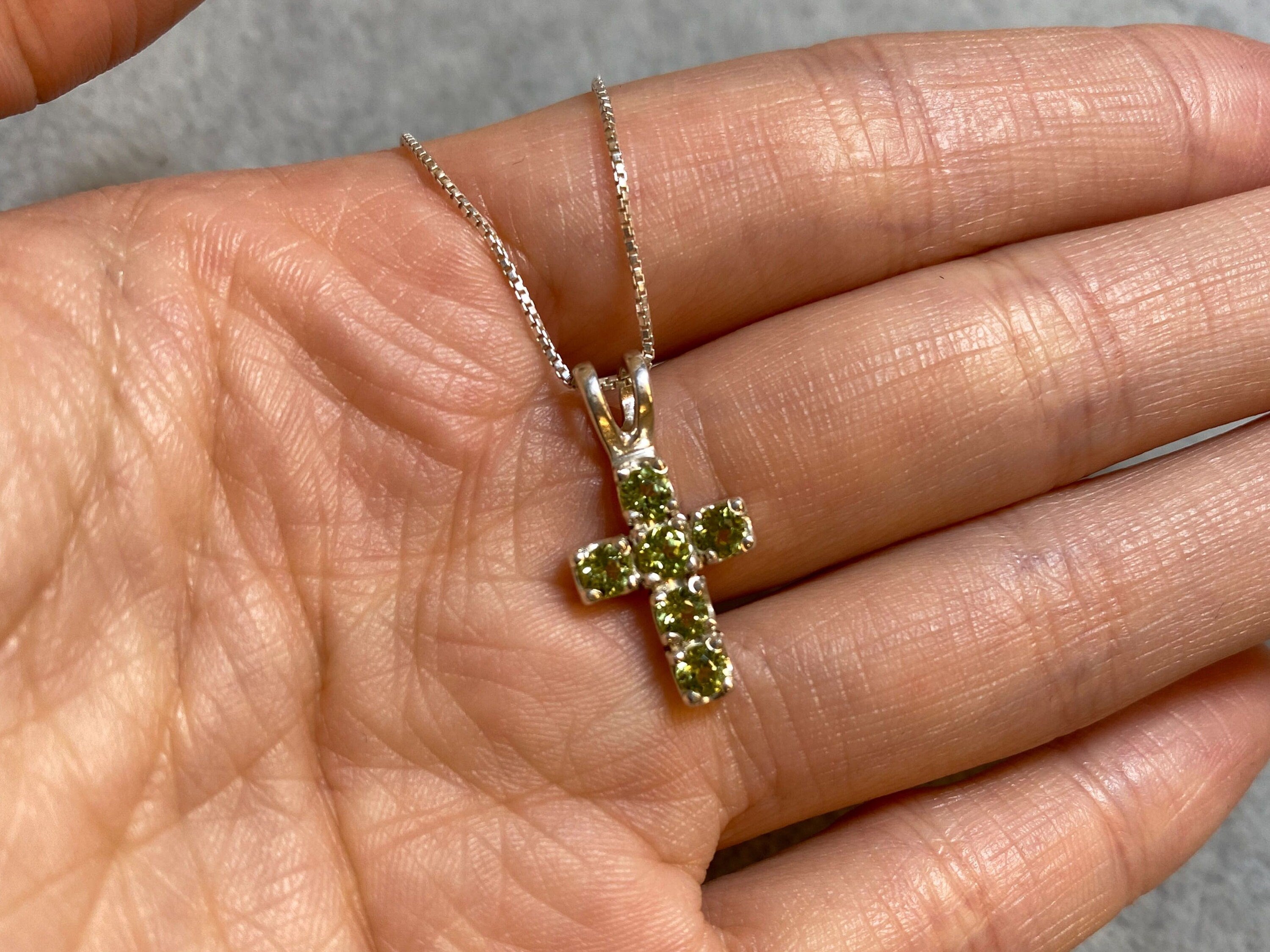 Peridot Cross Pendant - Green Cross Necklace, August Birthstone Pendant