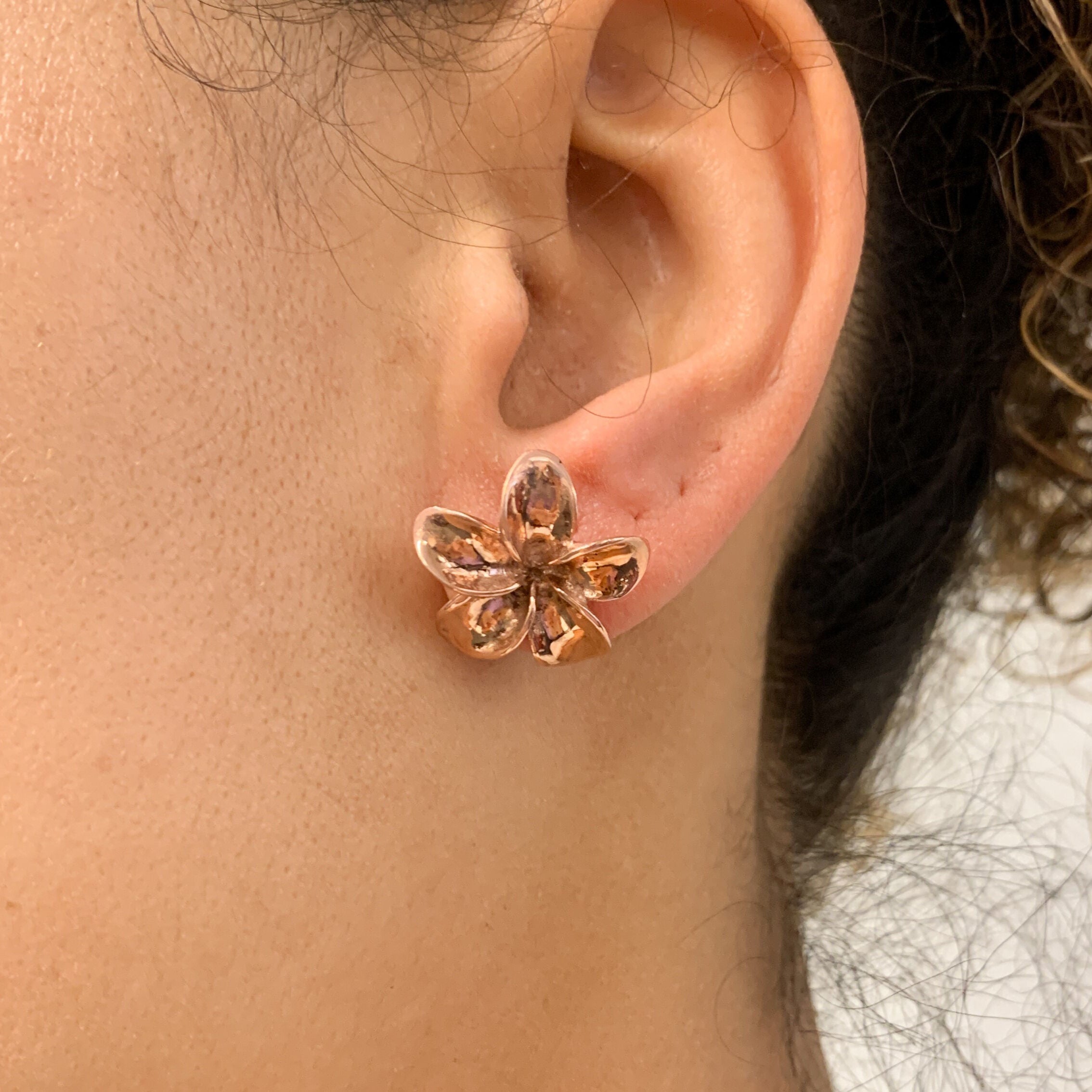 Pink Flower Earrings - Rose Gold Earrings - Hawaiian Plumeria Earrings