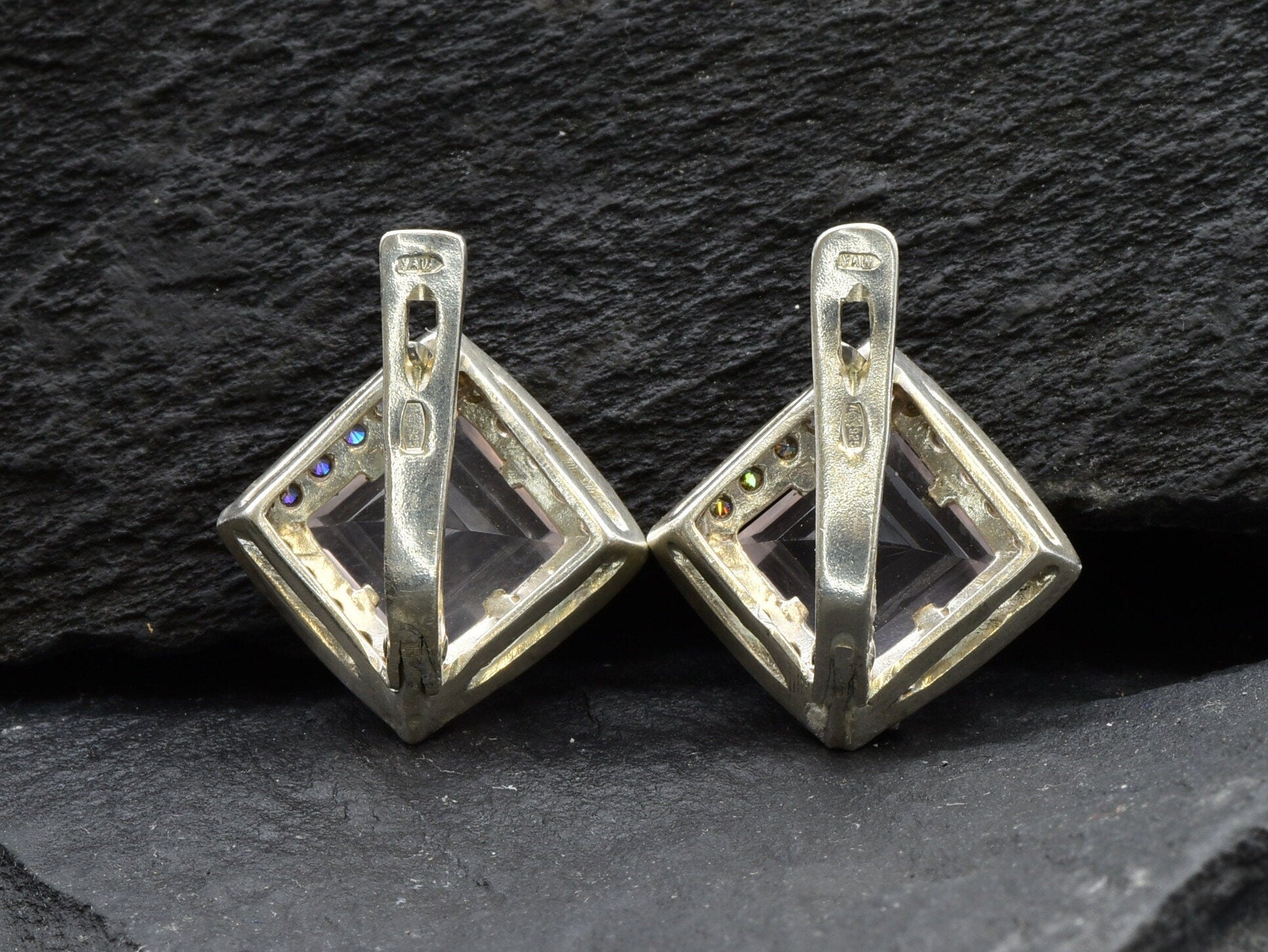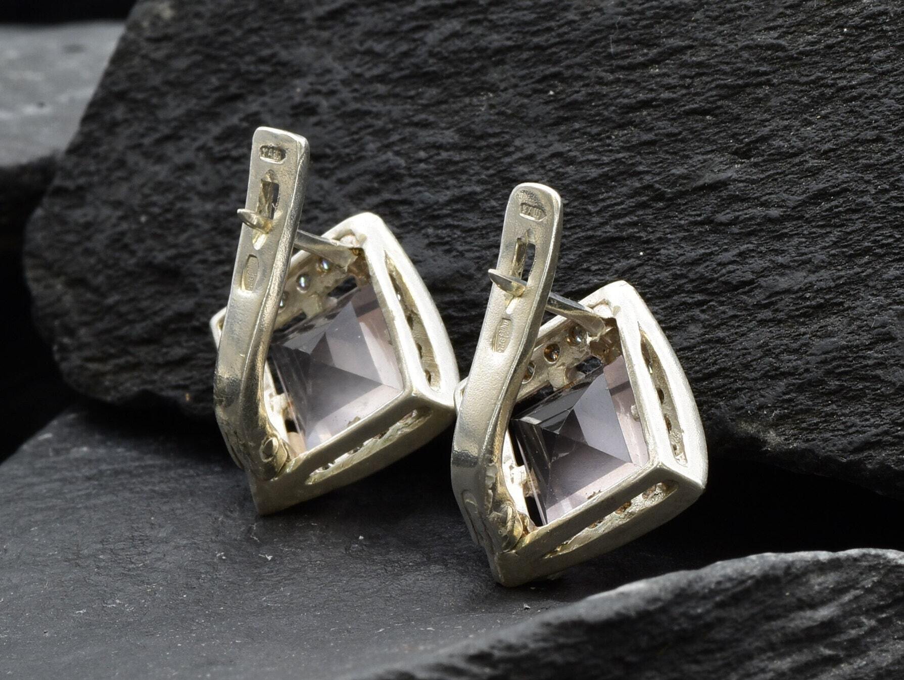 Rose Quartz Earrings, Natural Rose Quartz, January Birthstone, Square Earrings, Pink Earrings, Vintage Earrings, Sterling Silver Earrings
