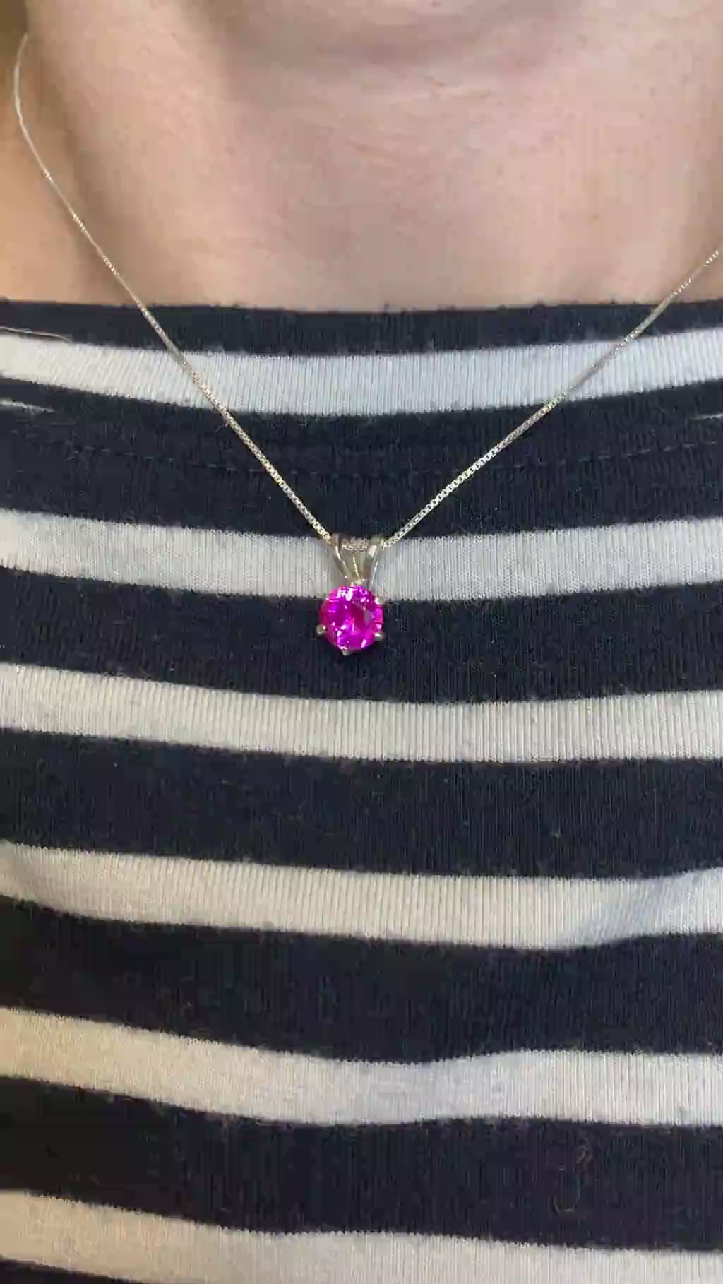 Alexandrite Pendant set with a Created Alexandrite in a diamond cut, flawless clarity & vivid pink color at 7mm (1 Ct).
