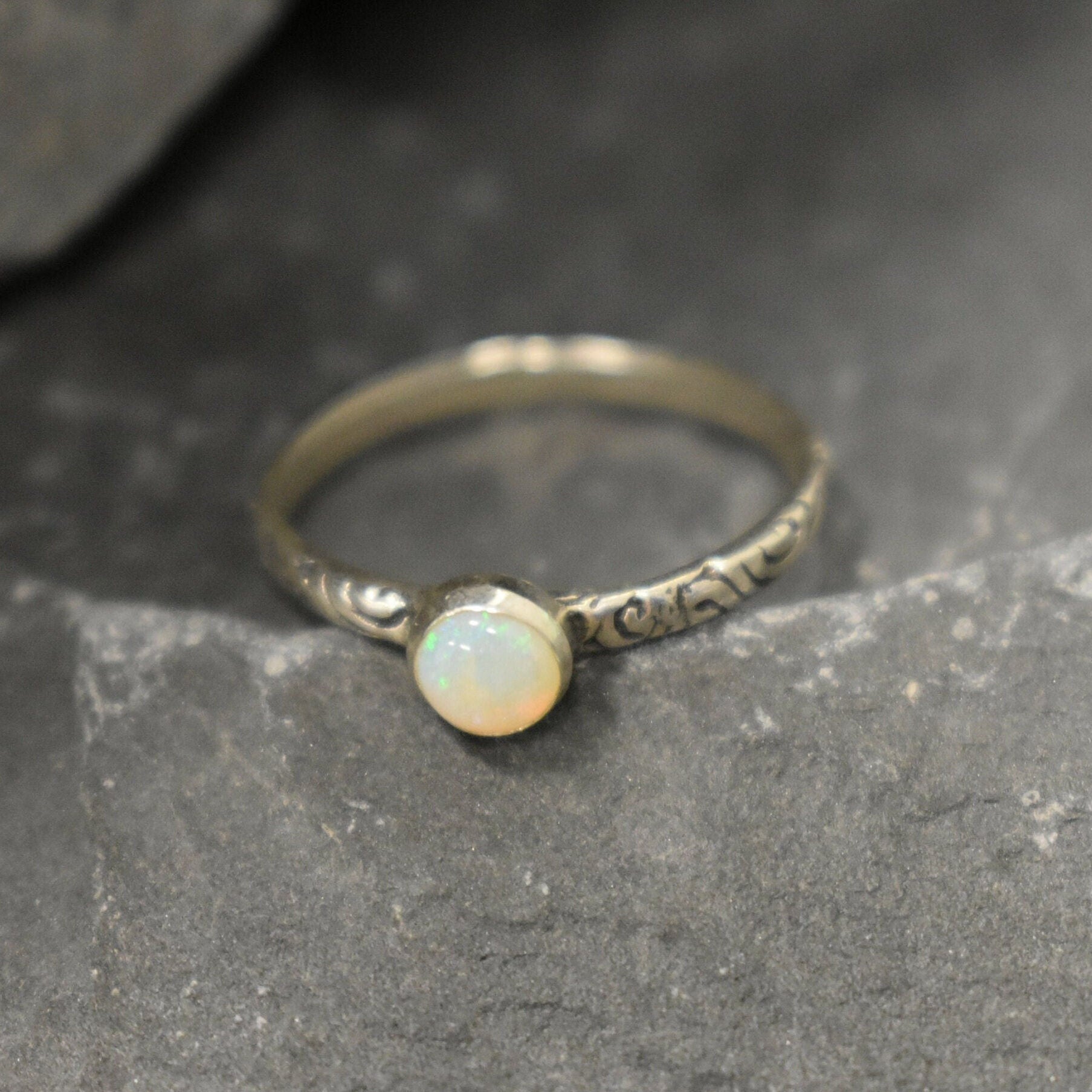Sterling Silver Australian Opal Ring - Engraved Opal Promise Ring - Real Fire Opal Ring