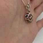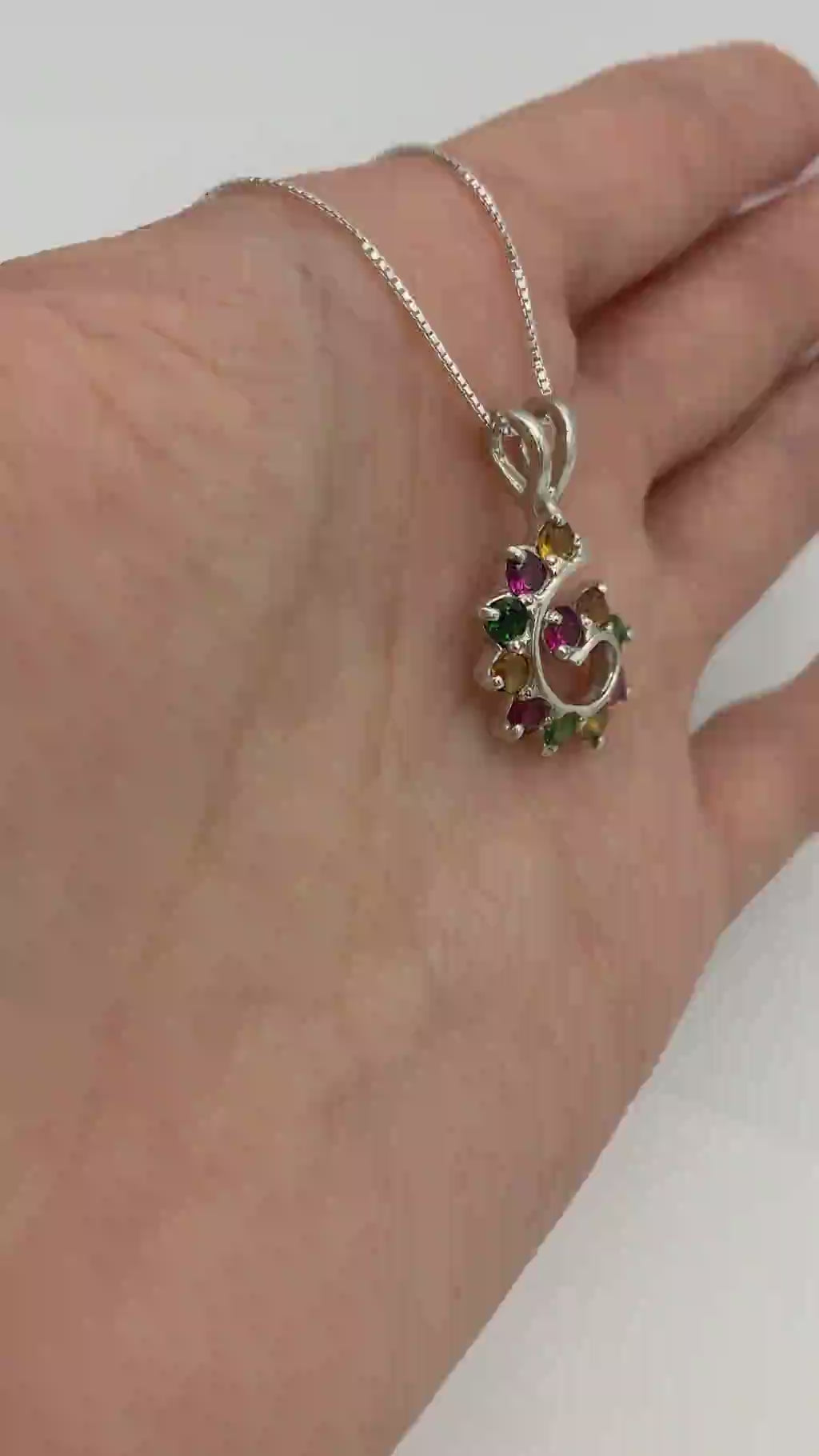 Rainbow Spiral Pendant set with Natural Tourmalines in all tourmaline colors & perfect diamond cut at 3mm each (2 Cts all) from Madagascar.