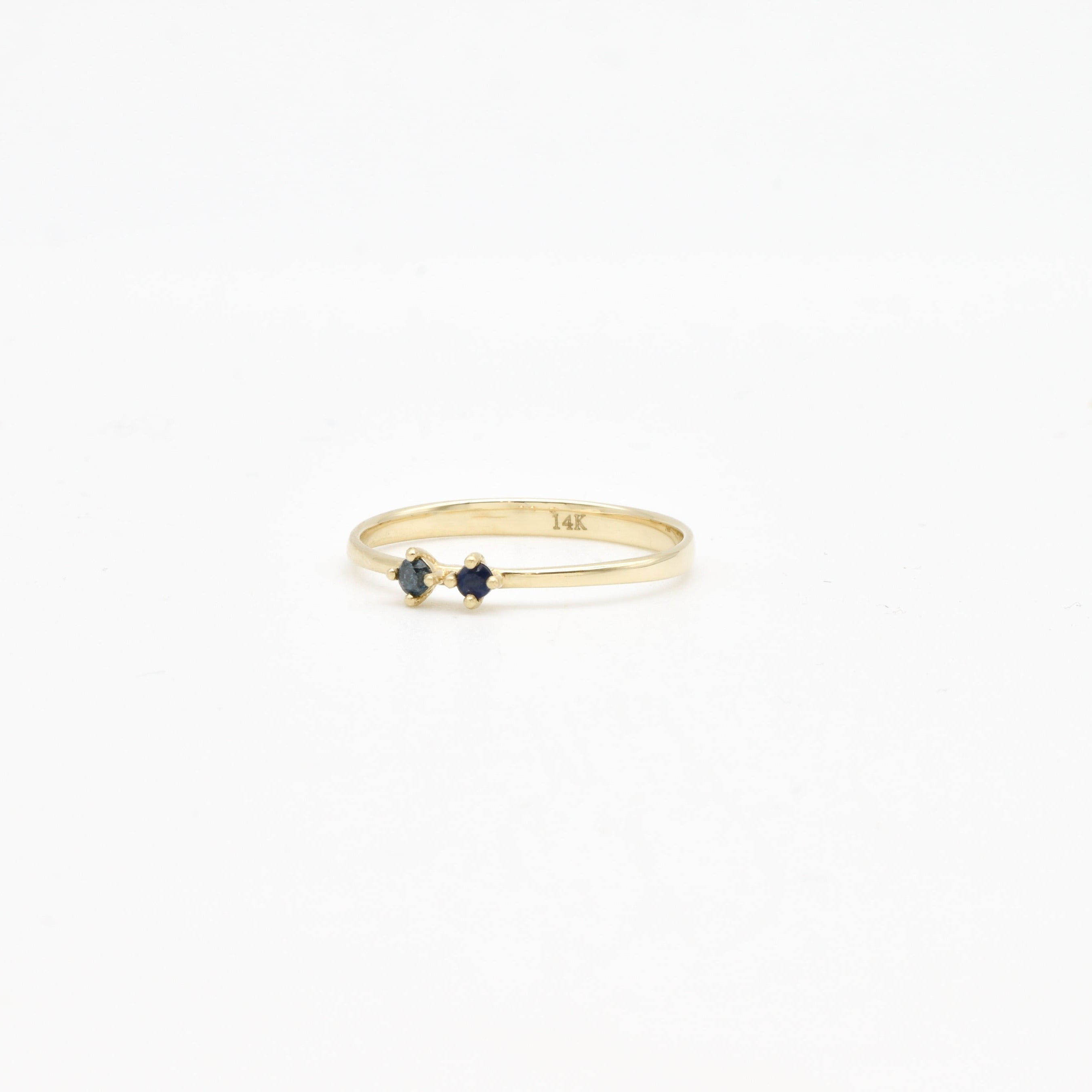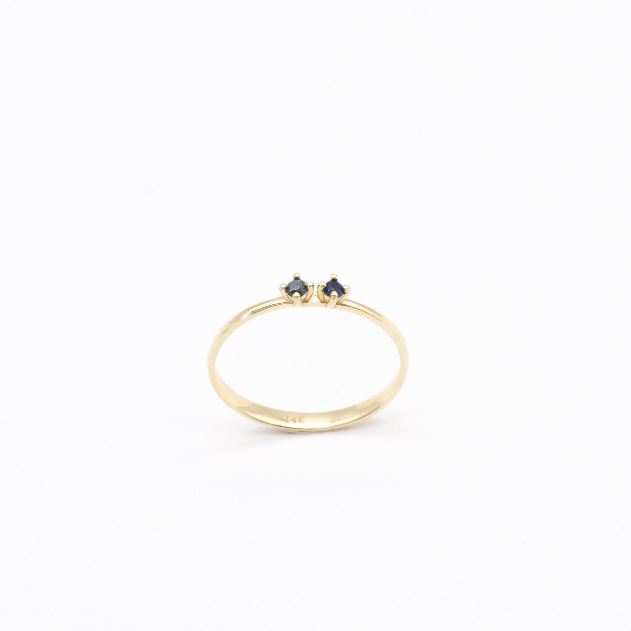 Genuine Blue Diamond Ring - Solid 14k Gold Ring - Blue Two Stone Ring