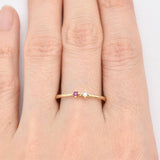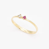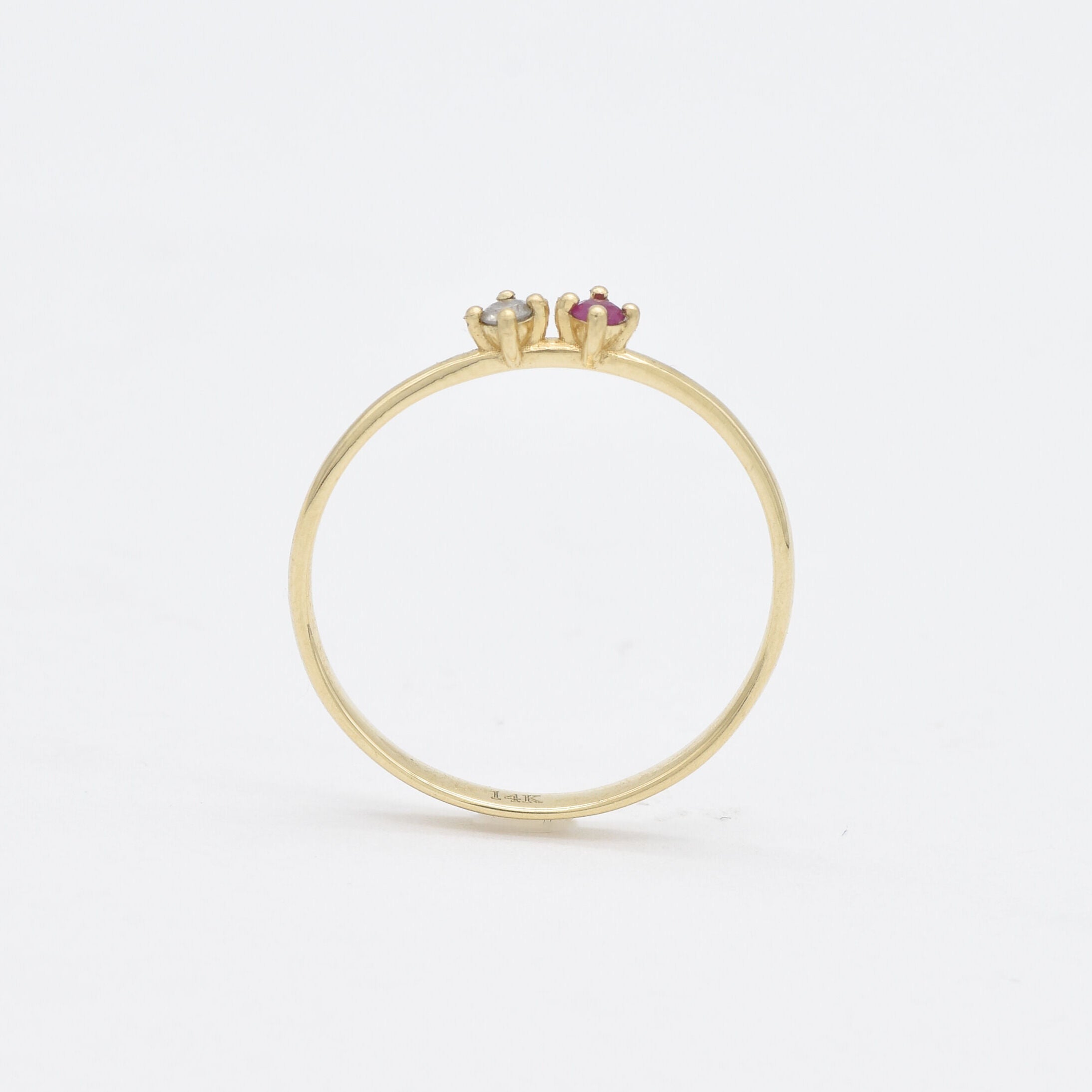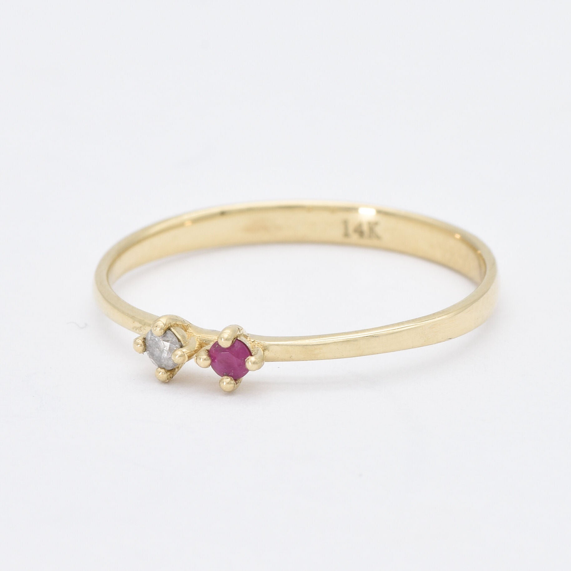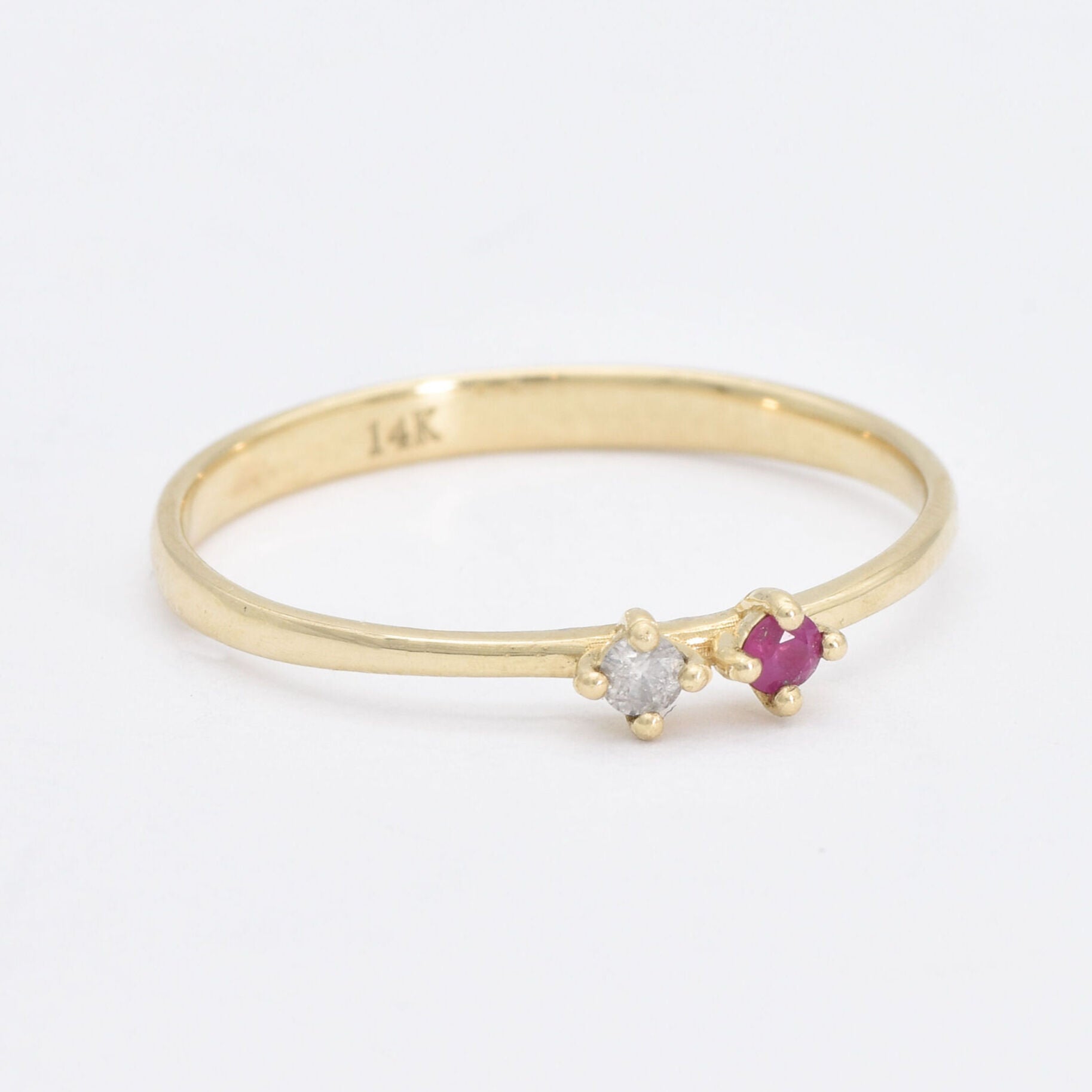 Gold Two Stone Ring - Natural Ruby Ring - Genuine Diamond Gold Ring