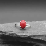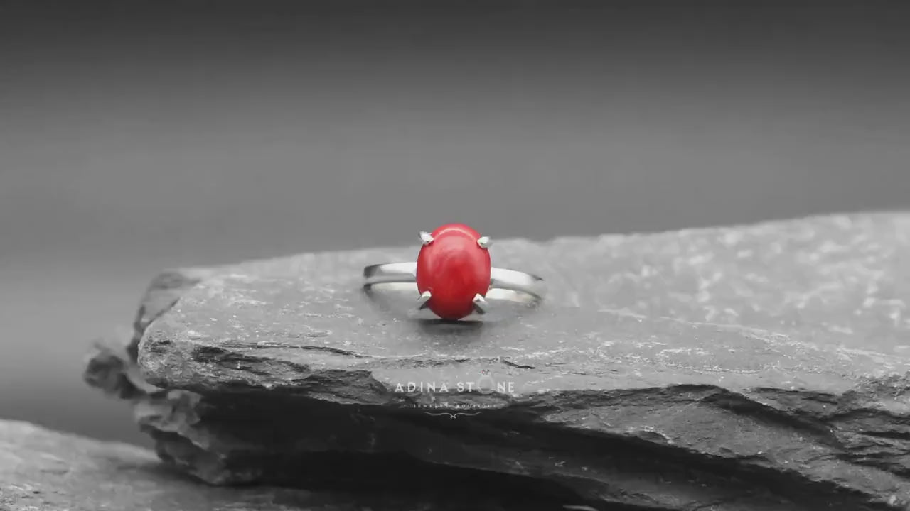 Red Coral Ring, Natural Coral, Solitaire Ring, Promise Ring, Simple Ring, Red Oval Ring, 3 Carat Ring, Proposal Ring, Solid Silver Ring
