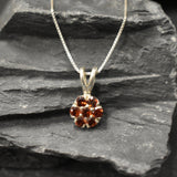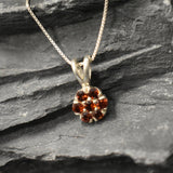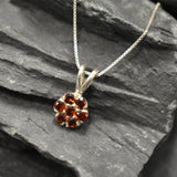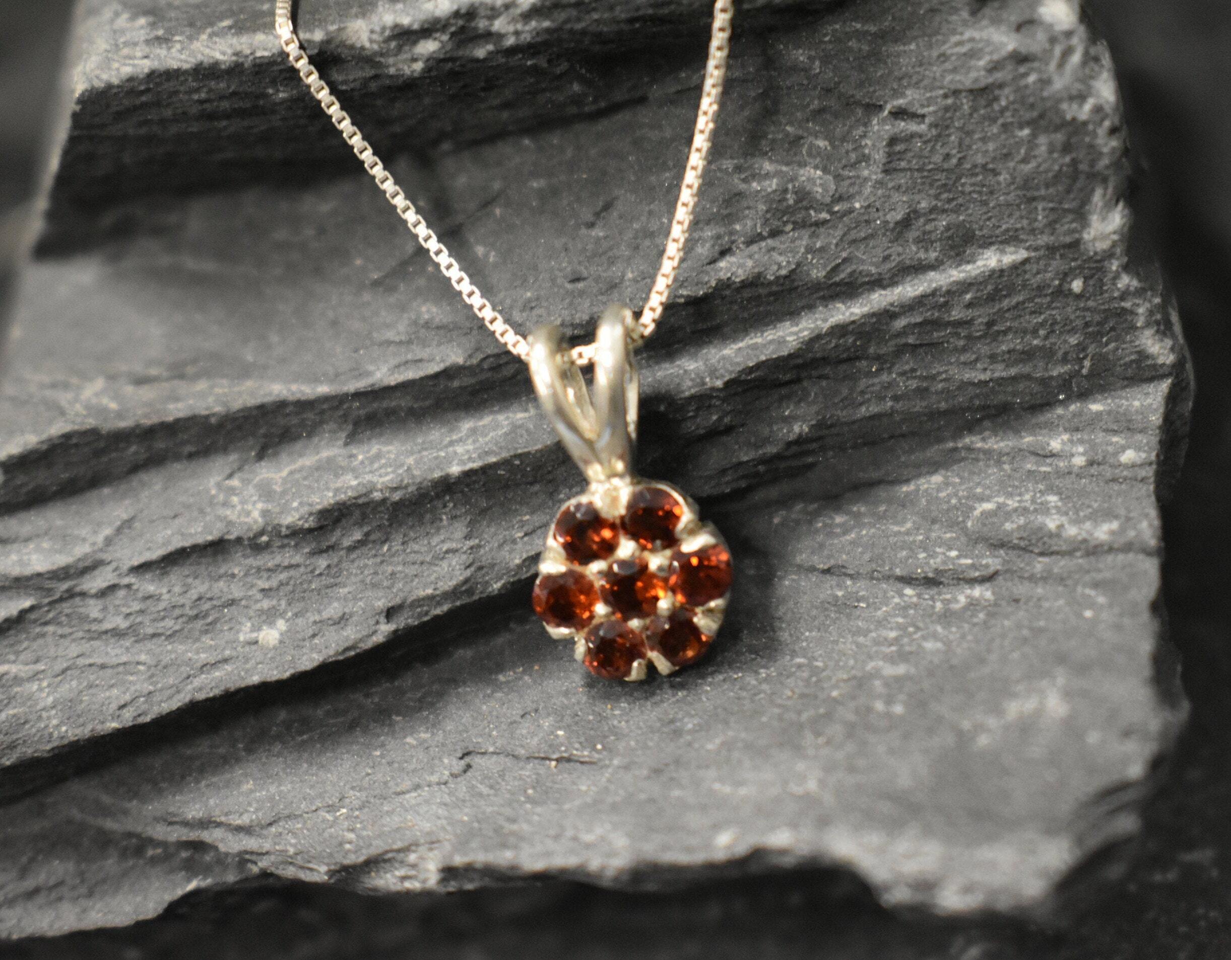 Red Flower Pendant, Natural Garnet Pendant, Dainty Pendant, January Birthstone, Daisy Pendant, Small Vintage Necklace, 925 Silver Pendant