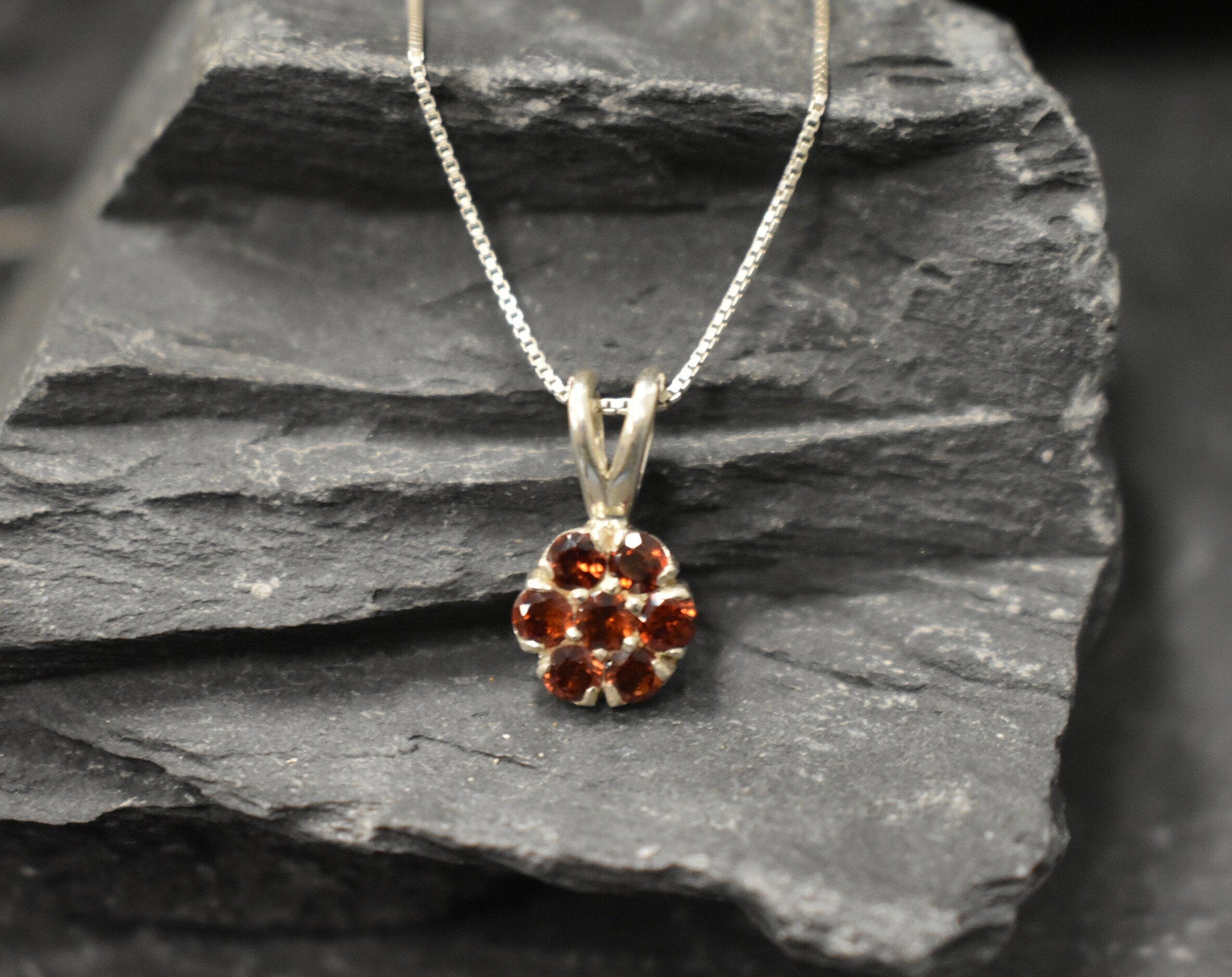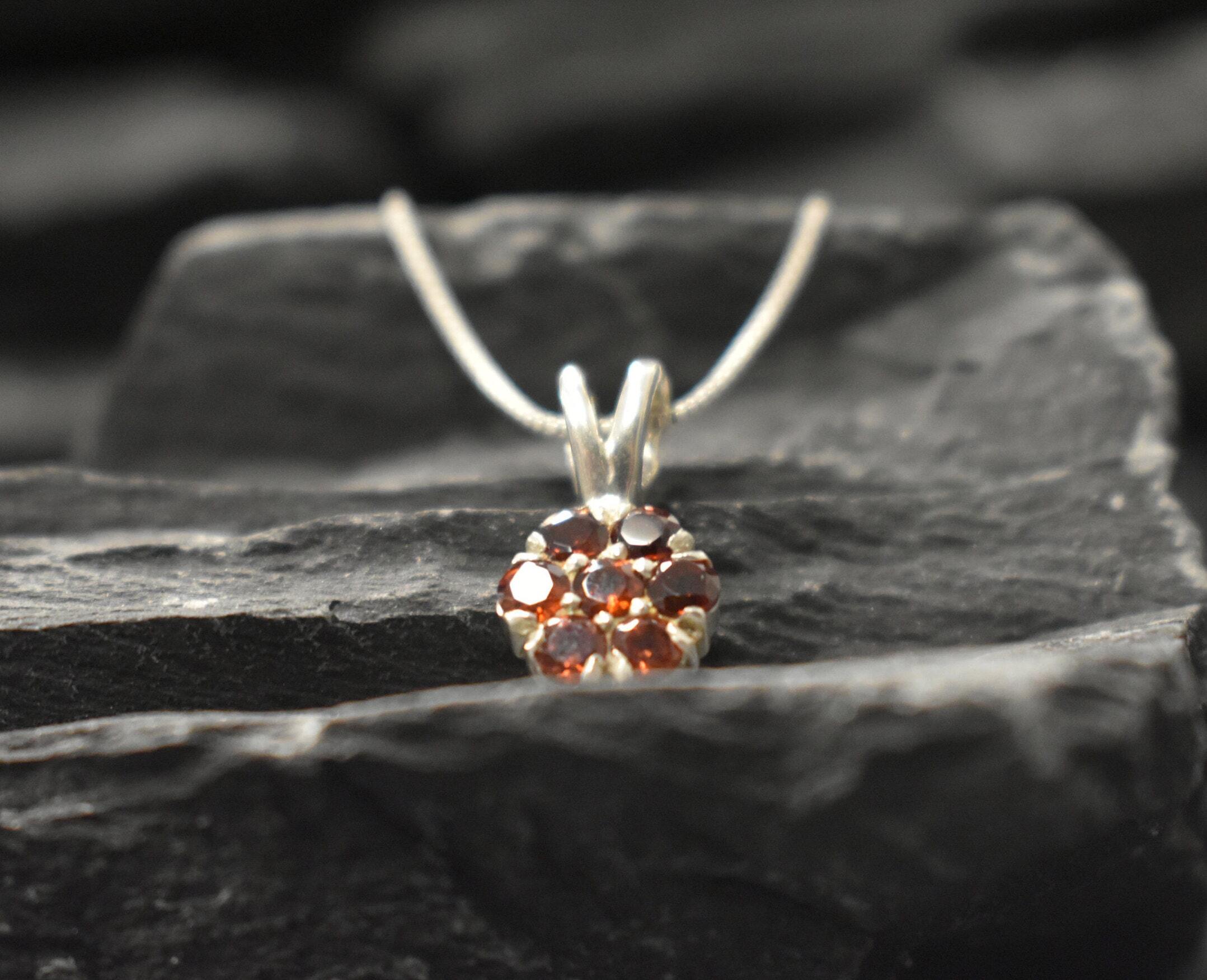 Red Flower Pendant, Natural Garnet Pendant, Dainty Pendant, January Birthstone, Daisy Pendant, Small Vintage Necklace, 925 Silver Pendant(1)