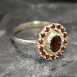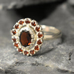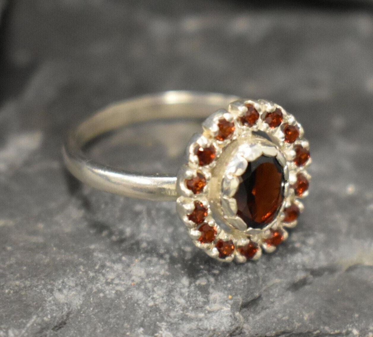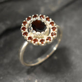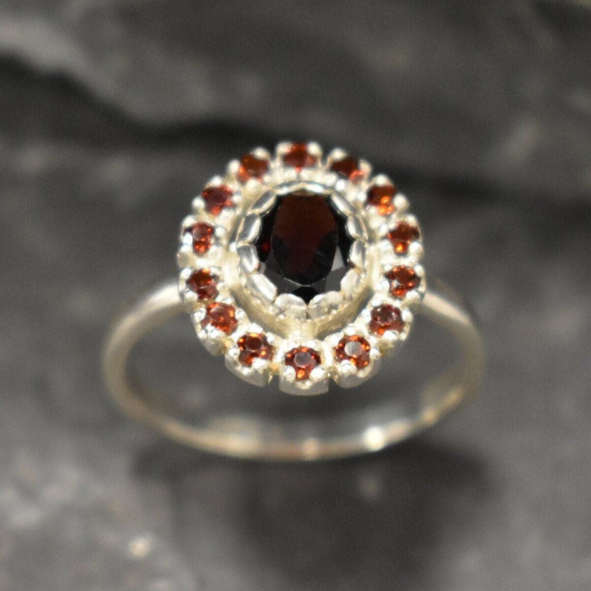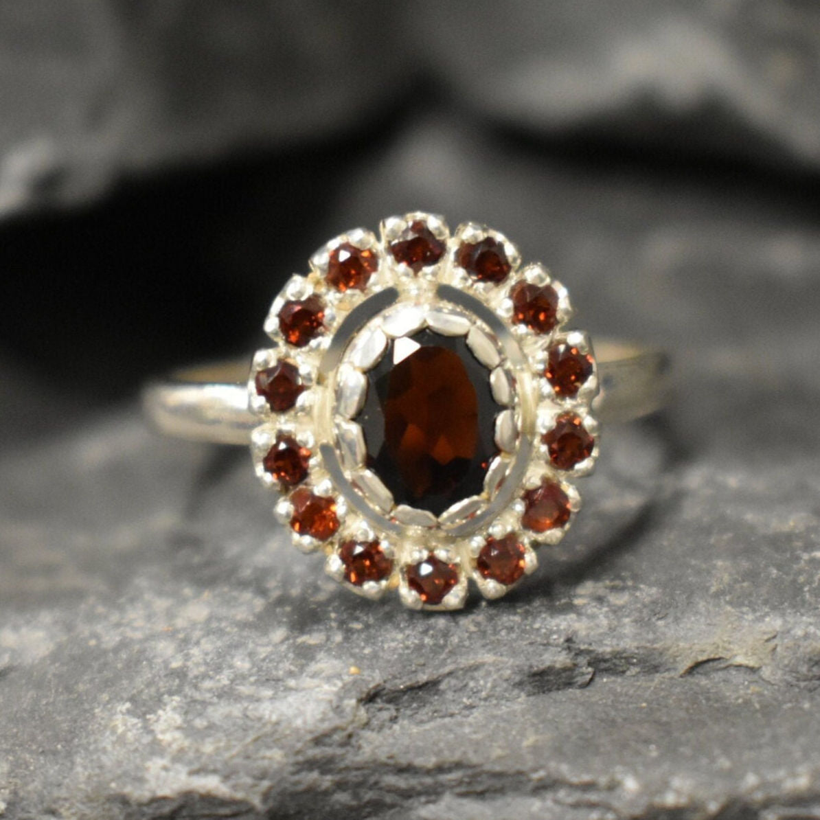 Red Victorian Ring, Natural Garnet, Red Ring, January Birthstone, Flower Ring, Vintage Ring, Oval Ring, Dainty Ring, Sterling Silver Ring