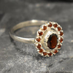 Victorian Garnet Ring - Red Flower Ring - Garnet Cocktail Ring