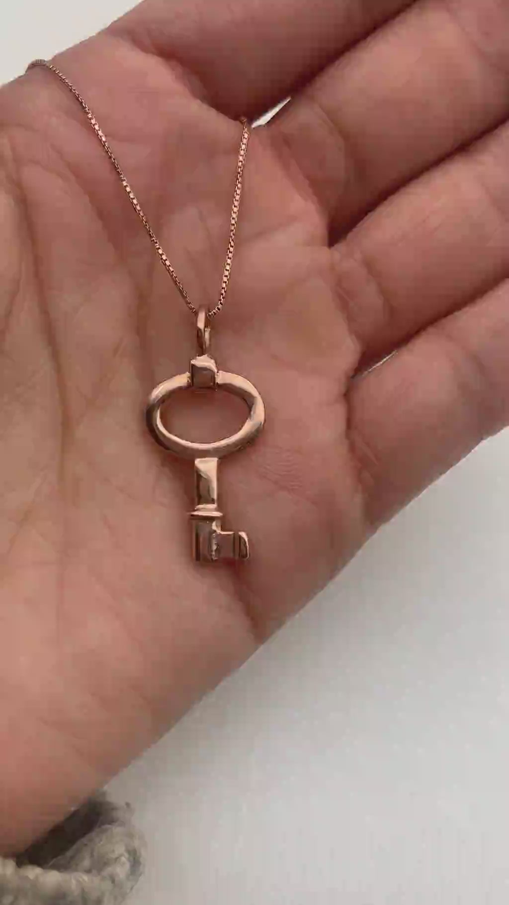 Rose Gold Key Pendant design made of Rose Gold Vermeil ☞ thickest 18k Gold Plating on top of Solid 925 Sterling Silver ☞ made to last.