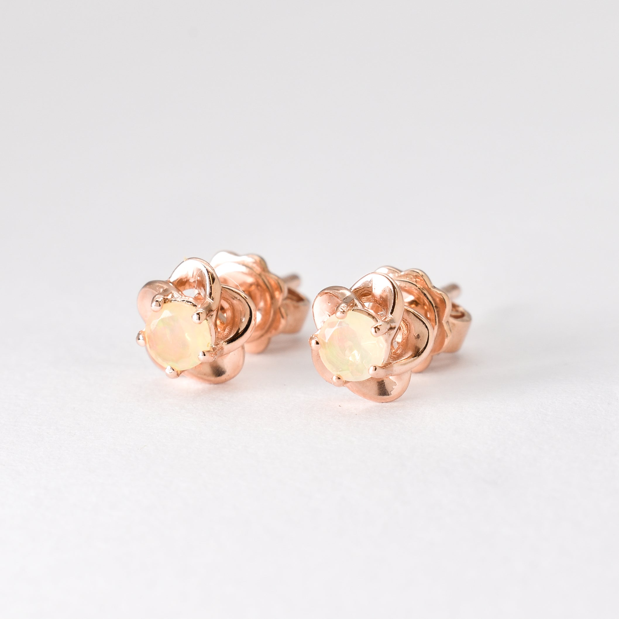 Rose Gold Opal Studs - Genuine Opal Earrings - Dainty Flower Studs