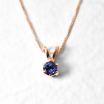 Rose Gold Tanzanite Pendant - Dainty Blue Necklace - Classic Round Necklace
