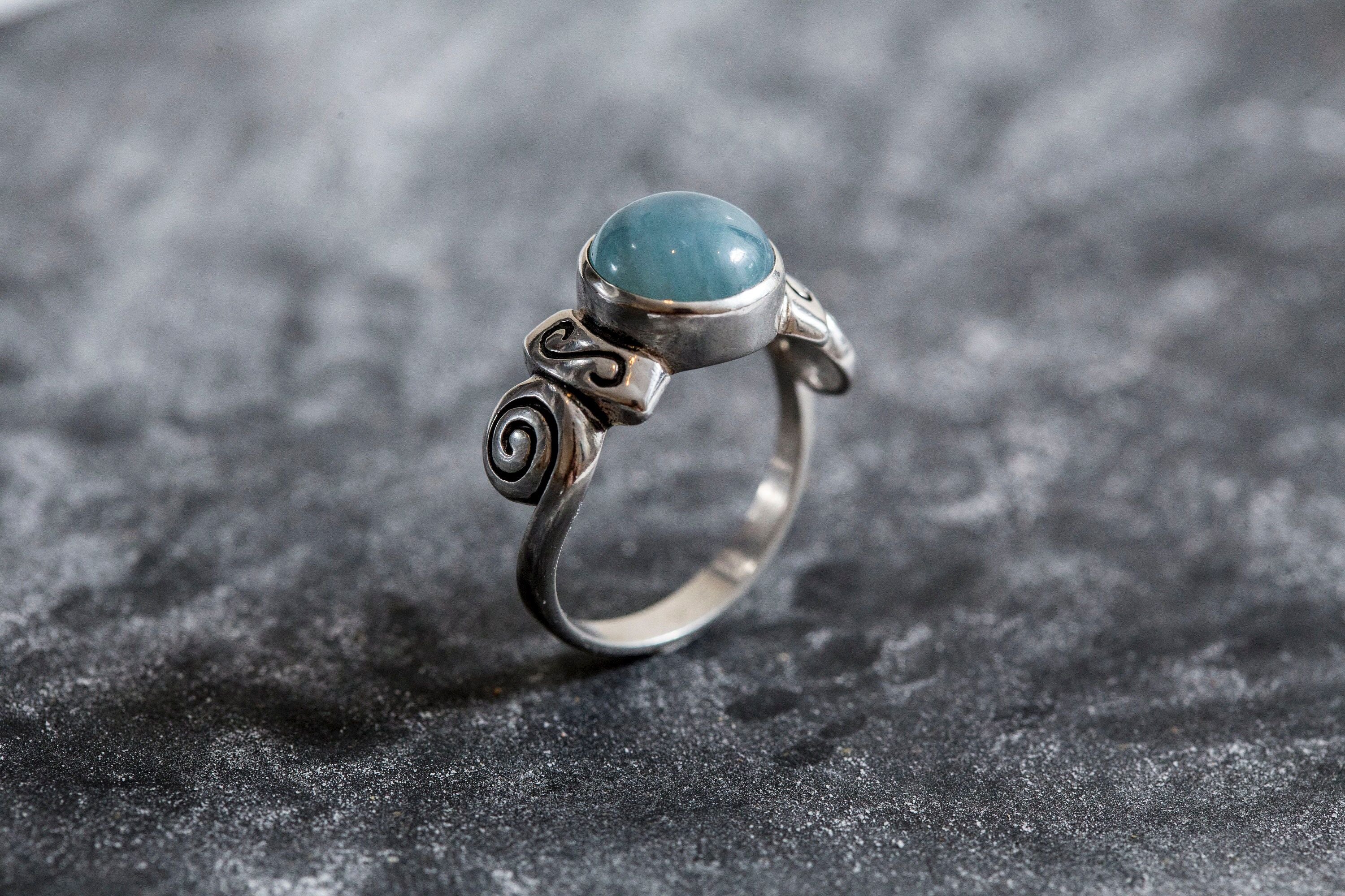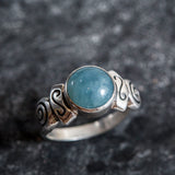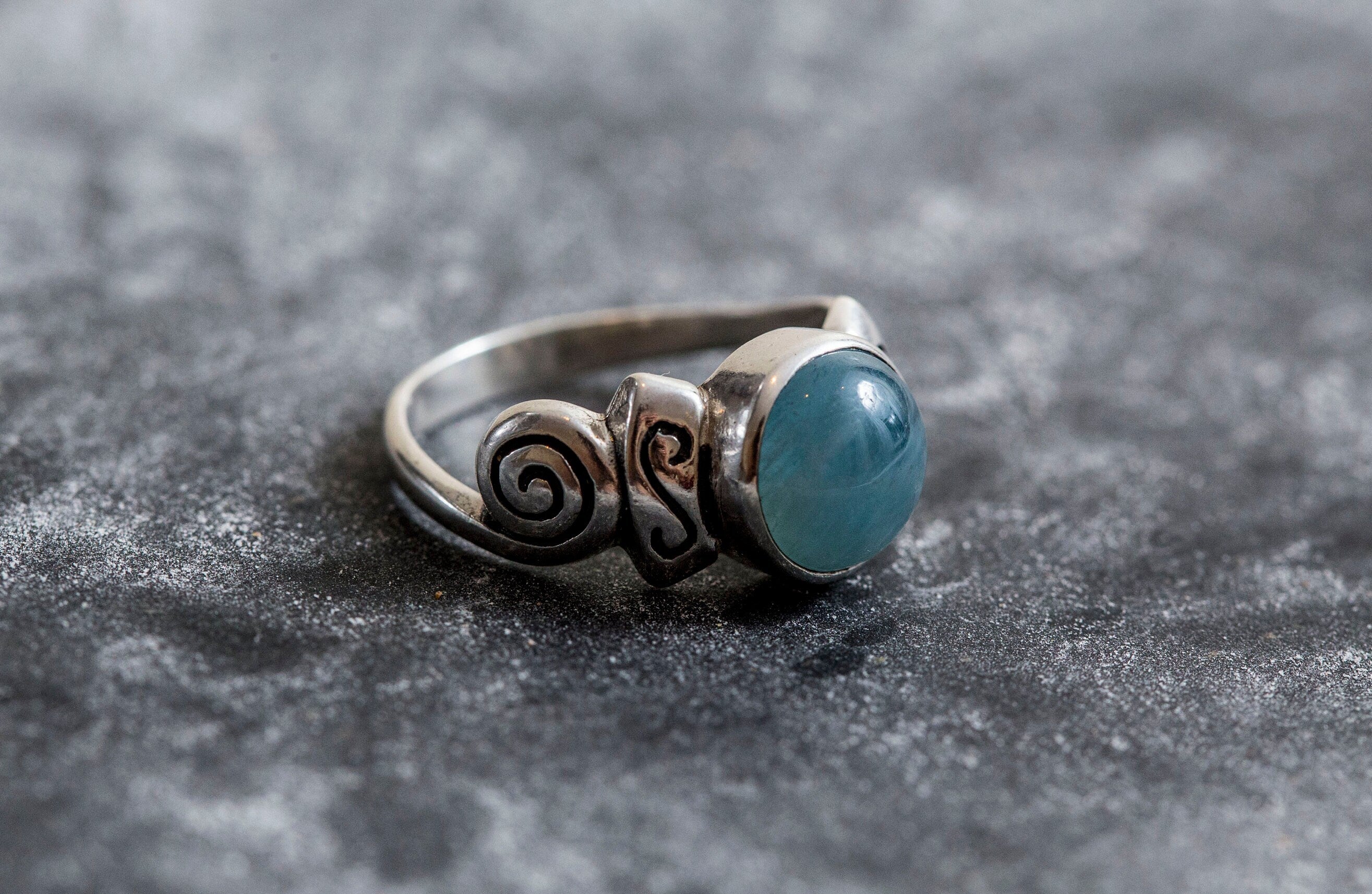 Round Blue Ring, Aquamarine Ring, Natural Aquamarine, March Birthstone, Vintage Rings, Blue Ring, March Ring, Solid Silver Ring, Aquamarine