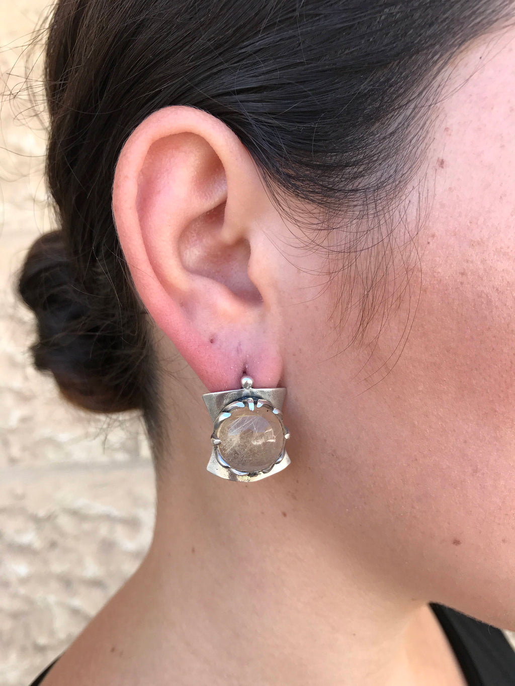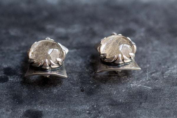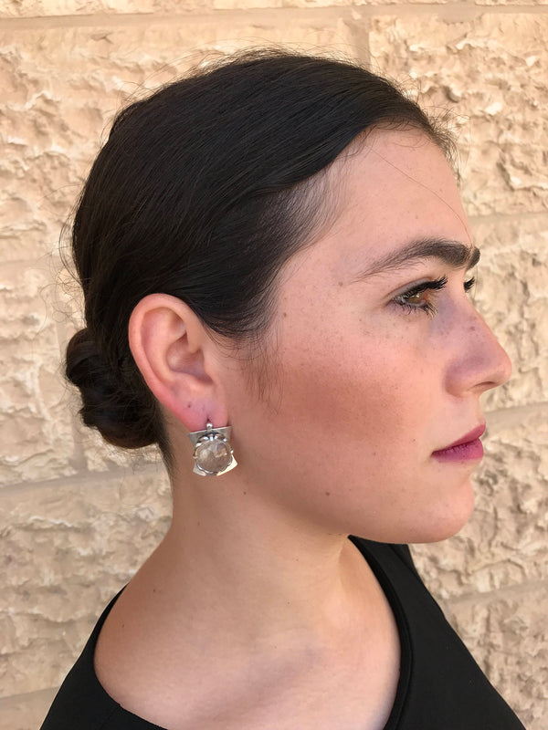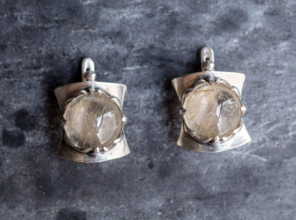Quartz Earrings - Golden Quartz Earrings - Vintage Heavy Earrings