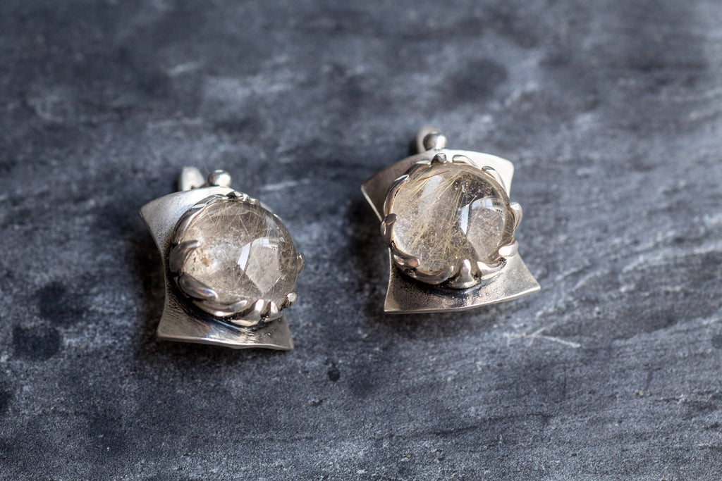 Rutilated Quartz Earrings, Vintage Earrings, Leo Birthstone, Natural Gem, Quartz Earrings, Golden Rutilated, Gold Quartz, Unique Earrings
