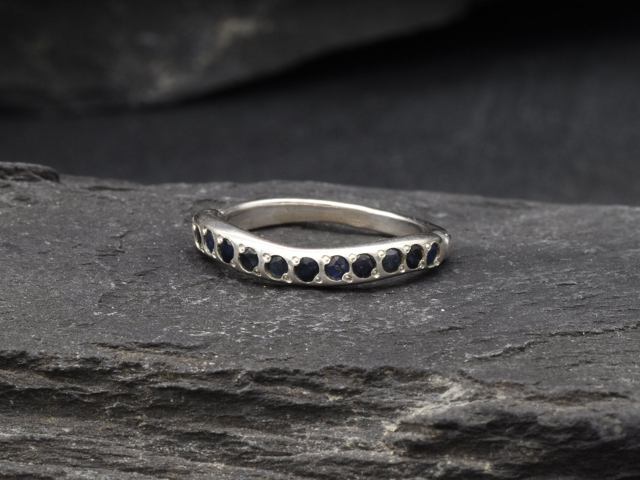 Genuine Sapphire Ring - Blue Eternity Ring - Dainty Vintage Ring made in 925 Sterling Silver. Ideal for everyday wear and perfect for birthday gifting and special occasions.