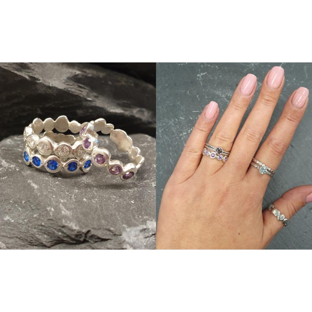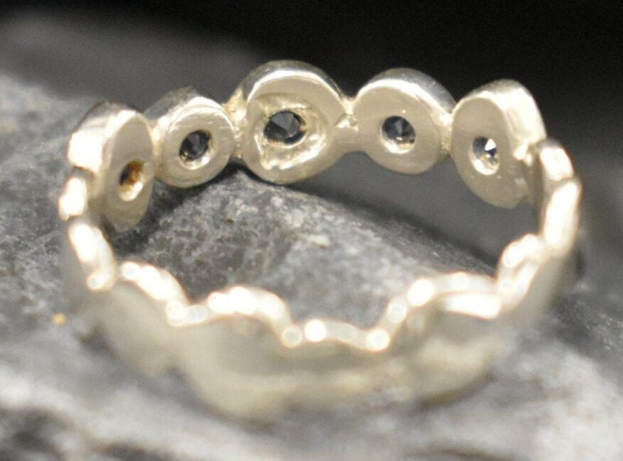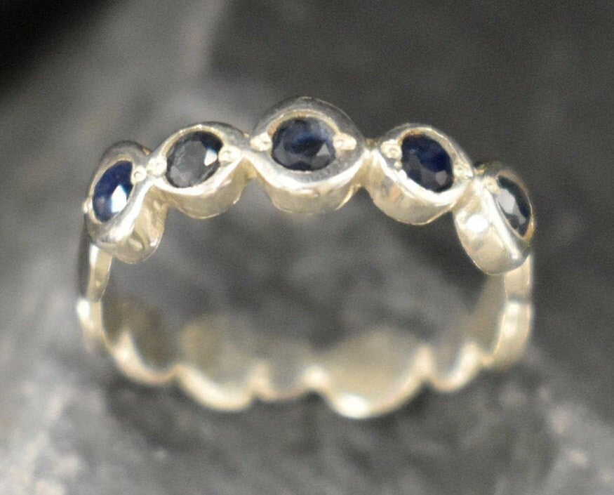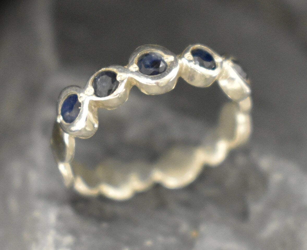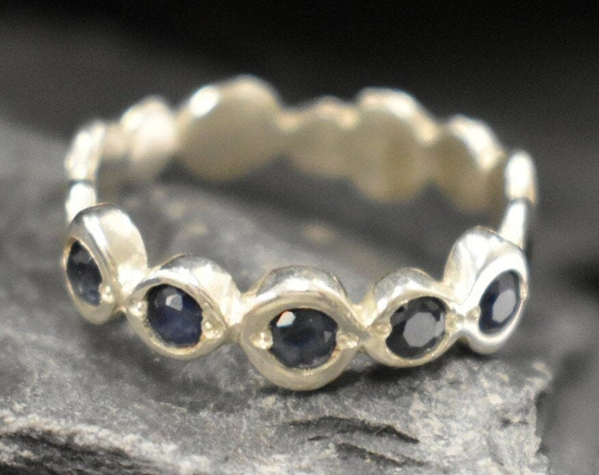 Blue Half Eternity Ring - Natural Sapphire Ring - September Birthstone Ring