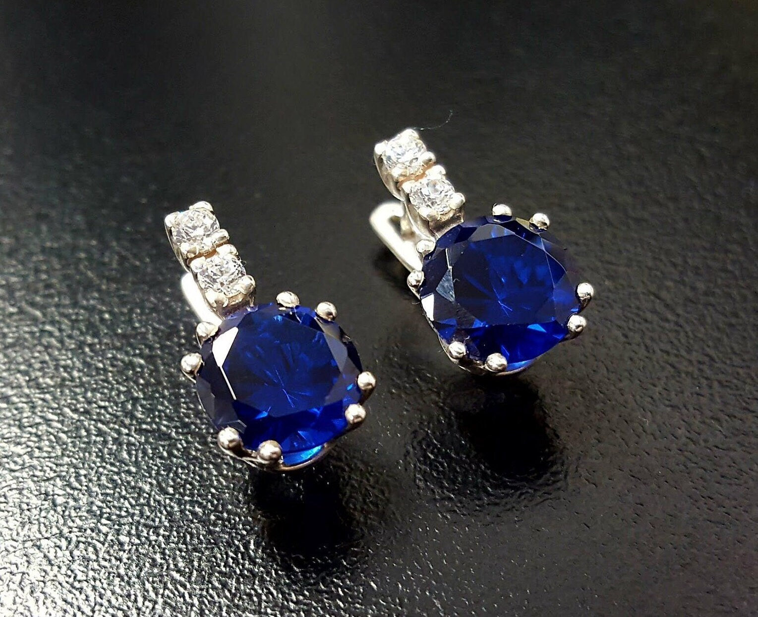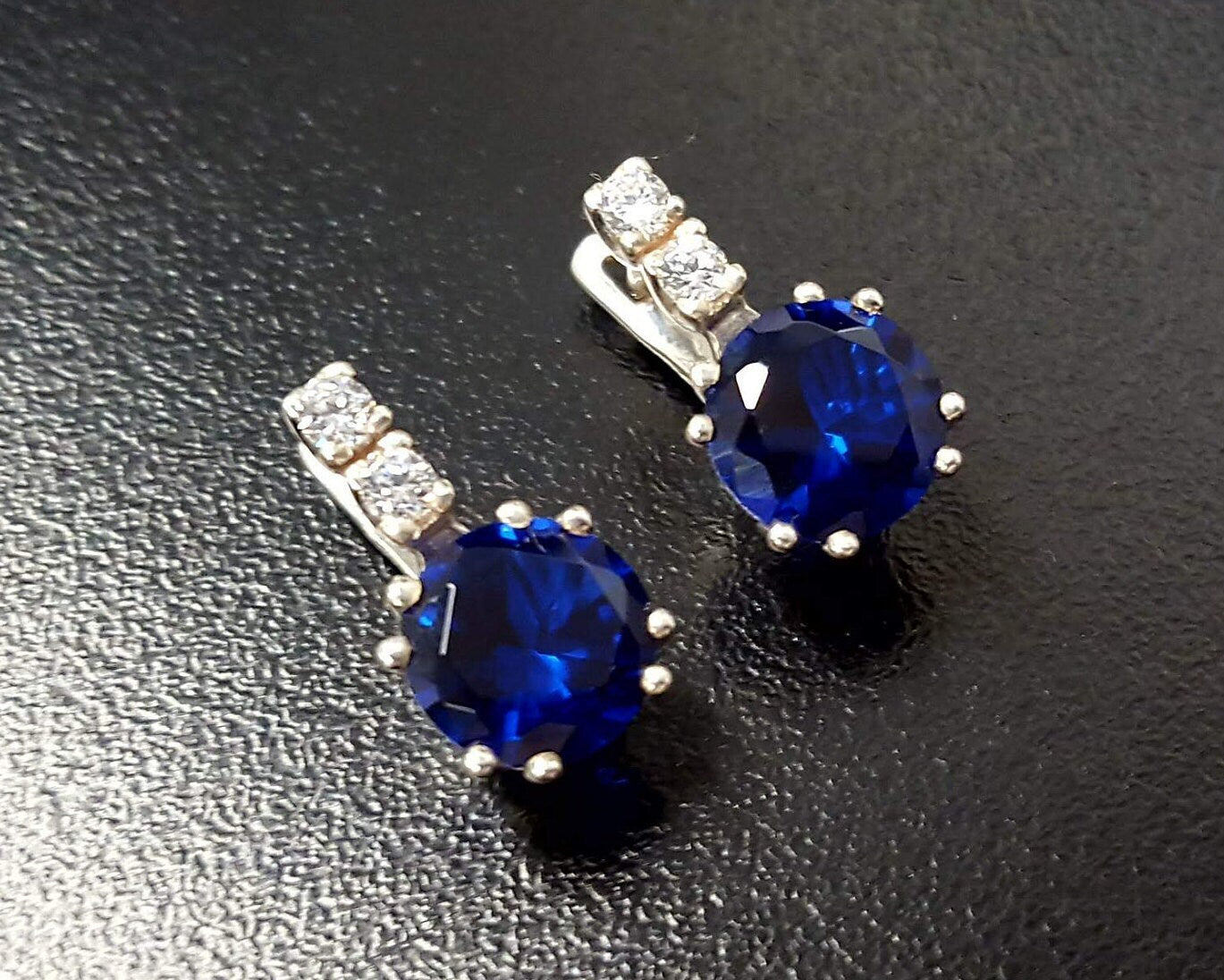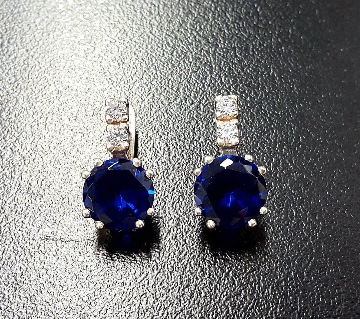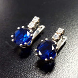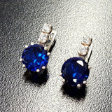 Created Sapphire Earrings in 925 Sterling Silver, showcasing round blue sapphires—perfect for birthdays and special occasions.