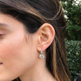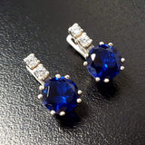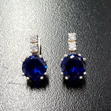 Drop Sapphire Earrings set with a Created Sapphire in a perfect diamond cut, flawless clarity & deep blue color, at 10mm each (8 Cts pair) with 3mm CZ Diamonds.