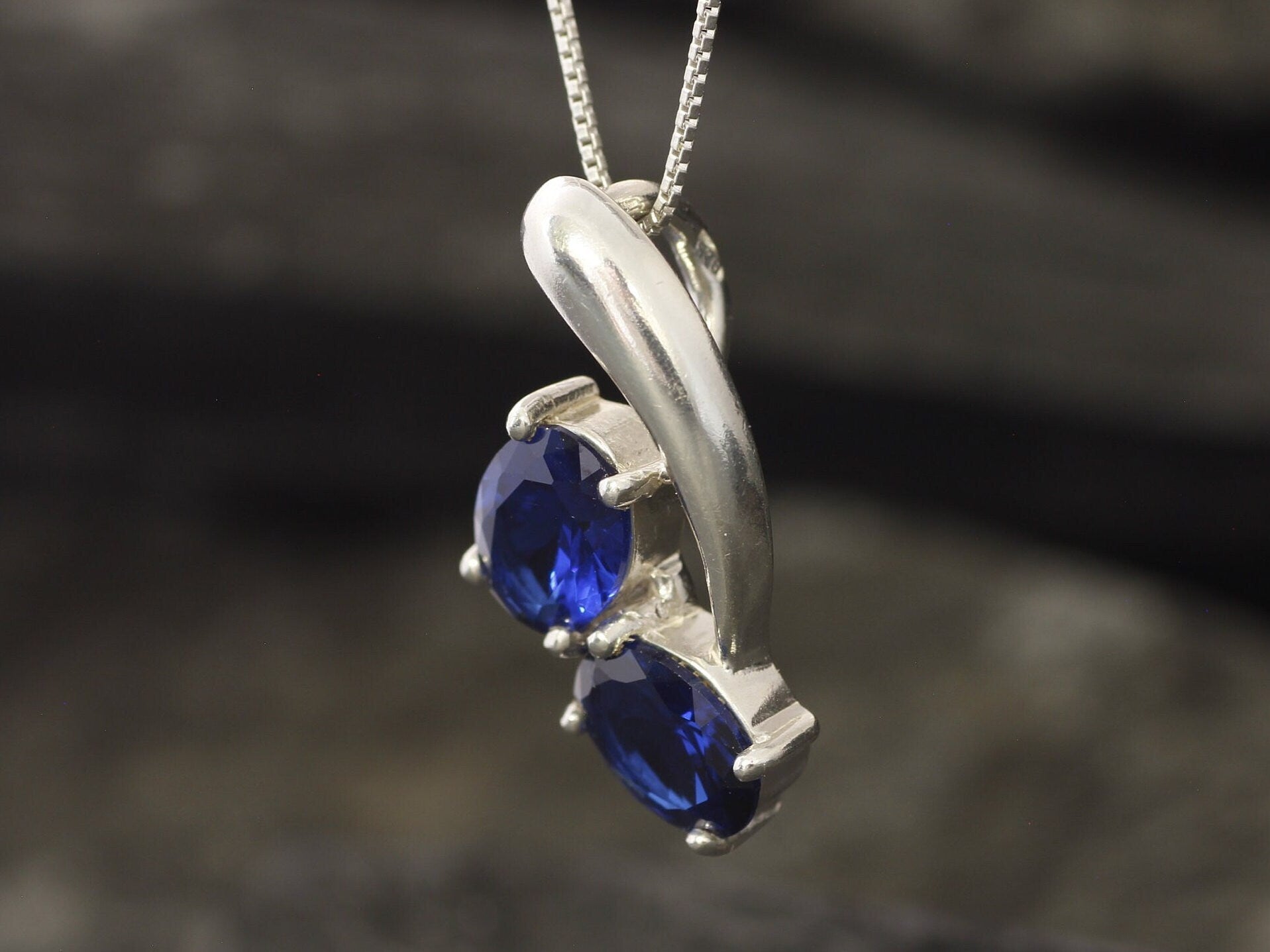 Blue Sapphire Pendant - Twin Sapphire Necklace - Unique Blue Pendant