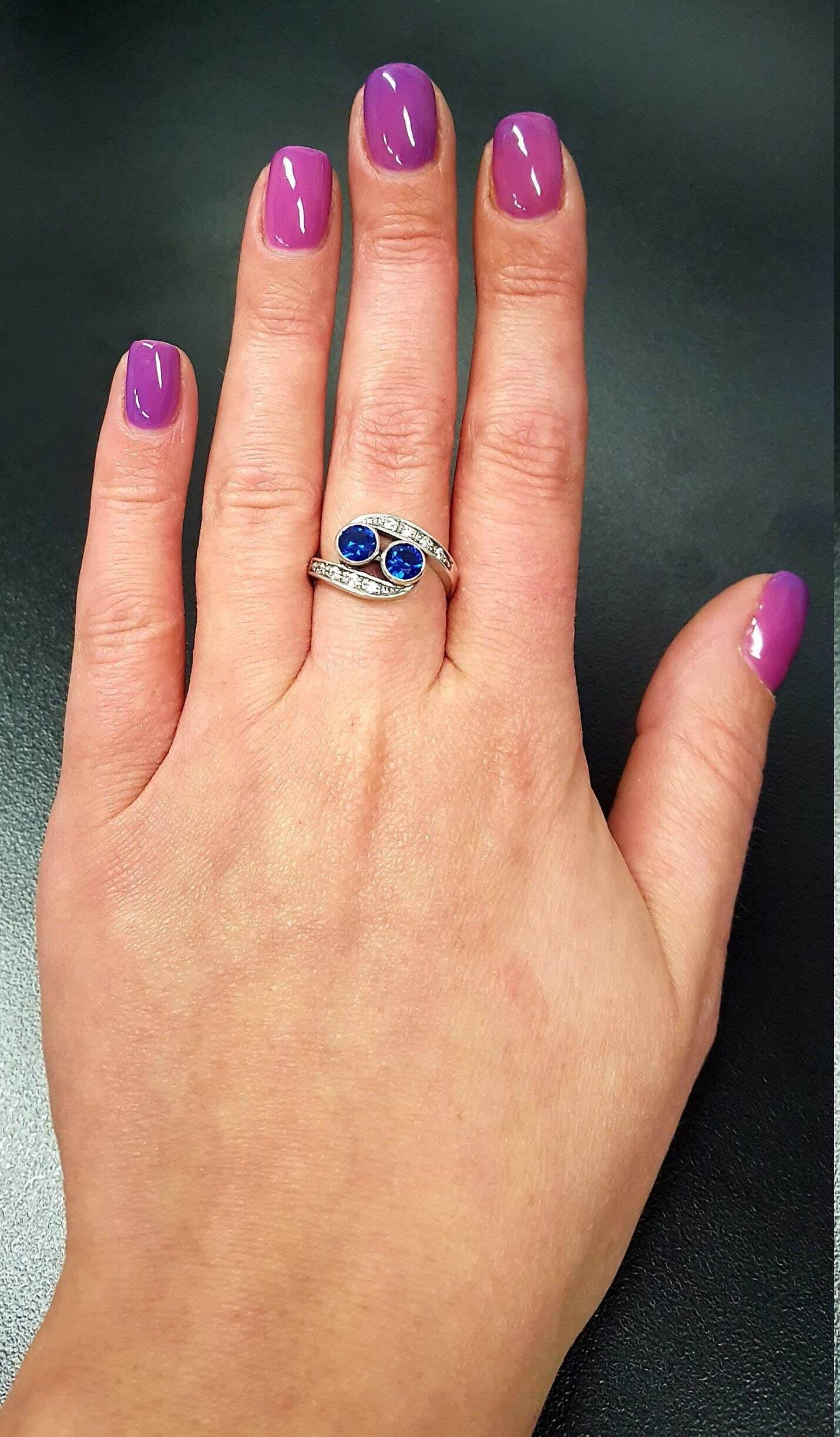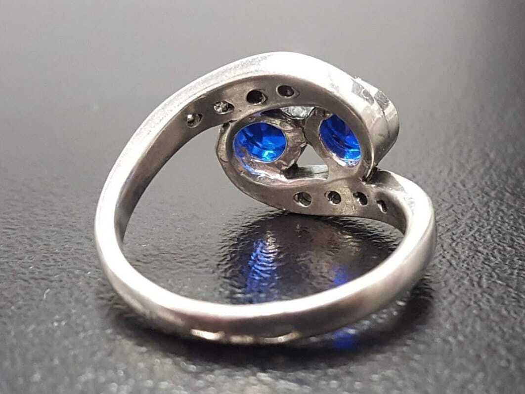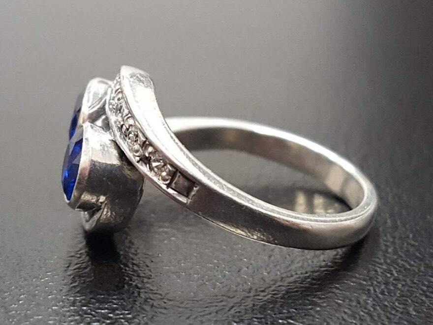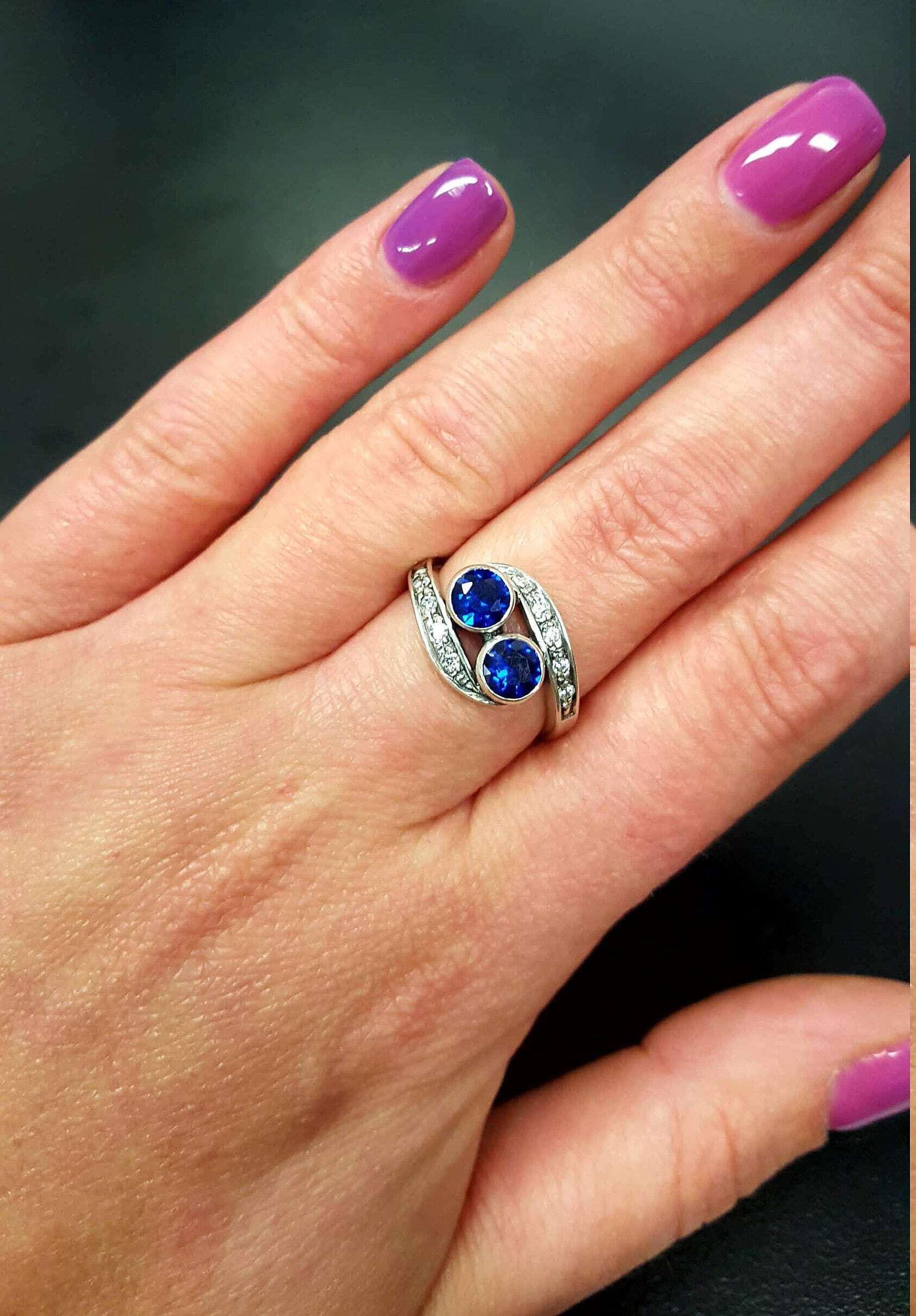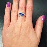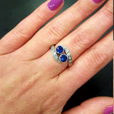 Sapphire Vintage Ring - Two Stone Ring - Blue Bezel Ring