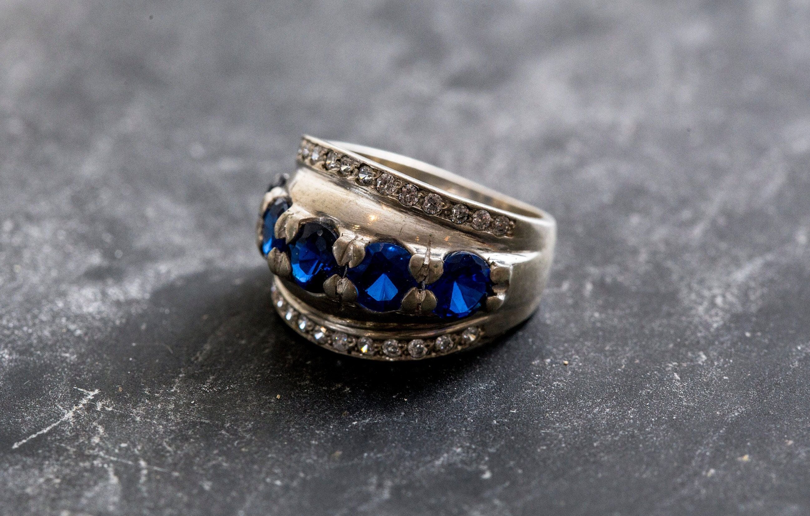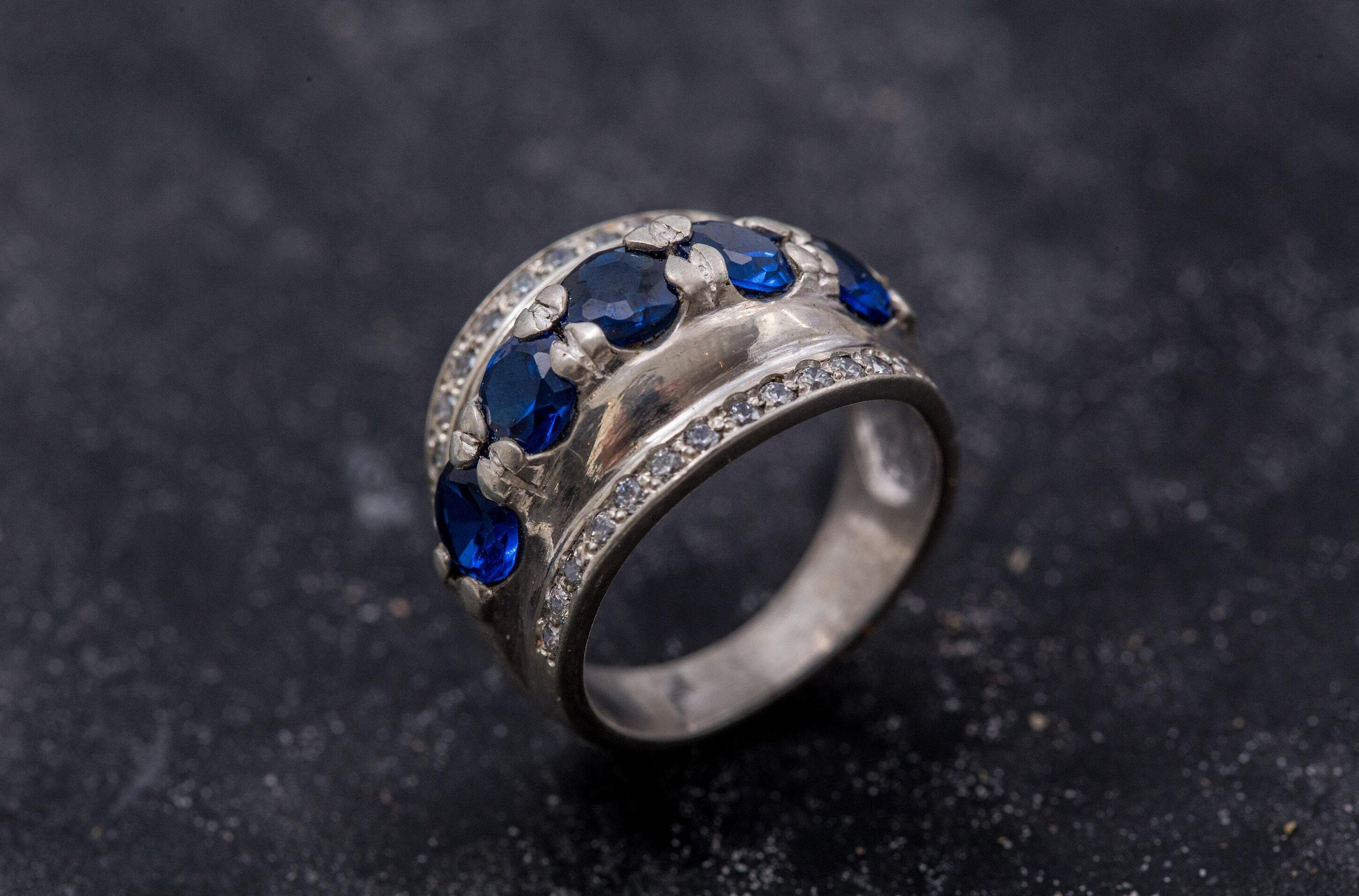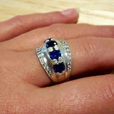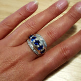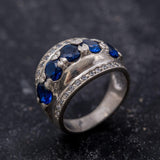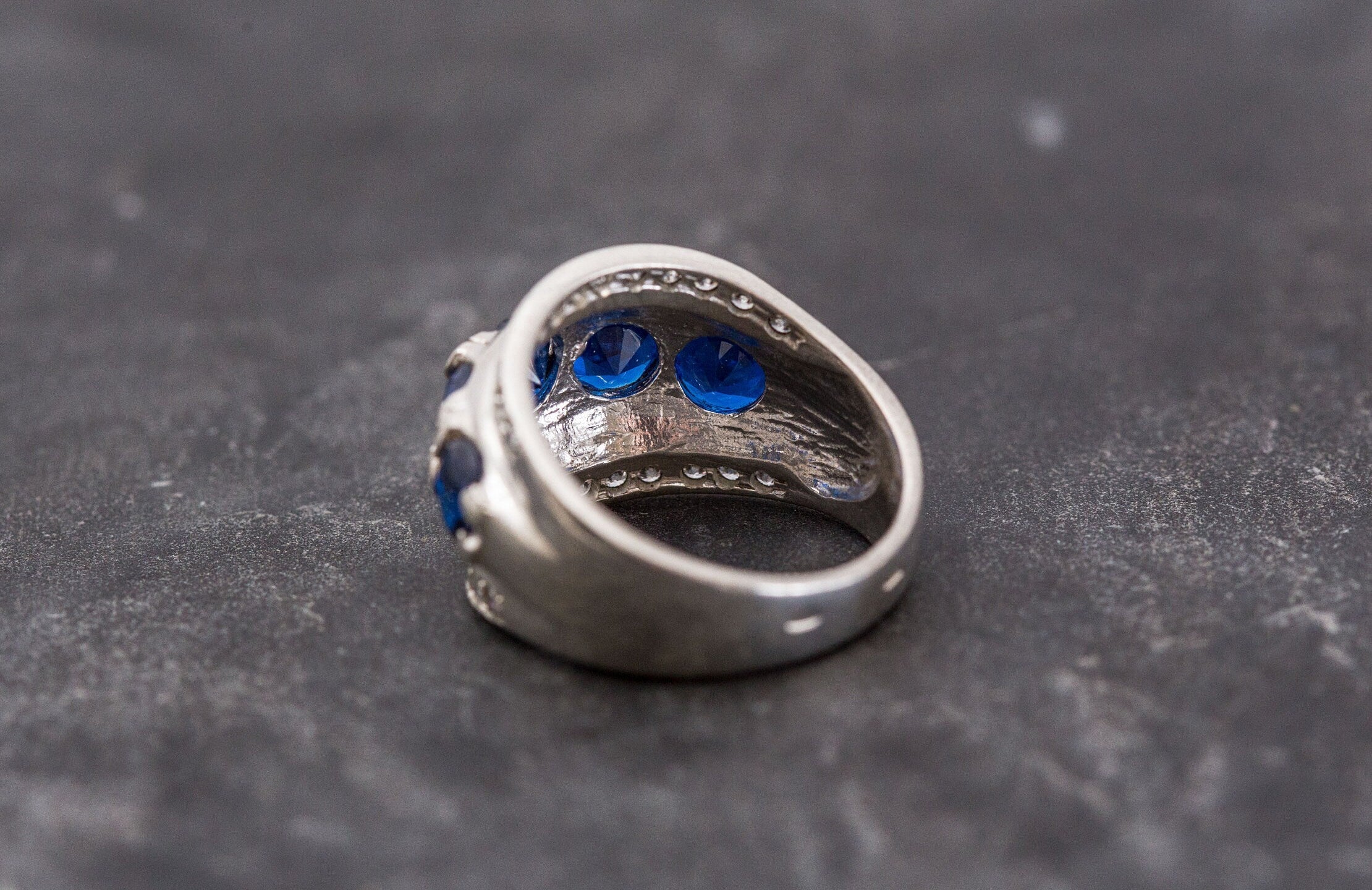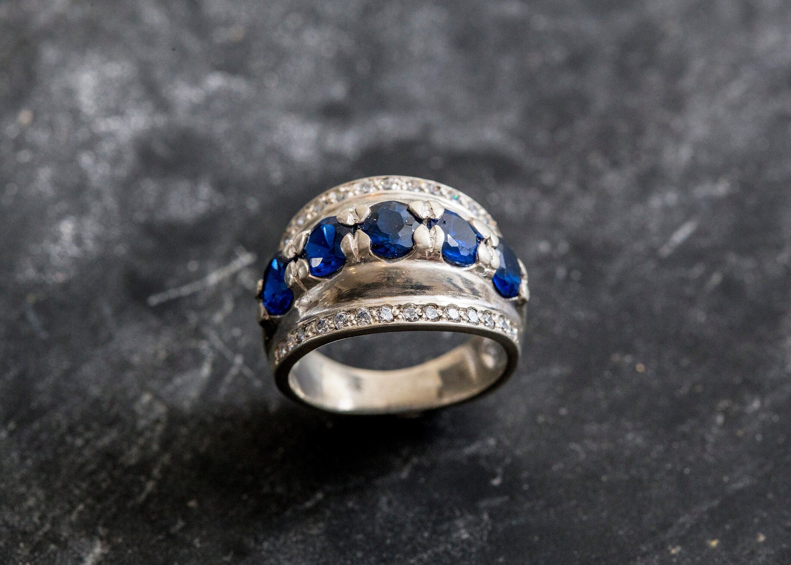 Sapphire Statement Ring - Chunky Silver Ring - Wide Sapphire Ring