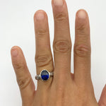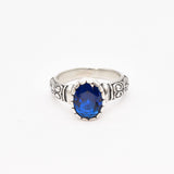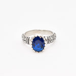Crafted sapphire ring in sterling silver, featuring a stunning oval created blue sapphire, ideal for special occasions and September gifts.