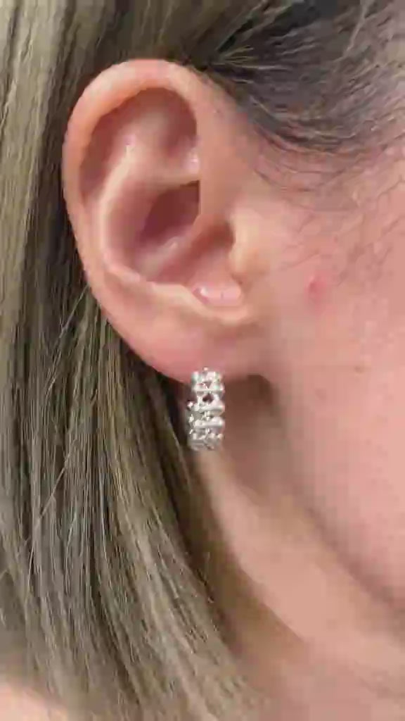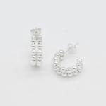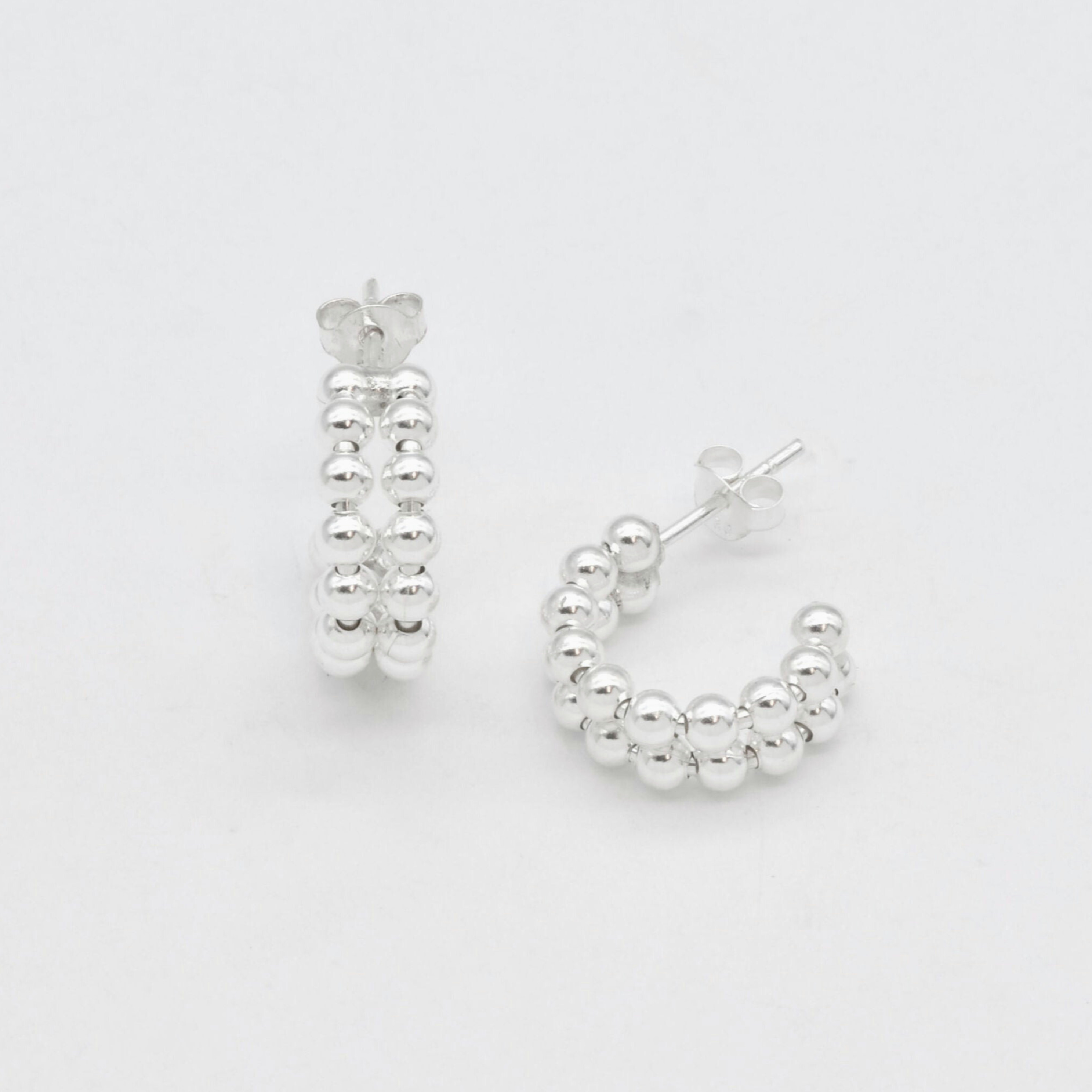 Silver Bead Earrings - Half Hoops Earrings - Double Row Earrings