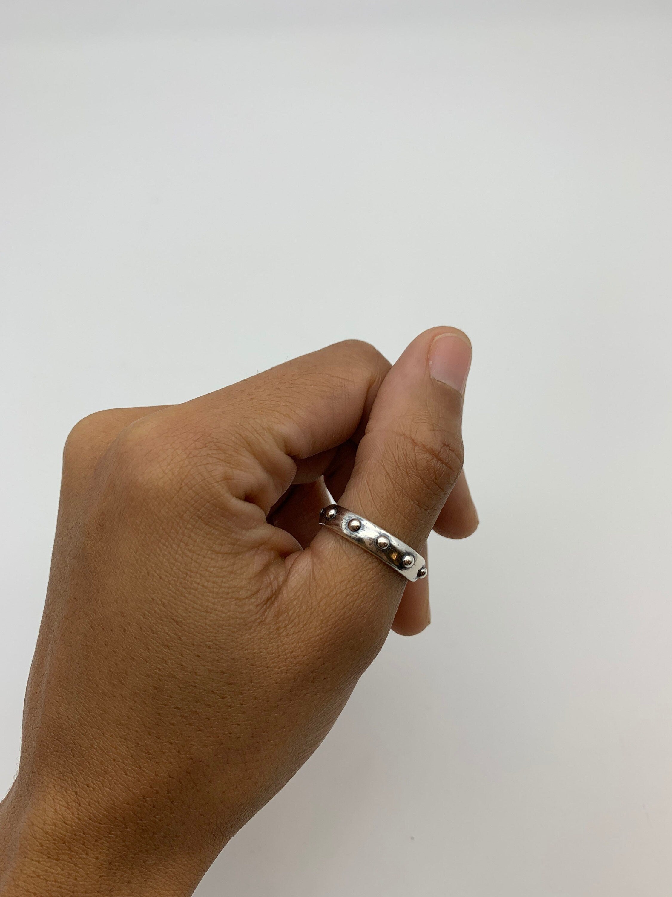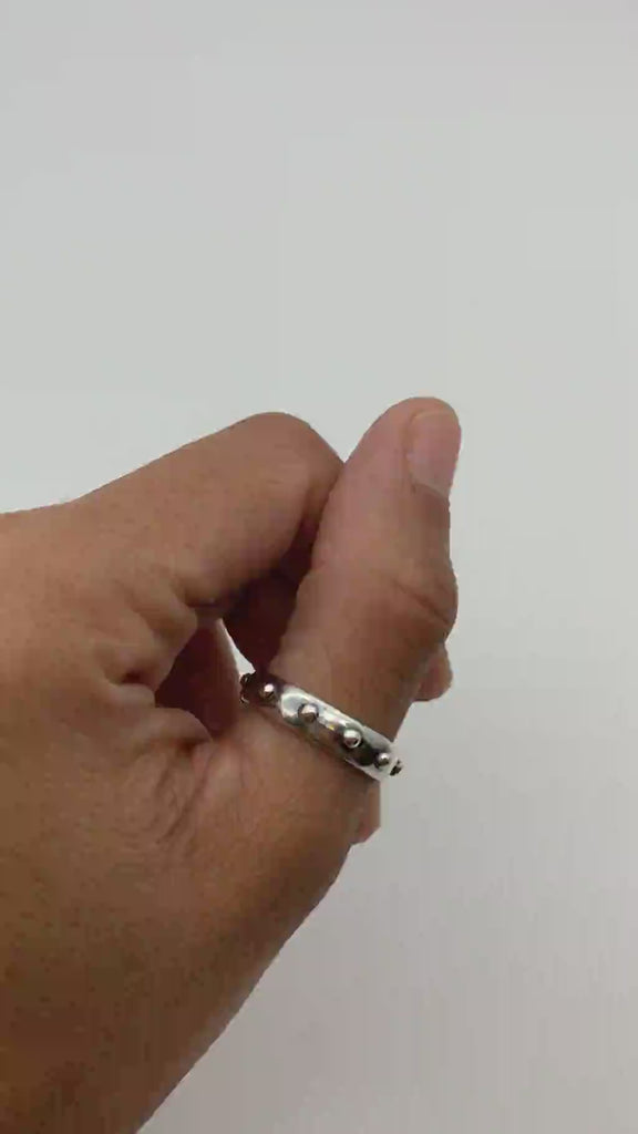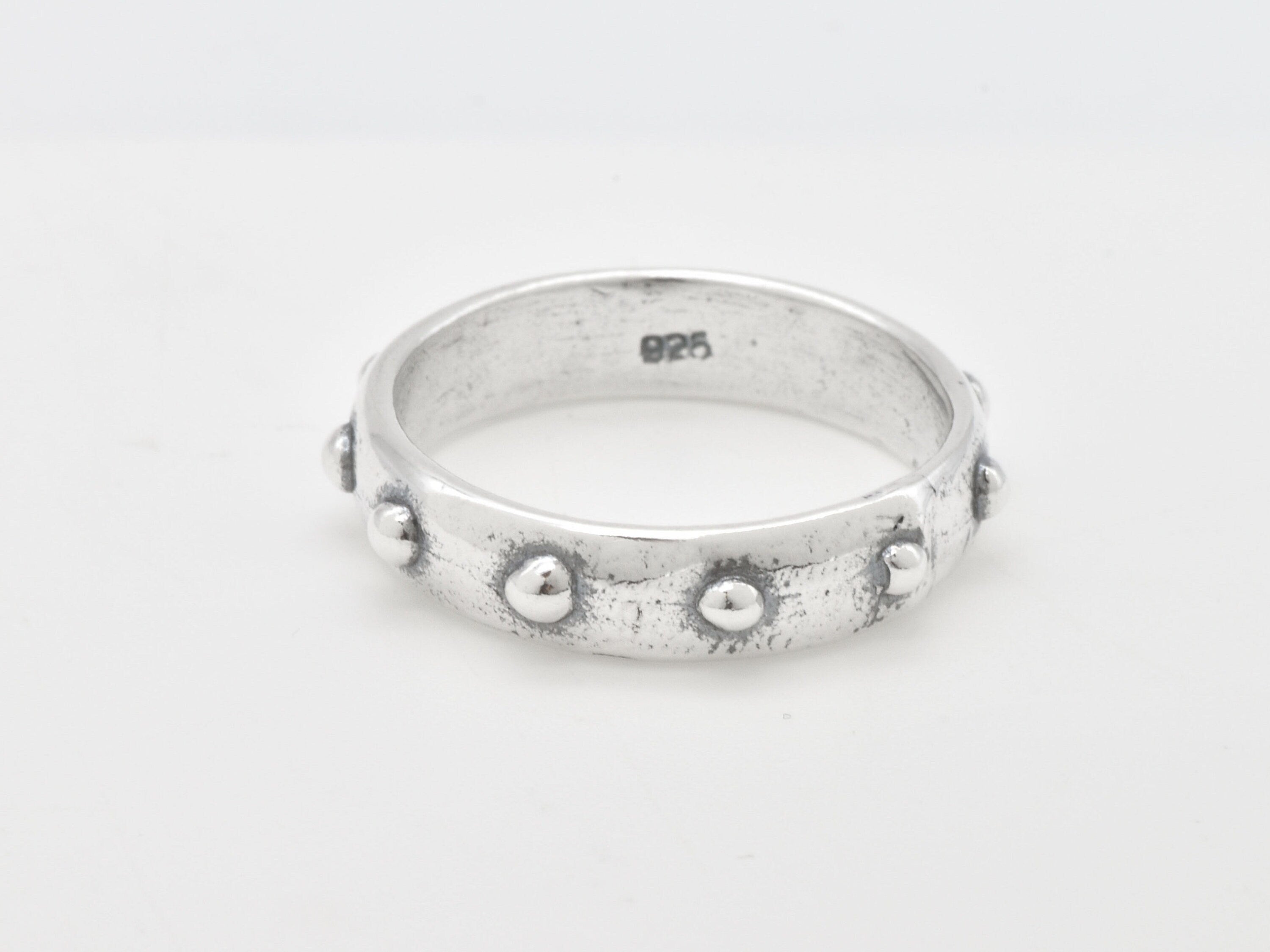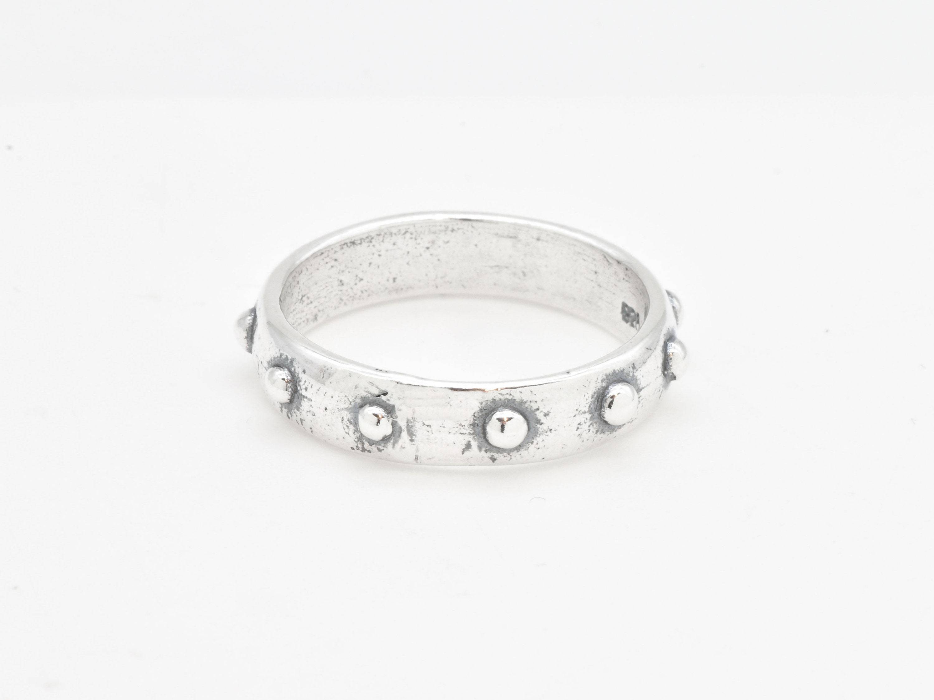 Beaded Silver Band - Dotted Ring - Beaded Wide Band