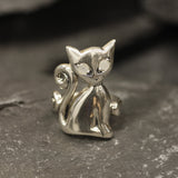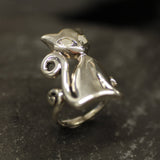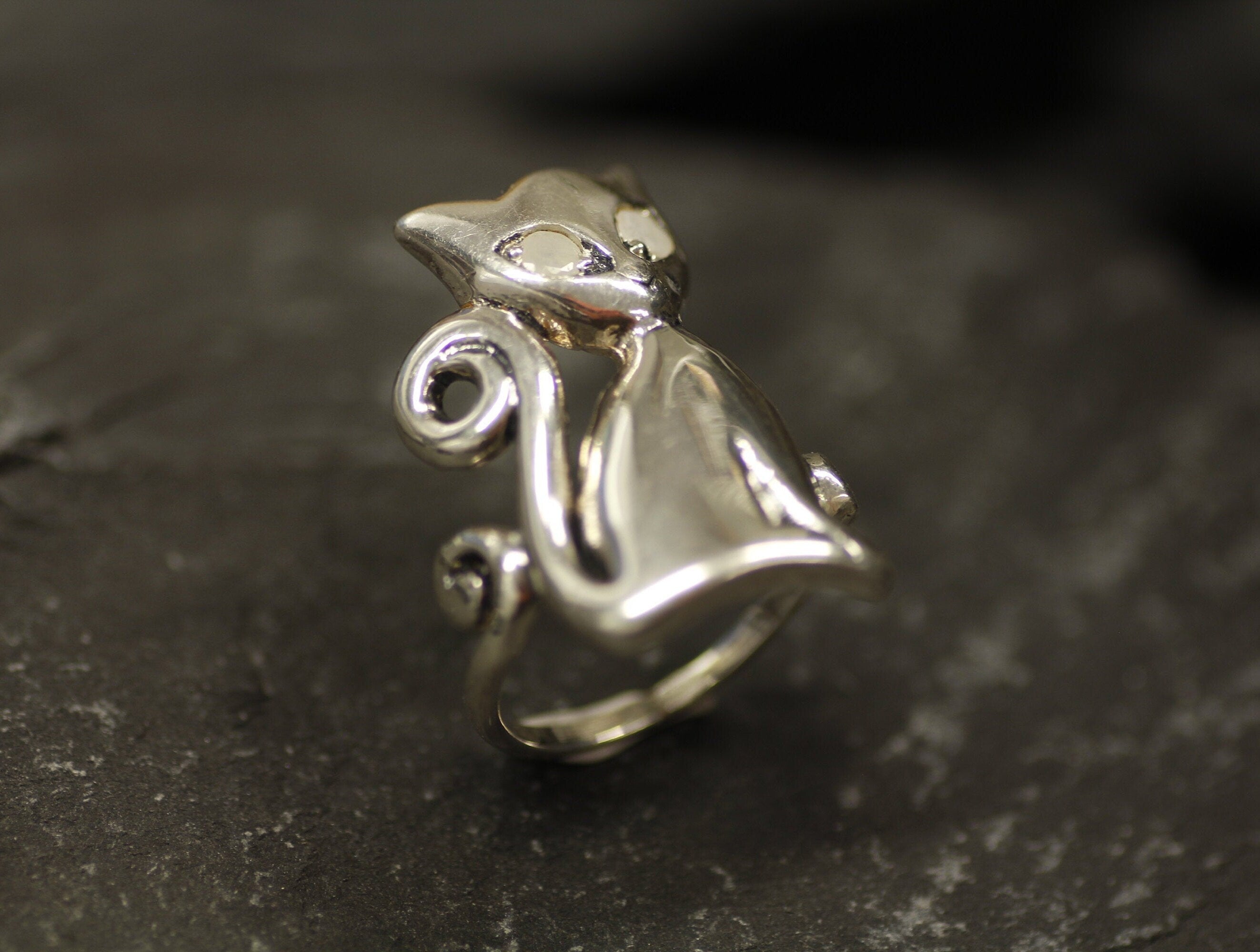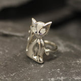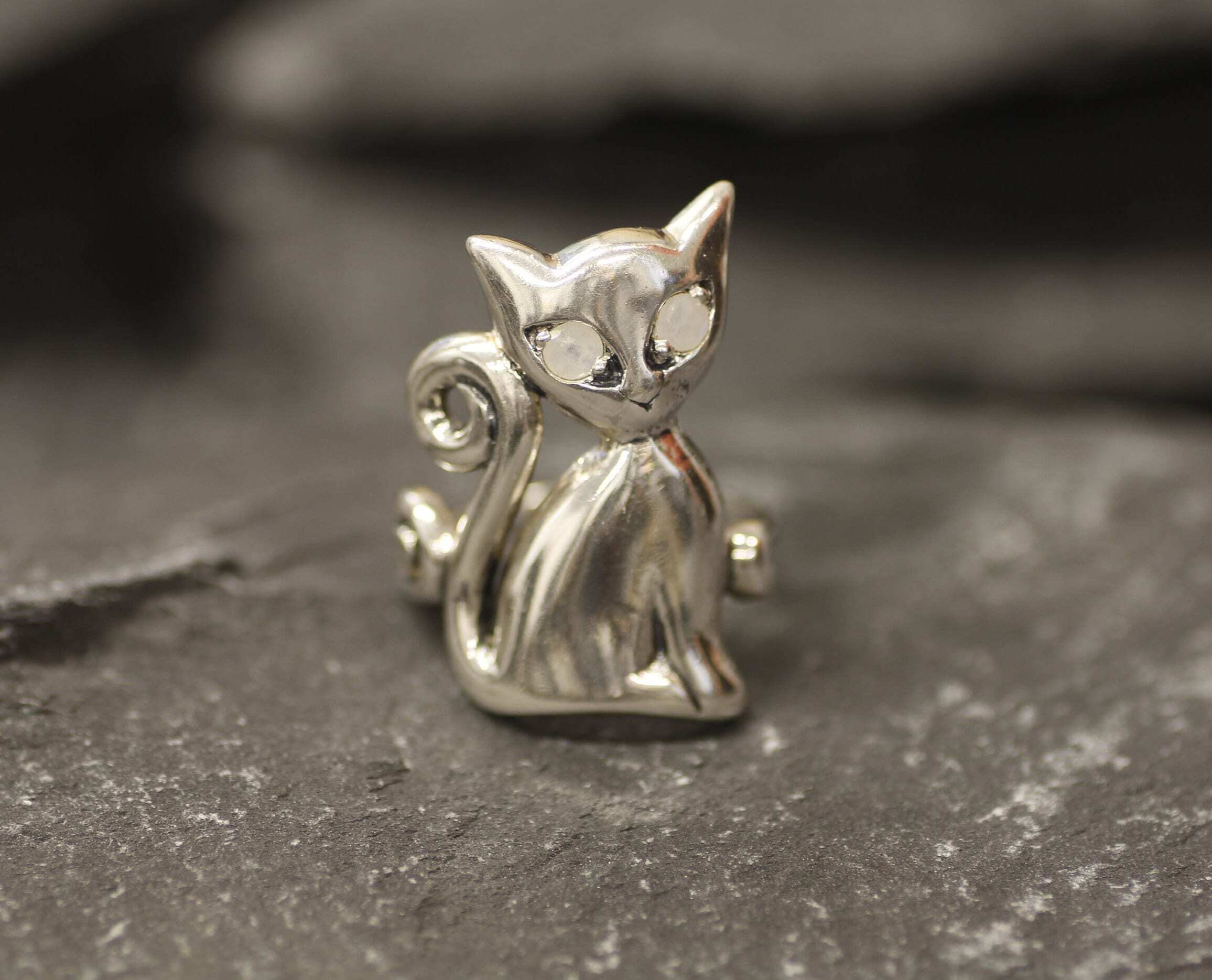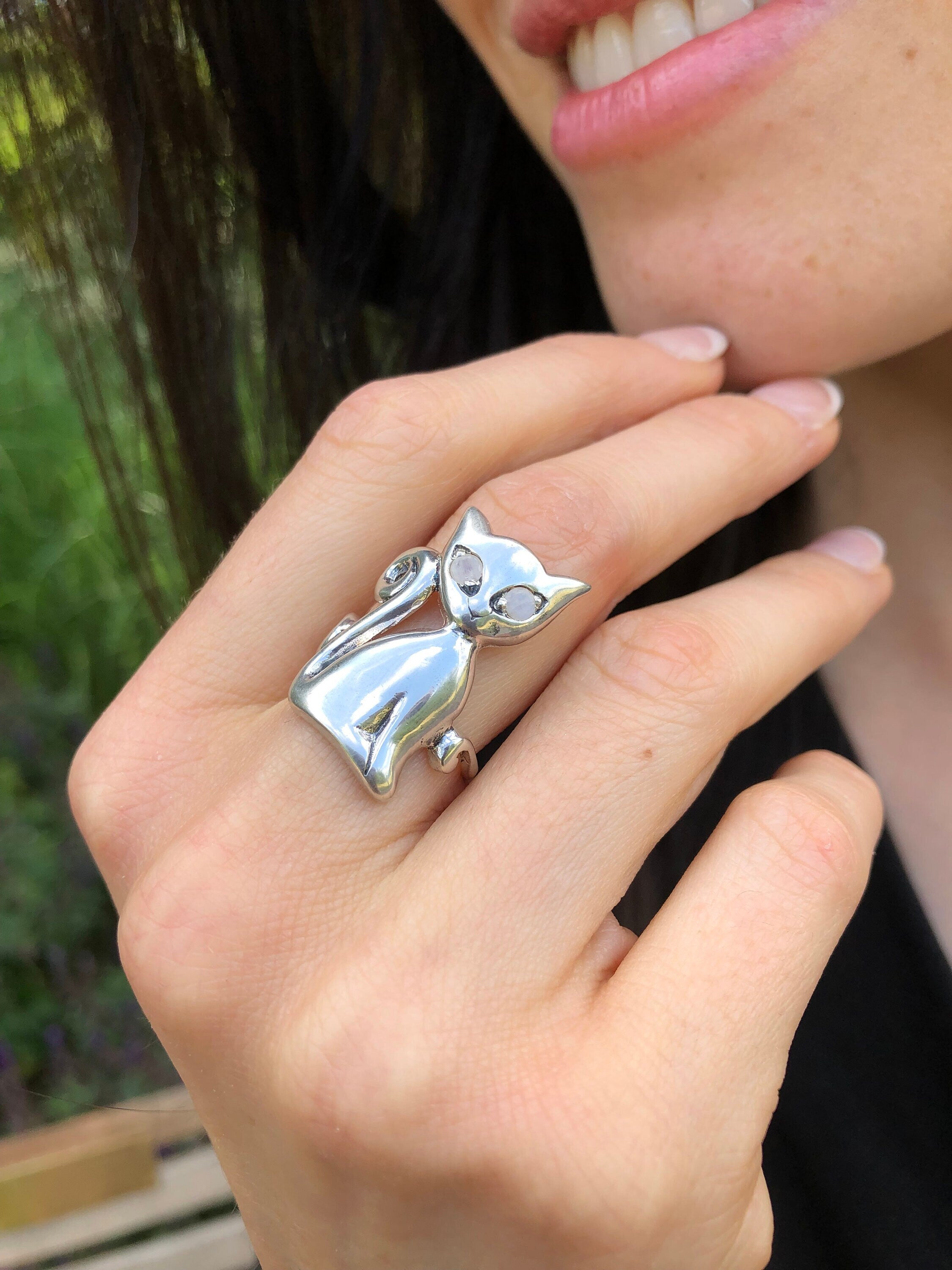 Silver Cat Ring, Natural Rainbow Moonstone, Long Cat Ring, June Birthstone, Kitten Ring, Statement Ring, Animal Ring, Sterling Silver Ring