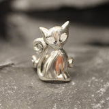 Silver Cat Ring - Rainbow Moonstone Ring - Cat Lover Ring