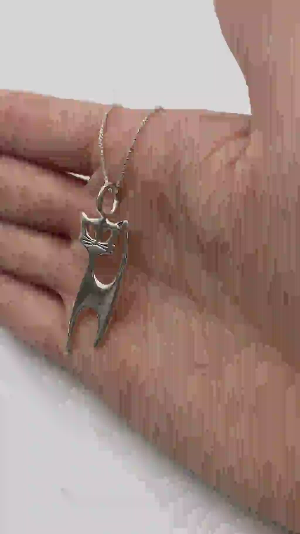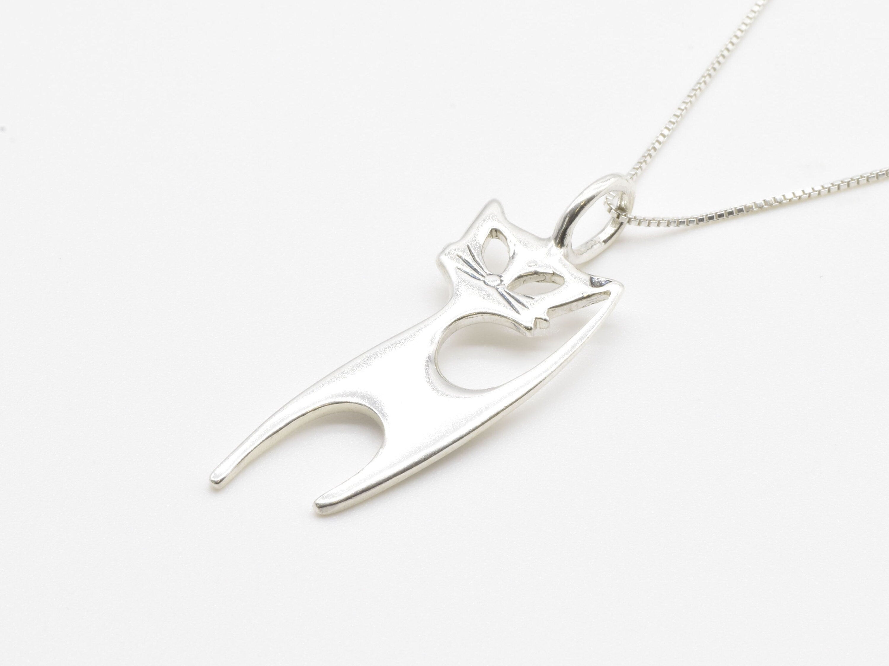 Silver Cat Silhouette Pendant made of Solid 925 Sterling Silver ☞ made to last.