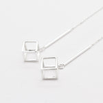 Silver Dangling Earrings - Cube Drop Earrings - Drop Square Earrings