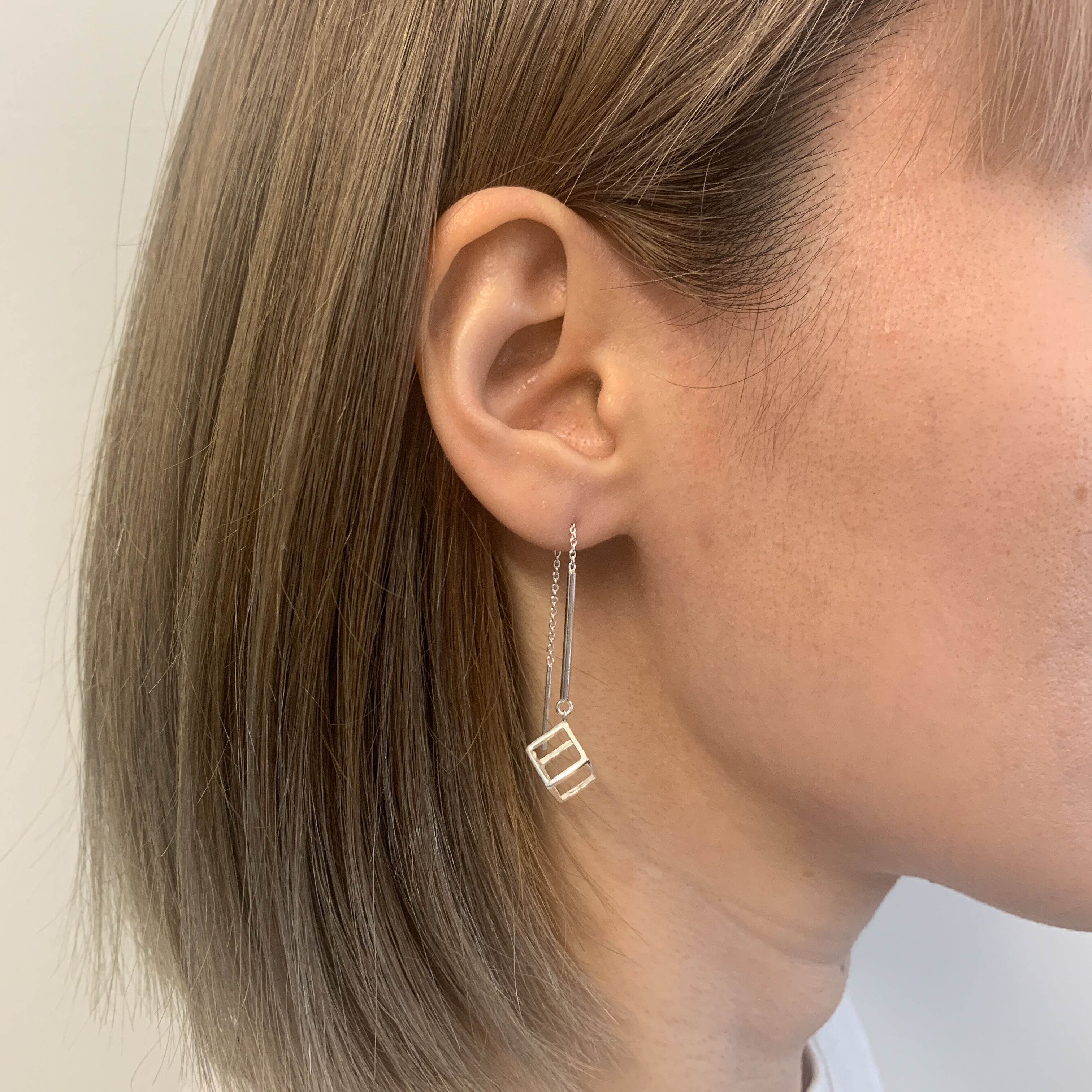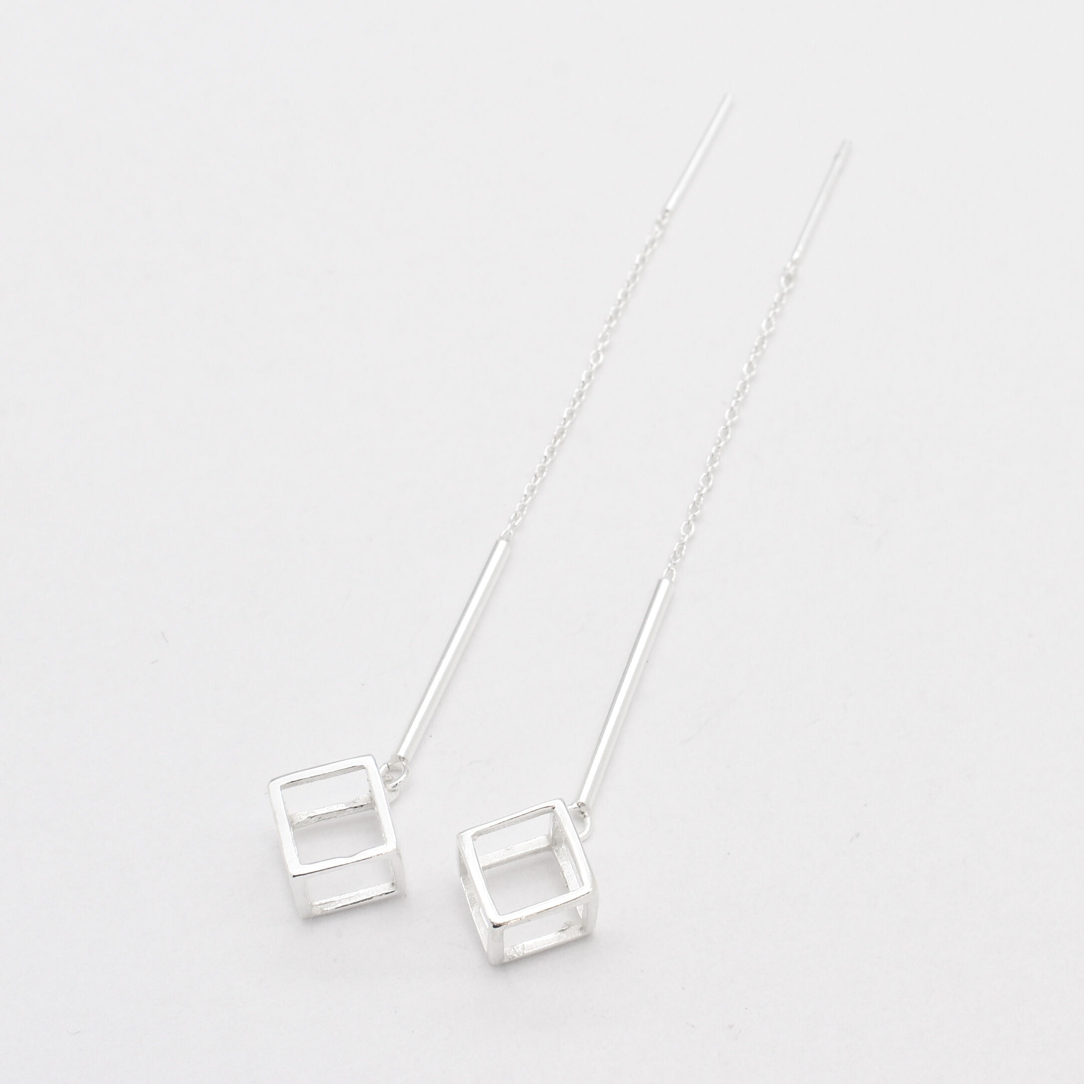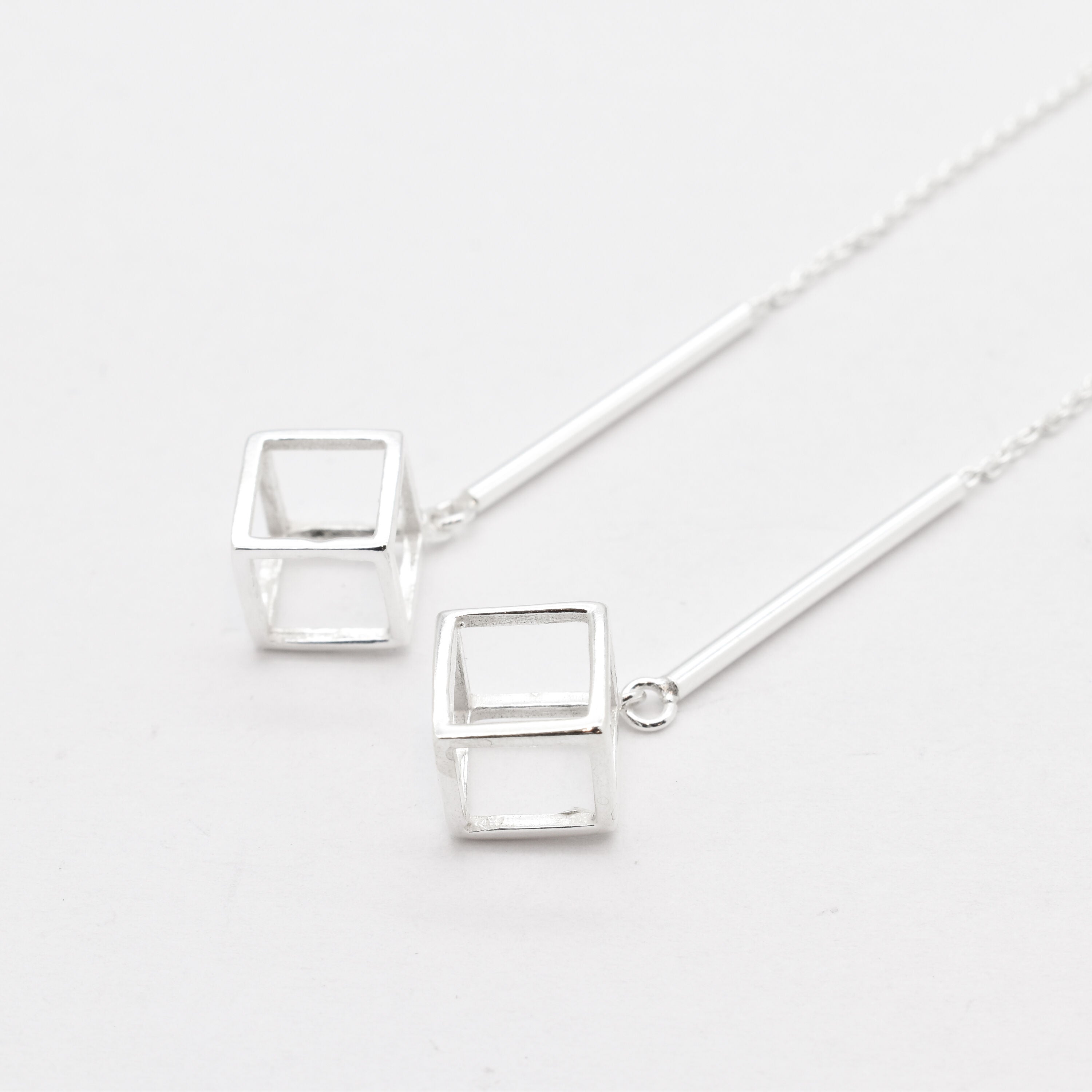 Cube Threader Earrings made of Solid 925 Sterling Silver ☞ made to last.